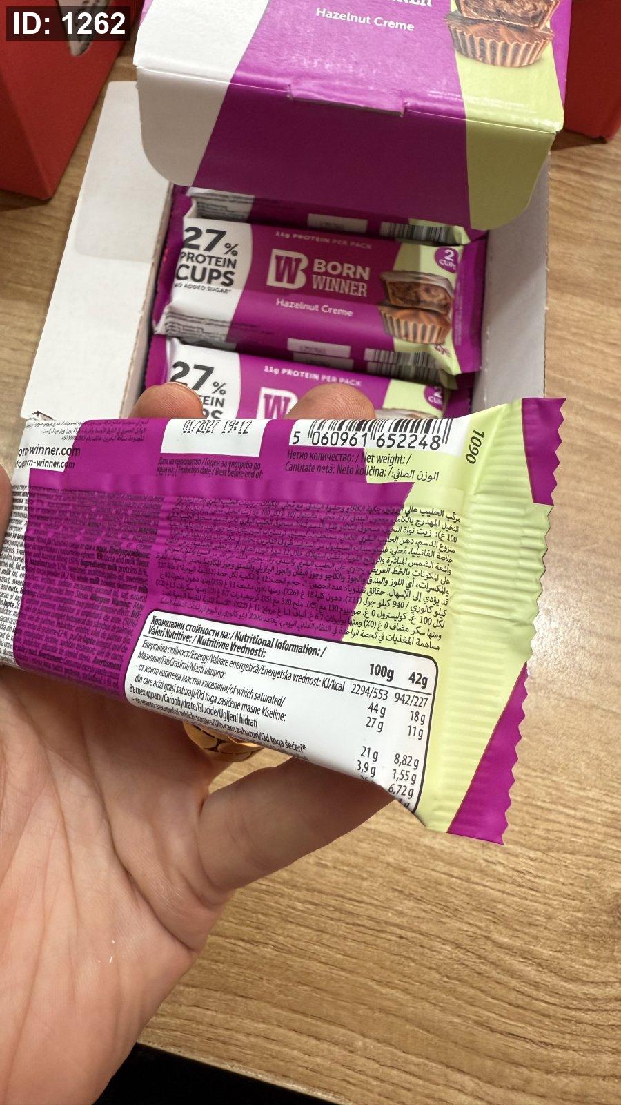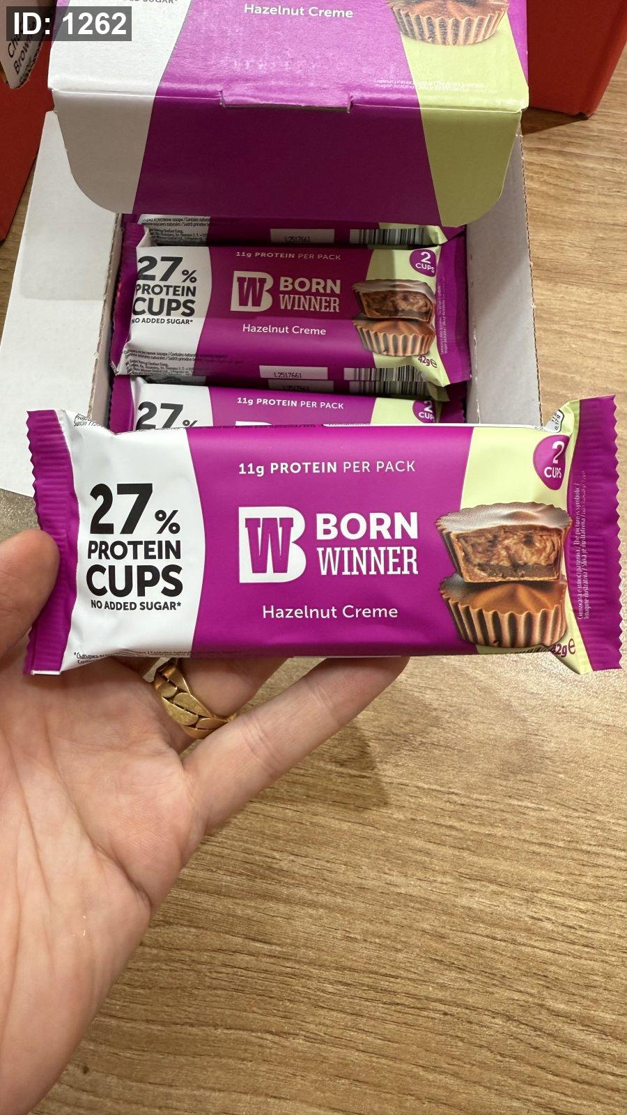 بروتين (Cups) بورن وينر بنكهة الكاكاو وحشوة كريمة البندق 27% بروتين بدون سكر وزنه 42 غم