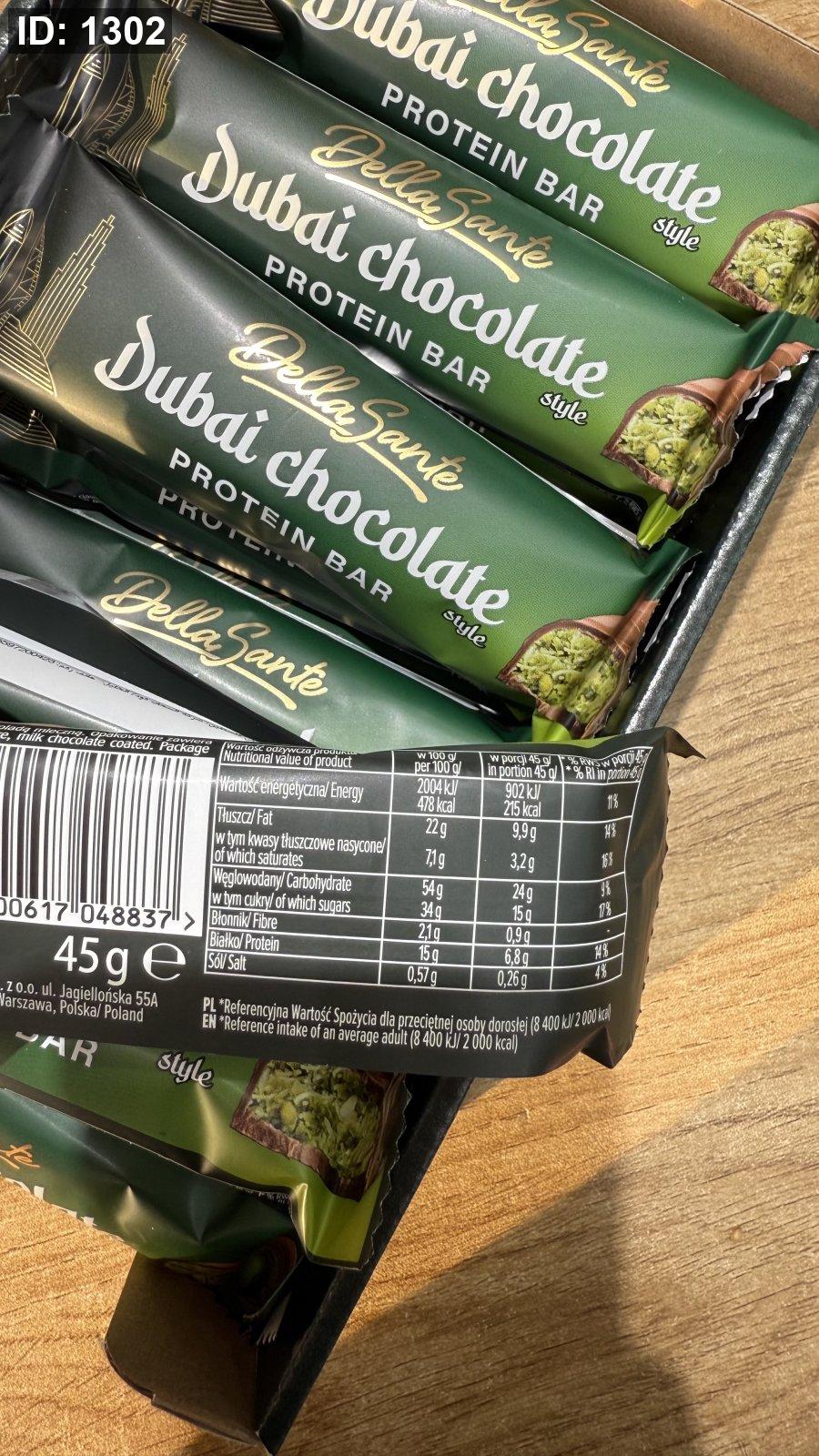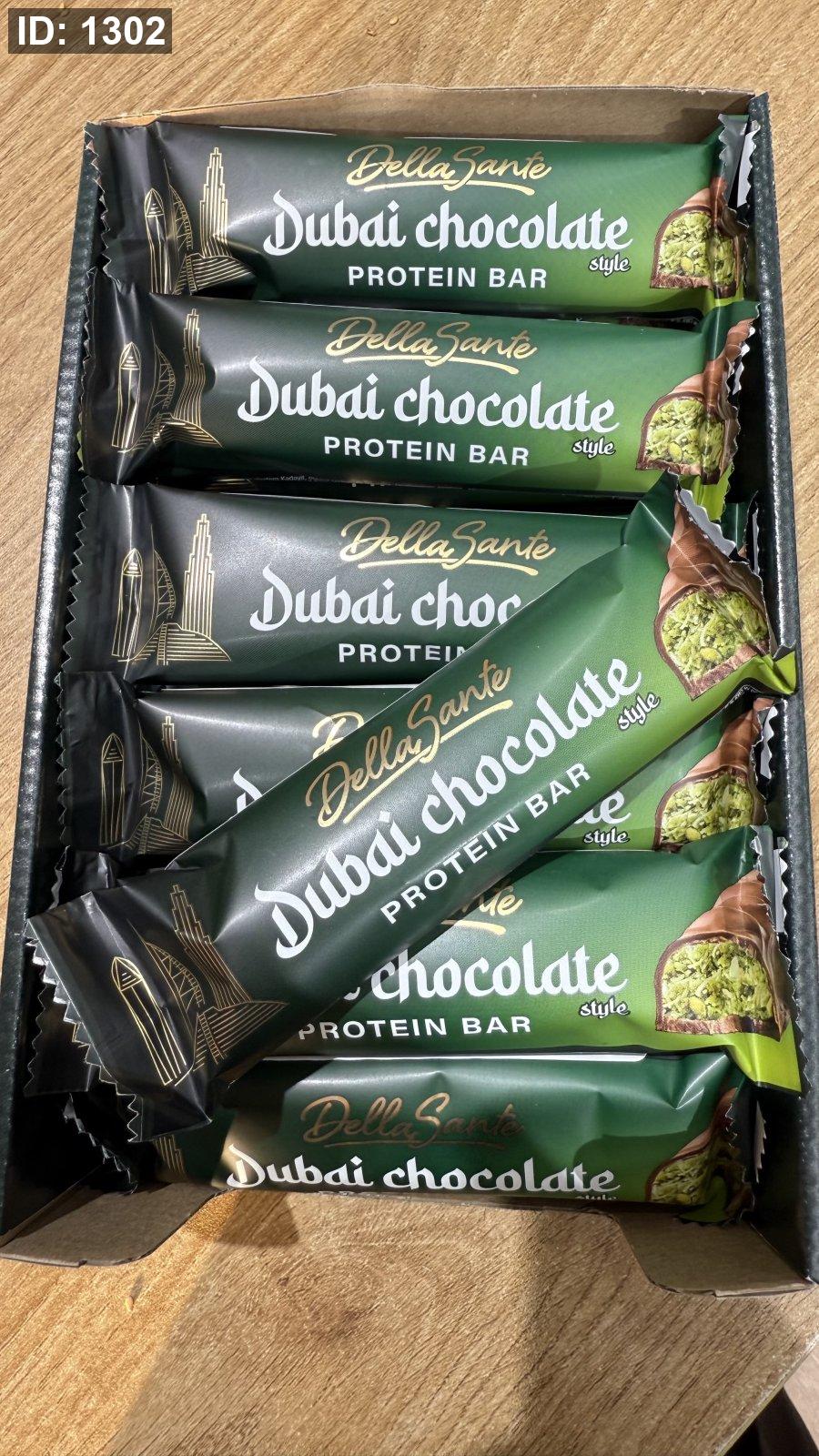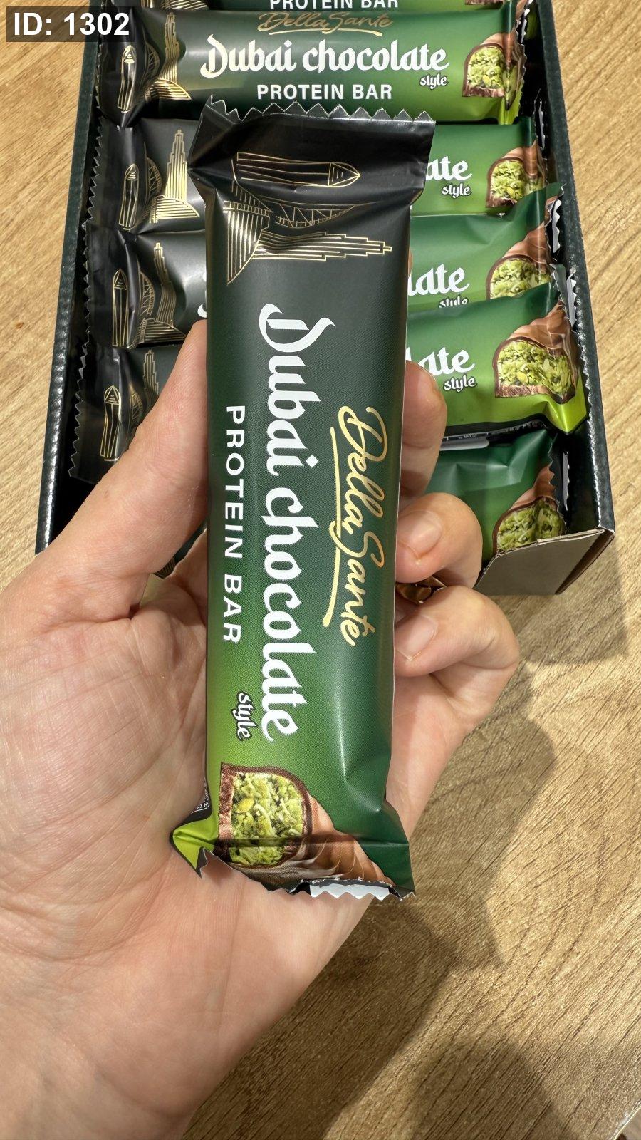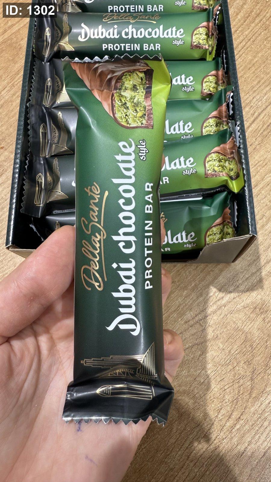شوكولاته محشية شوكولاته دبي بستاشيو ✨🤤 لذيذ جدا بدون سكر ✨عالي البروتين فيه 15 غرام بروتين ✨