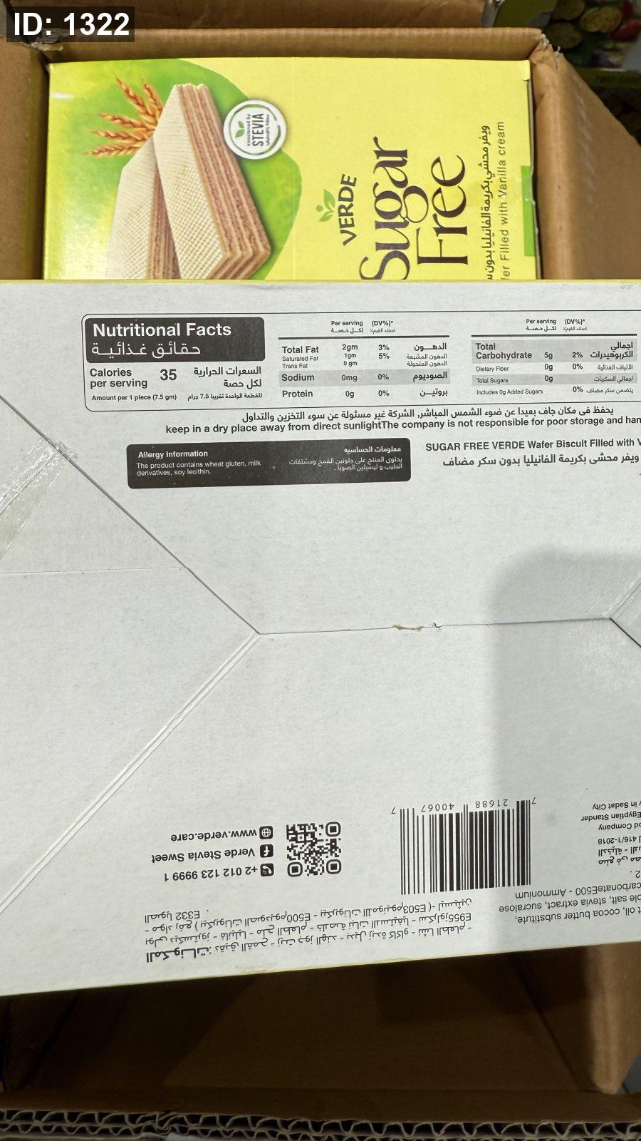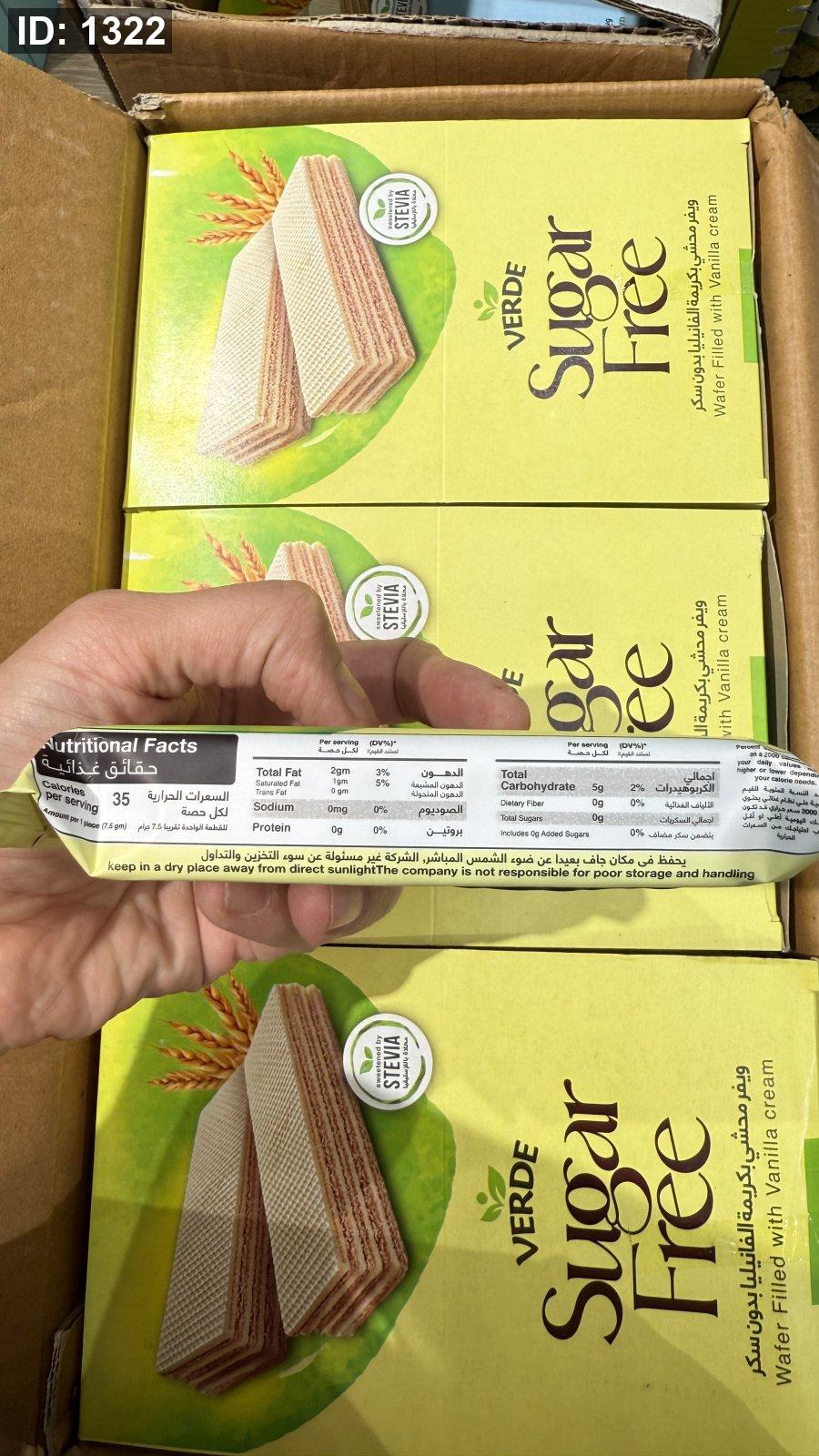 ويفر verde محشي كريمة الفانيلا خالي من السكر وزنه 60 غرام