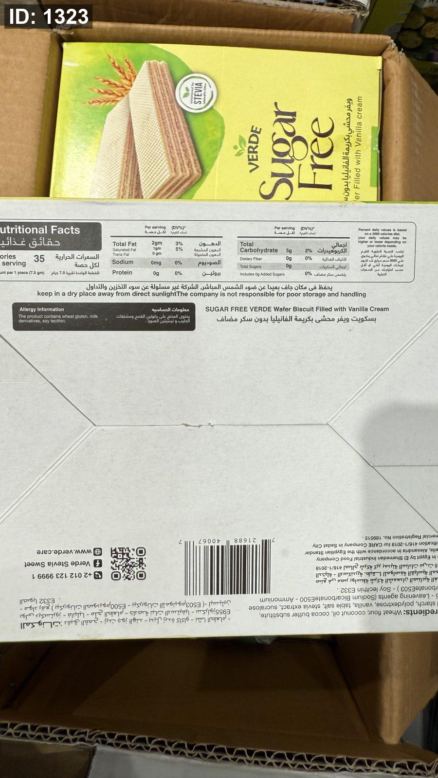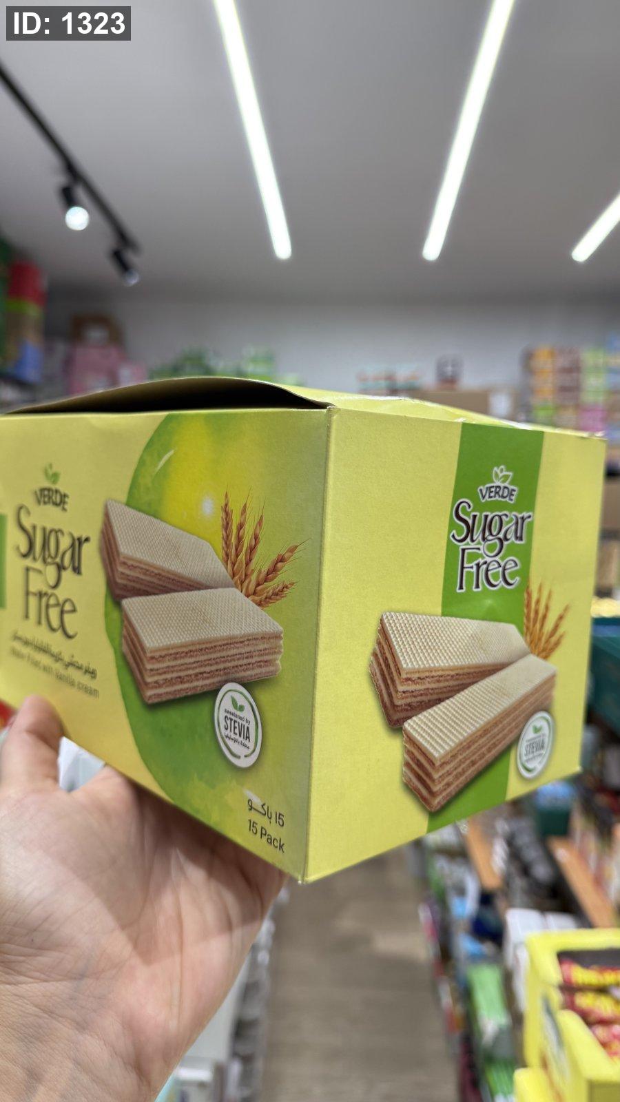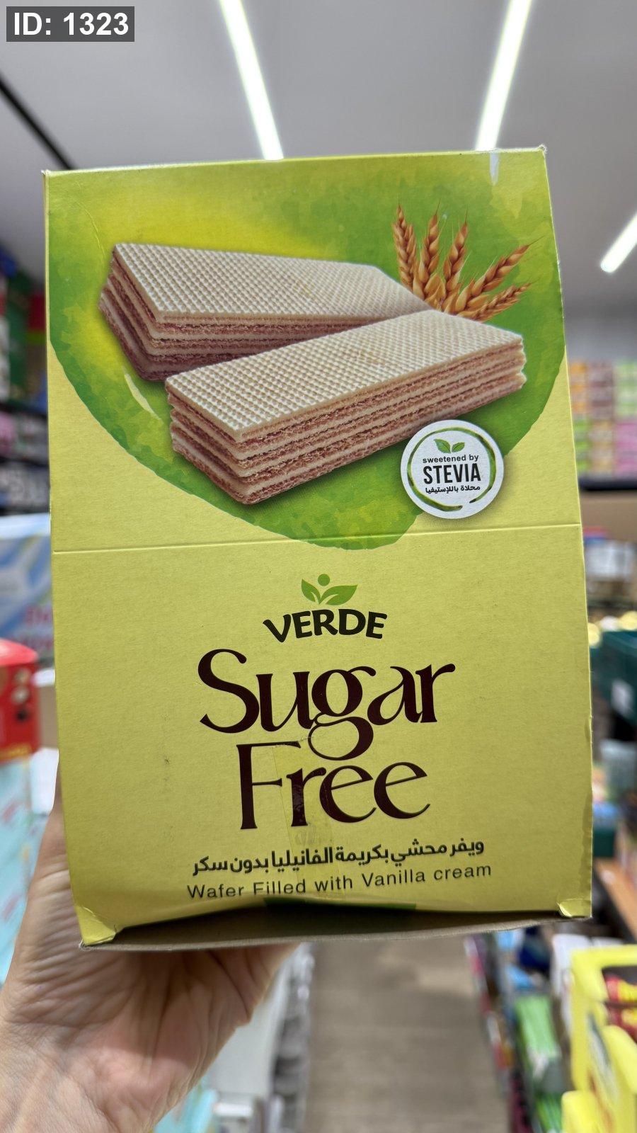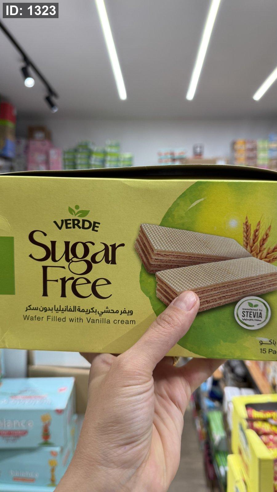 علبة من ويفر verde محشي كريمة الفانيلا خالي من السكر فيها 15 حبة
