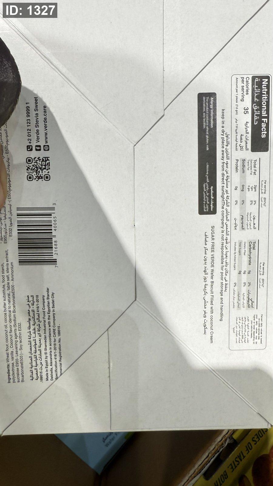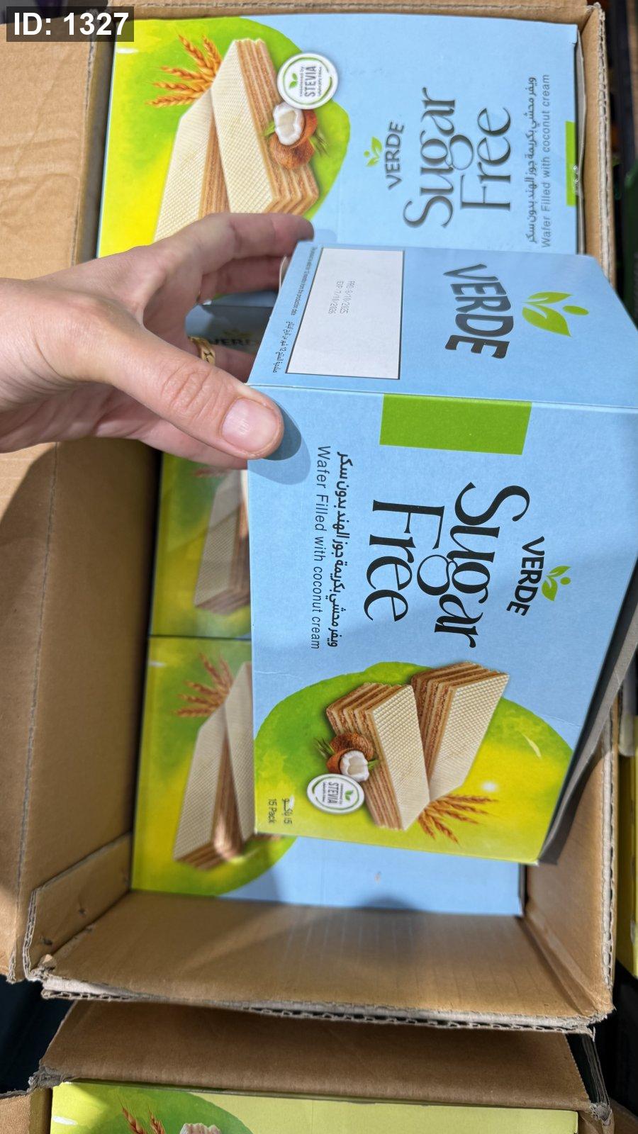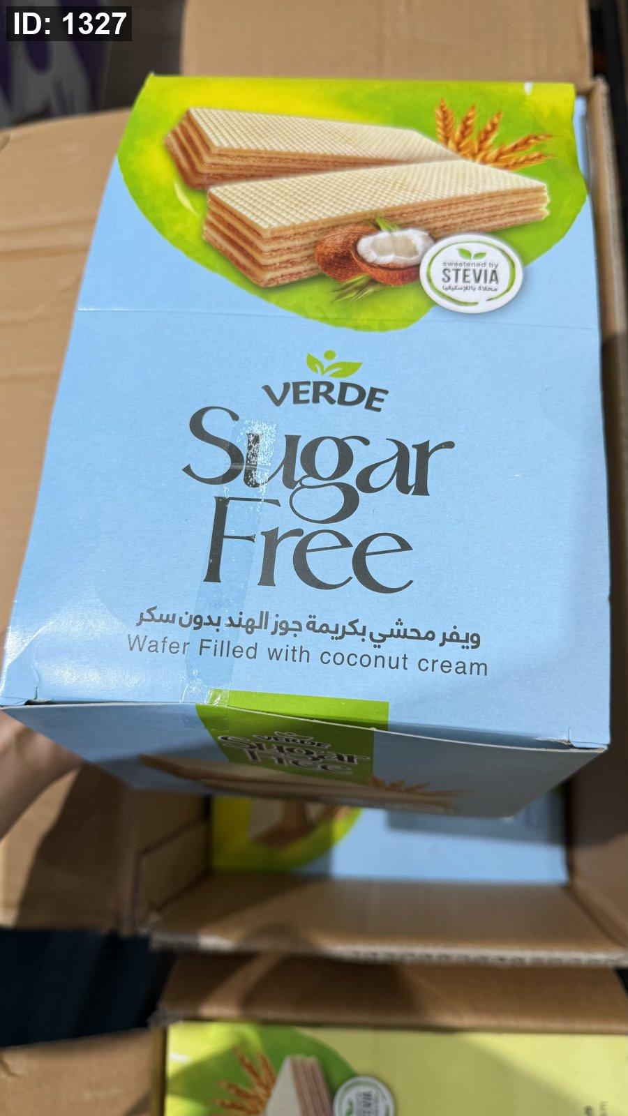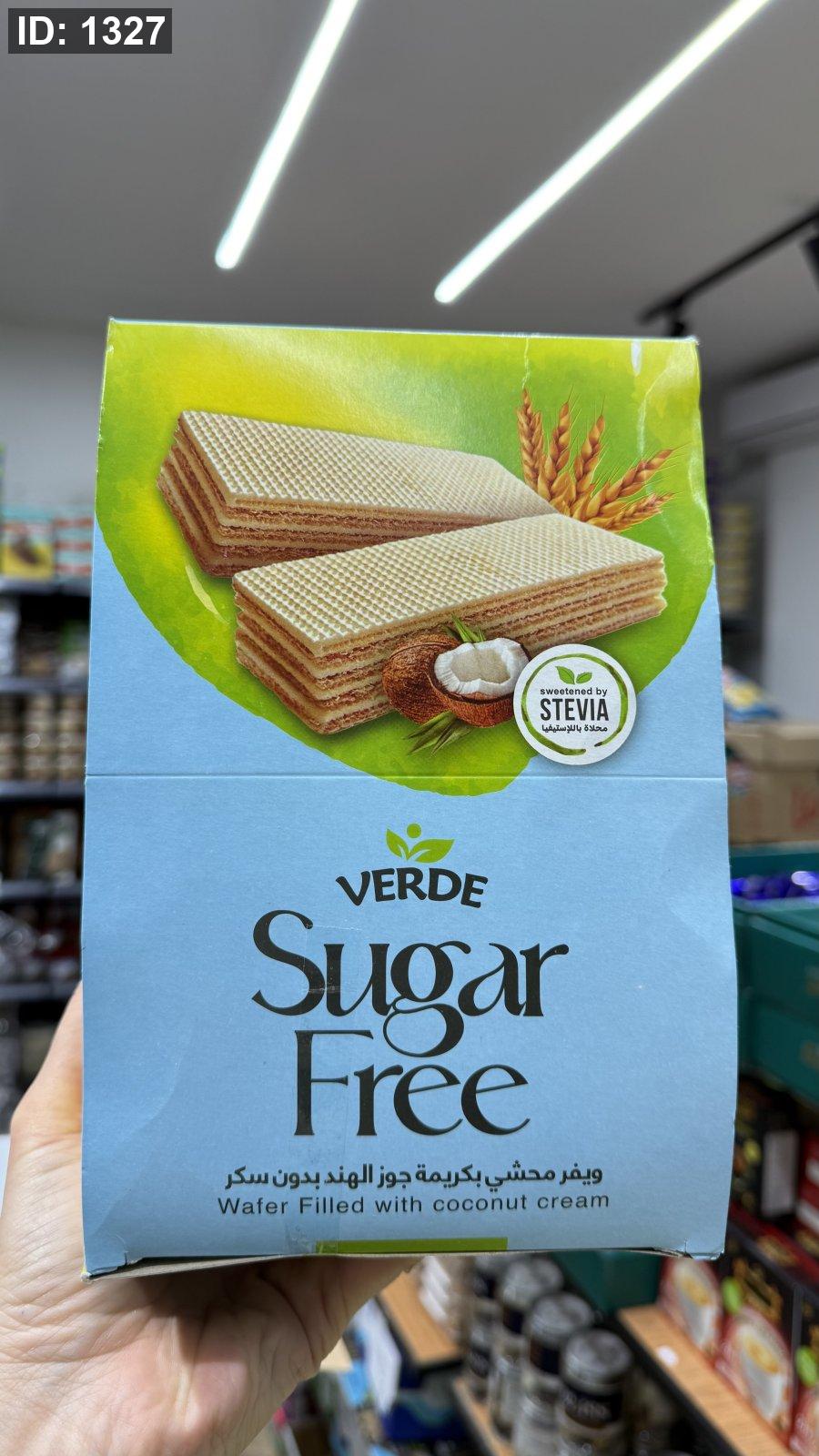 علبة من ويفر verde محشي كريمة جوز الهند خالي من السكر فيه 15 حبة