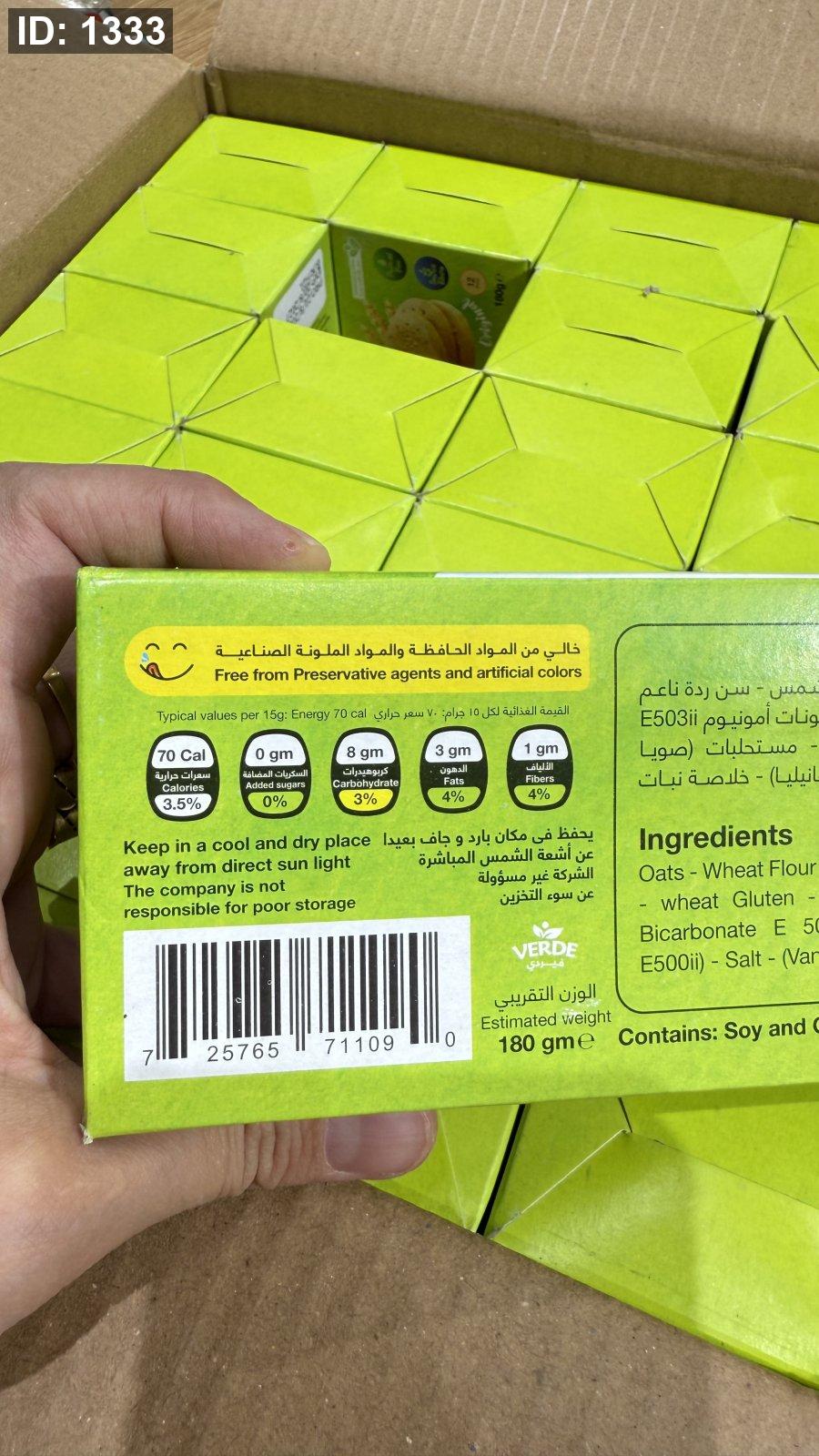 بسكويت دايجستف verde بسكويت شوفان اورجينال خالي من السكر وزنه 180 غرام