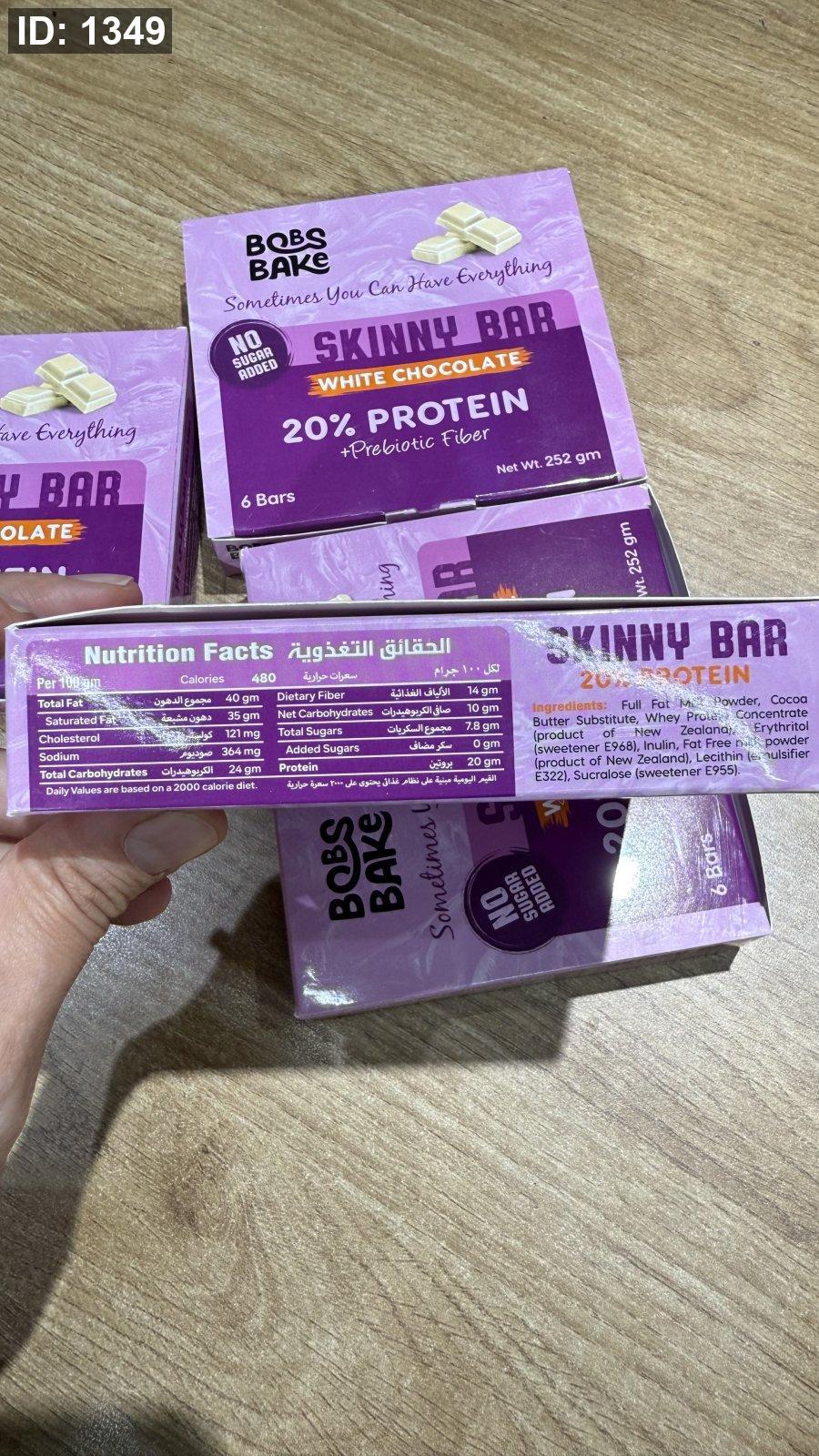 بوكس بارات شوكولاته بيضاء عالية البروتين والبروبيوتيك خالي من السكر فيه 6 بارات