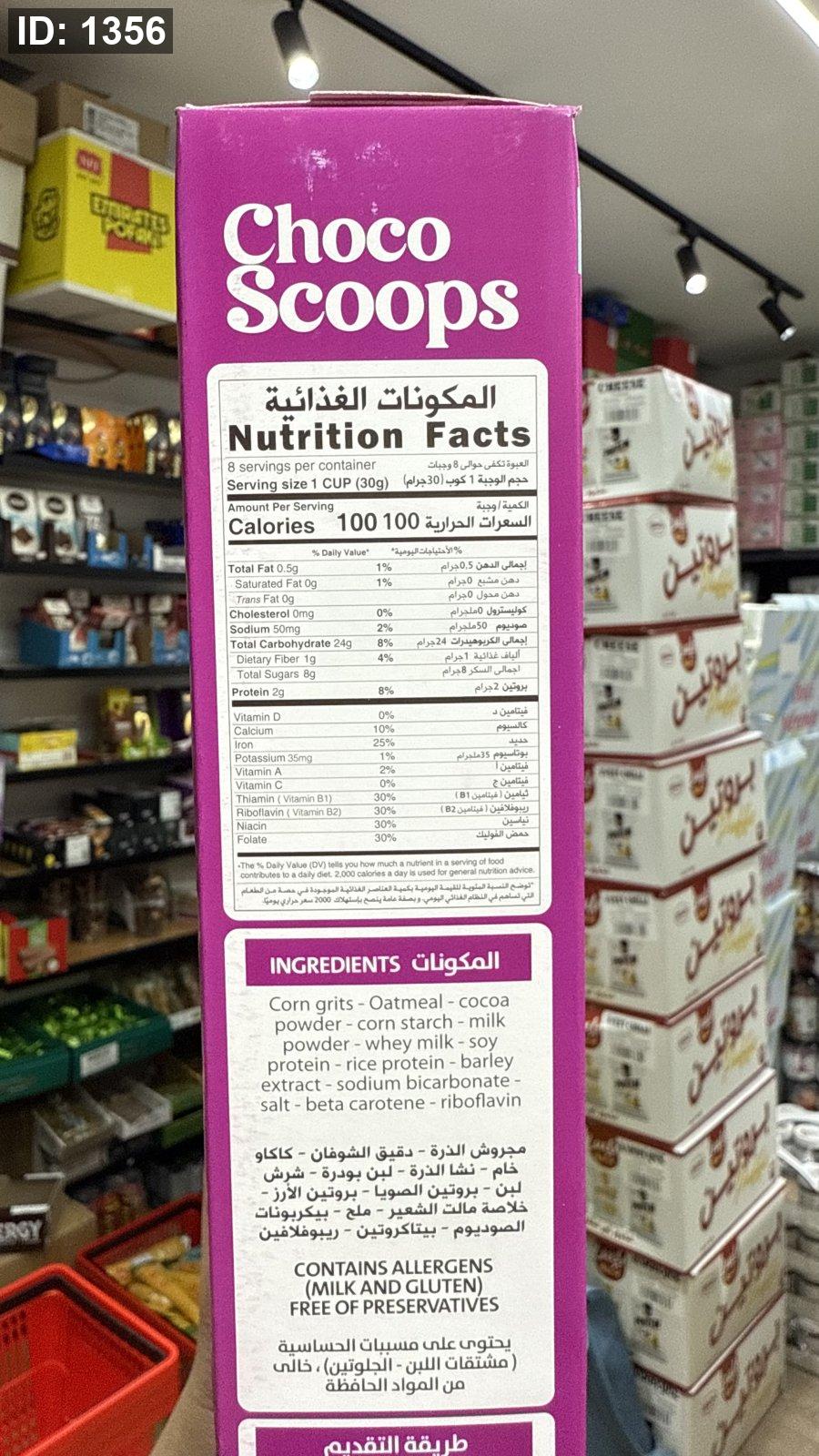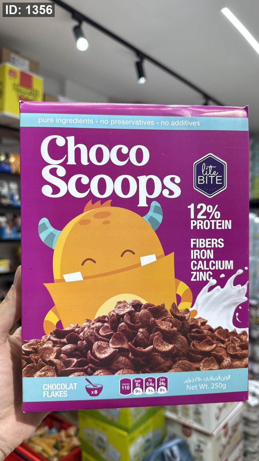 كورنفلكس رقائق شوكولاته choco scoops عالي البروتين والحديد والكالسيوم والزنك والالياف بدون سكر مضاف وزنه 250 غرام