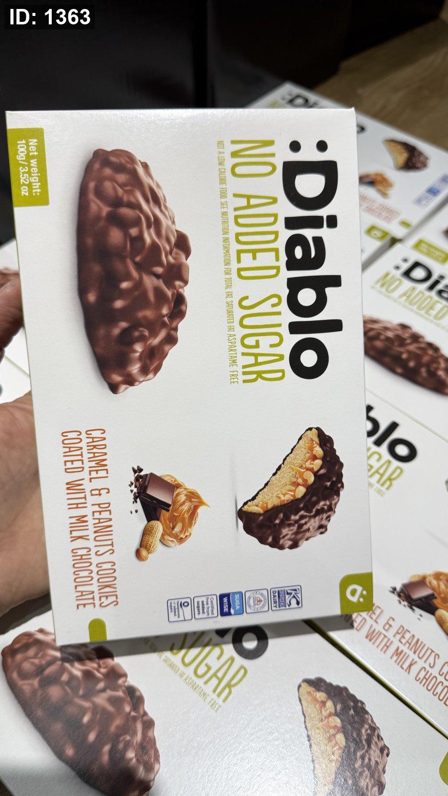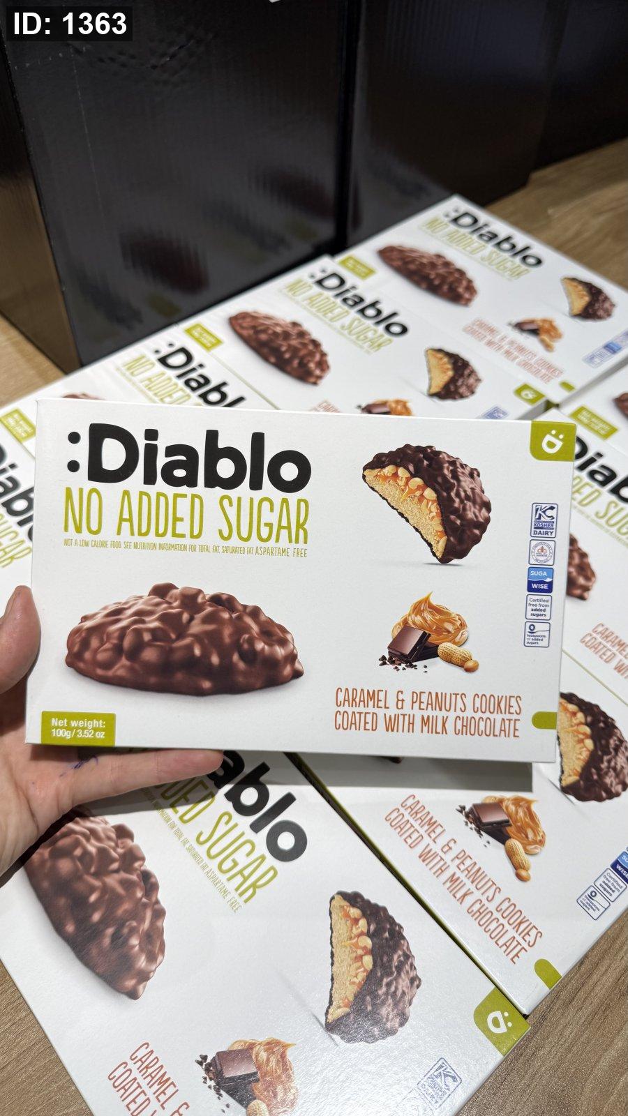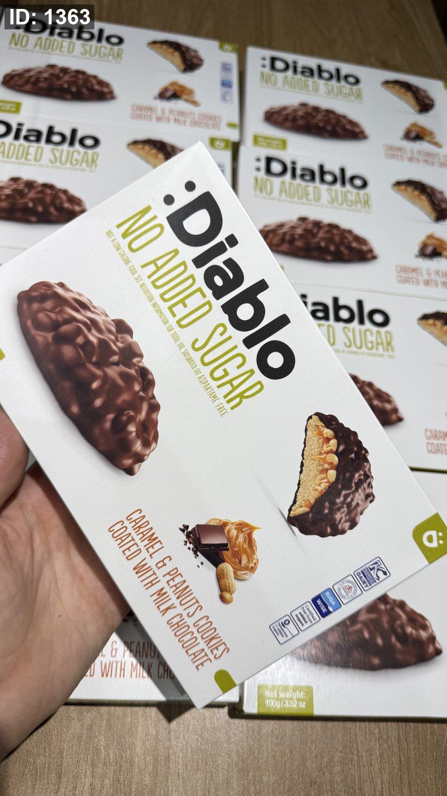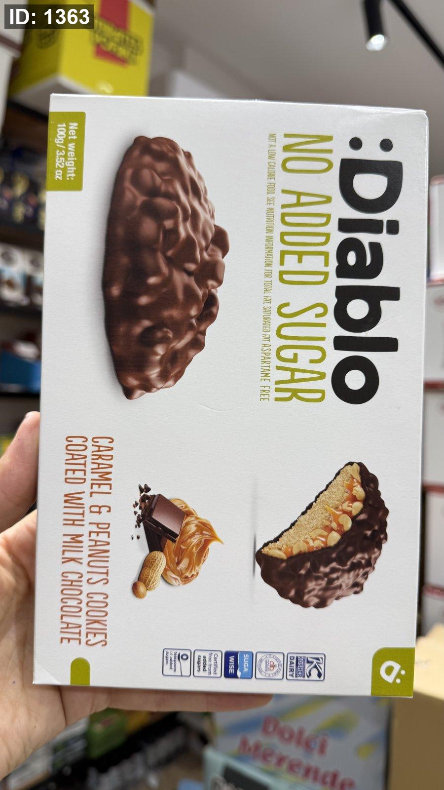 كوكيز ديابلو بالشوكولاته الحليب والكراميل والفول السوداني خالي من السكر وزنه 100 غرام