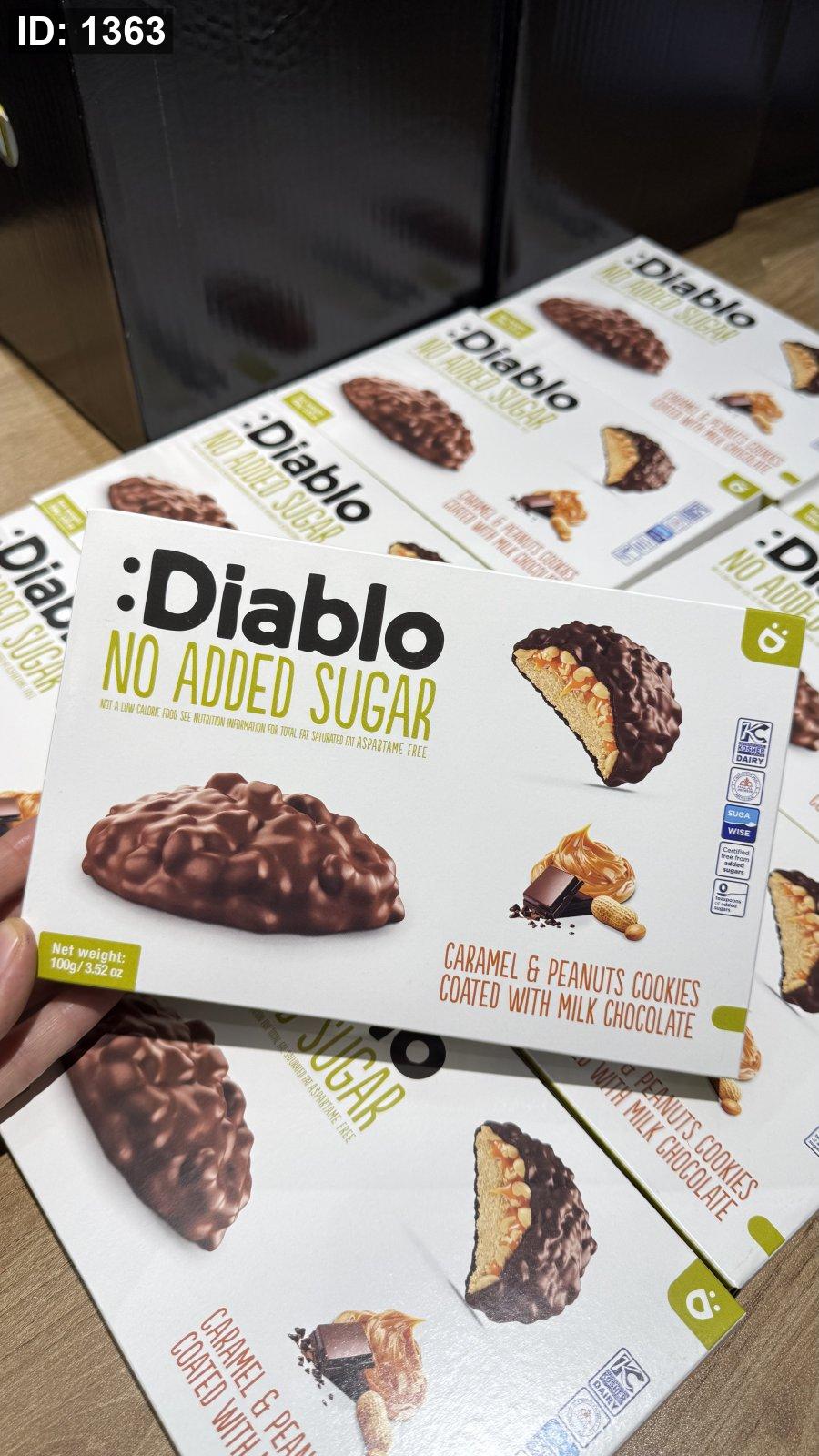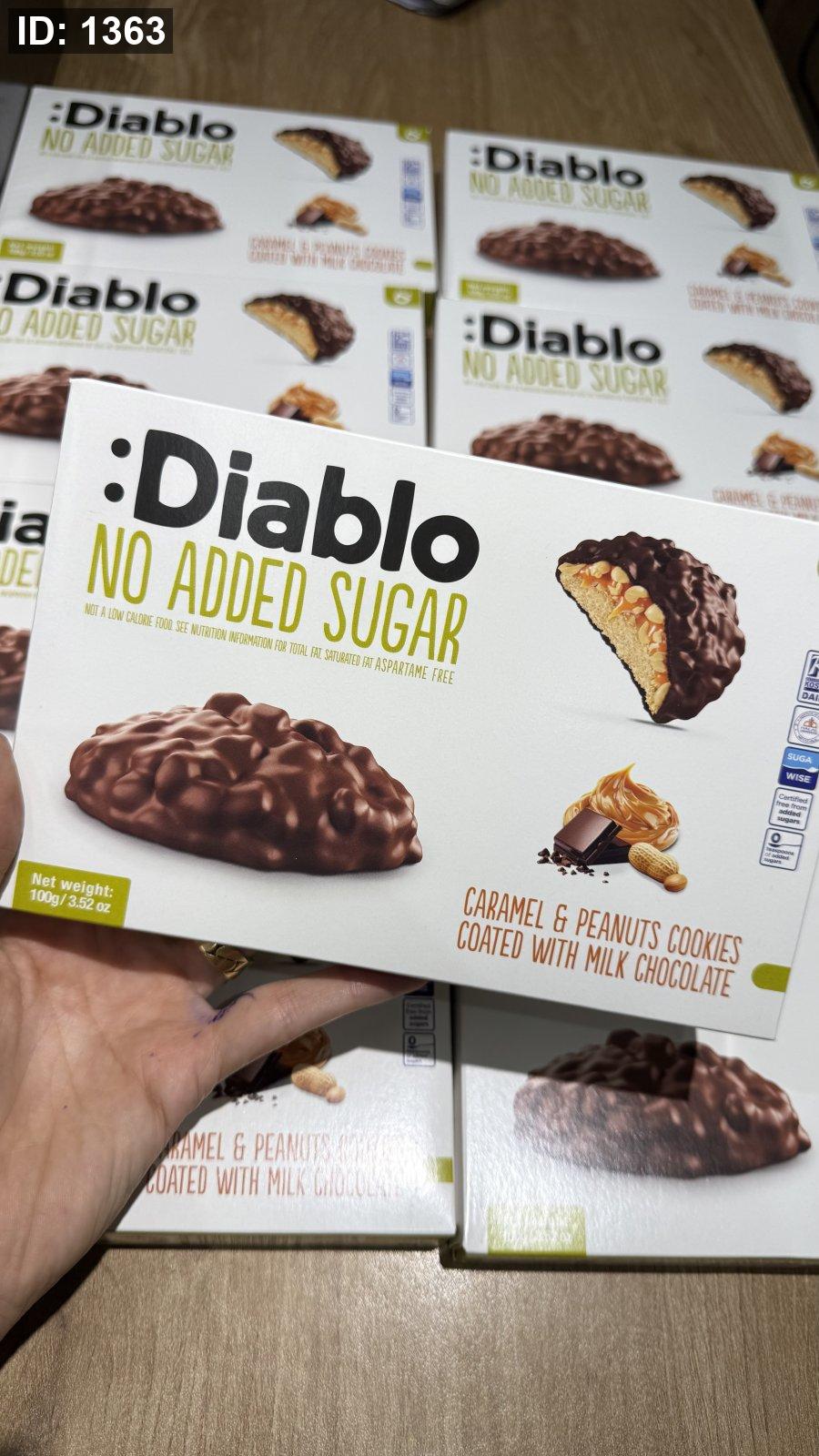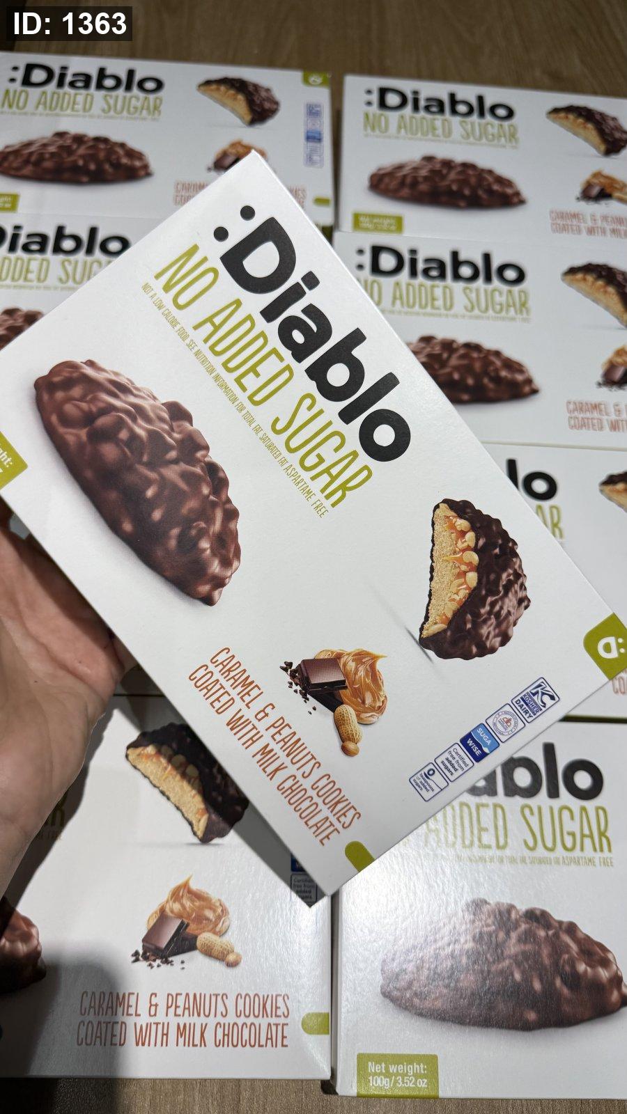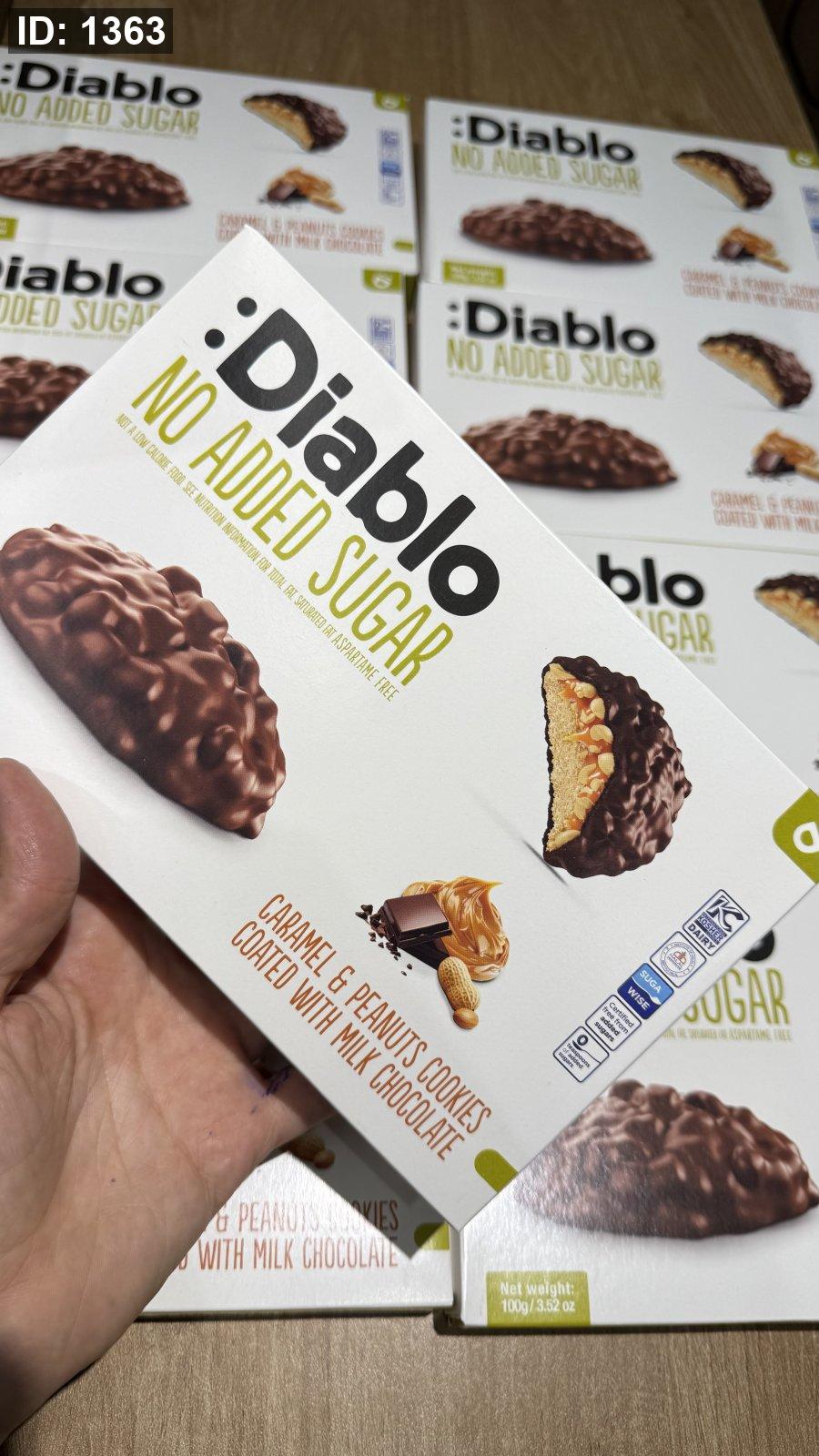 كوكيز ديابلو بالشوكولاته الحليب والكراميل والفول السوداني خالي من السكر وزنه 100 غرام