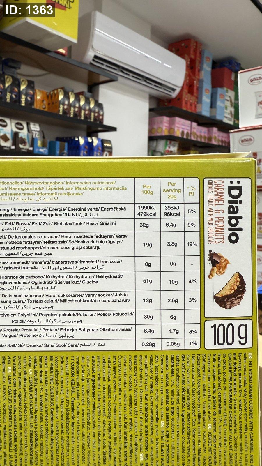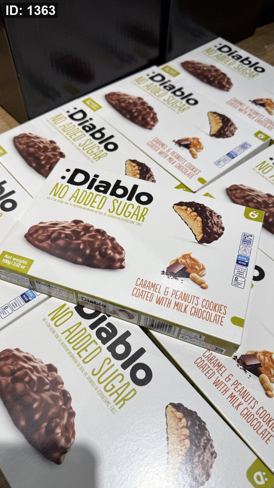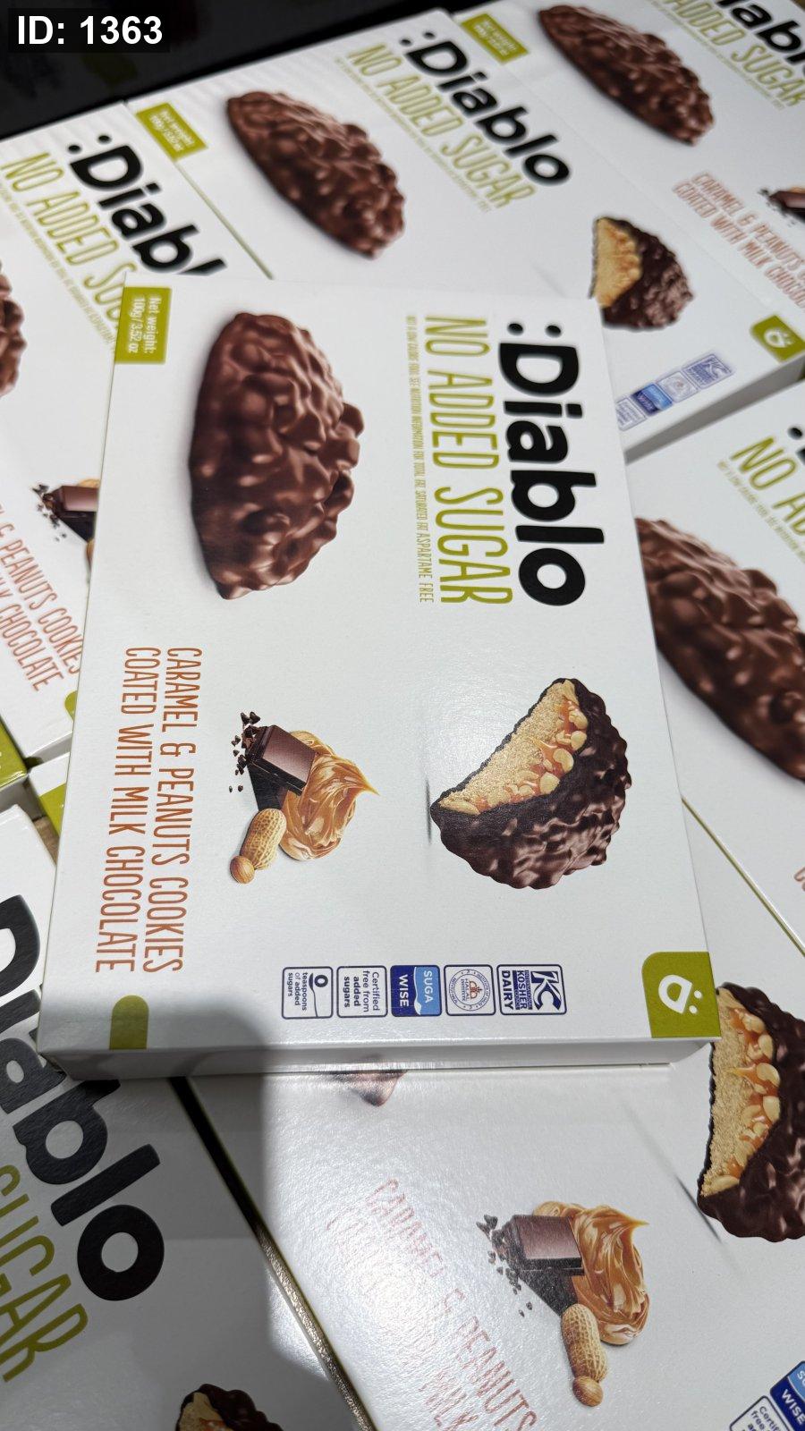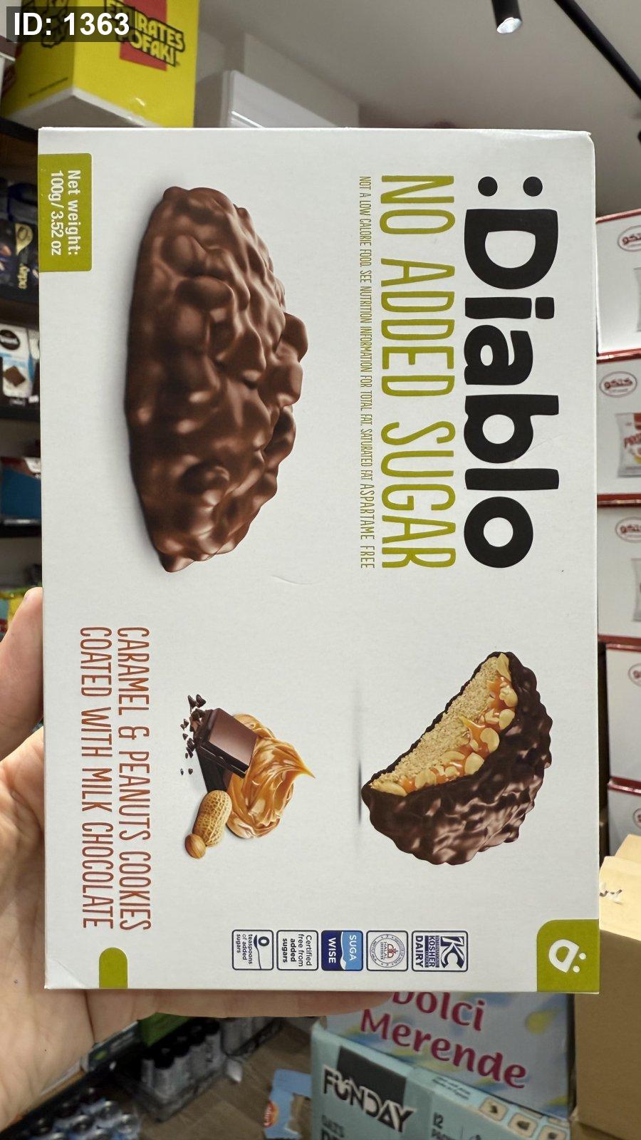 كوكيز ديابلو بالشوكولاته الحليب والكراميل والفول السوداني خالي من السكر وزنه 100 غرام