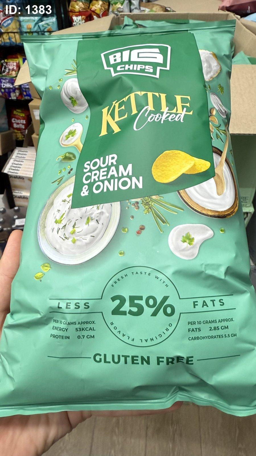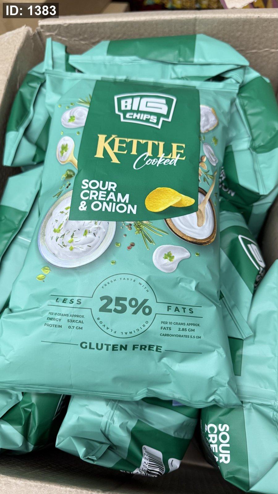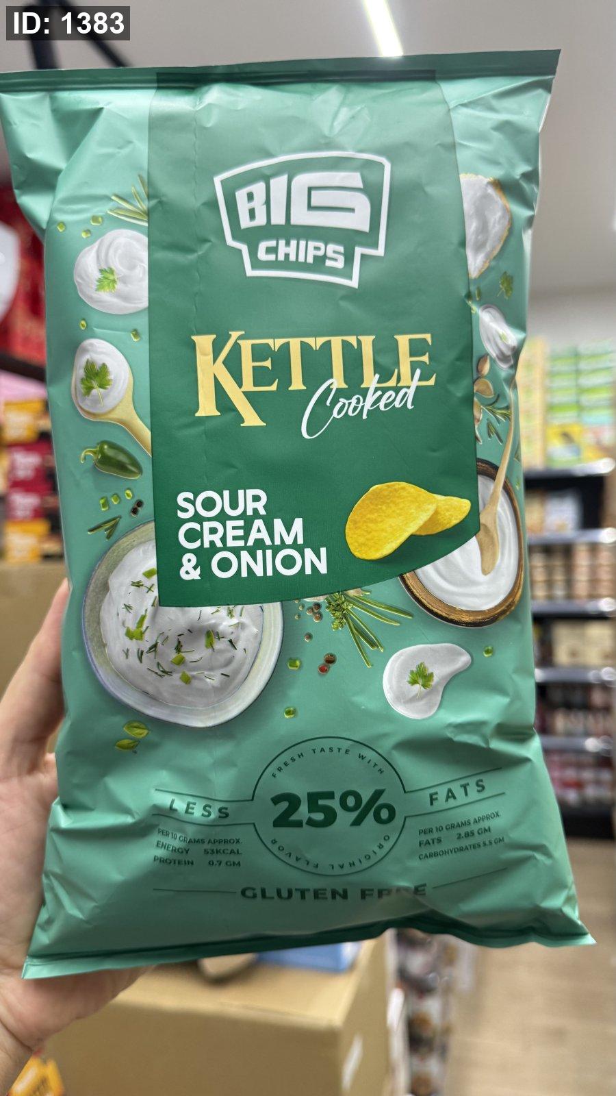 شيبس kettle رقائق البطاطا بنكهة الكريمة والبصل خالي من الجلوتين وزنه 100غرام