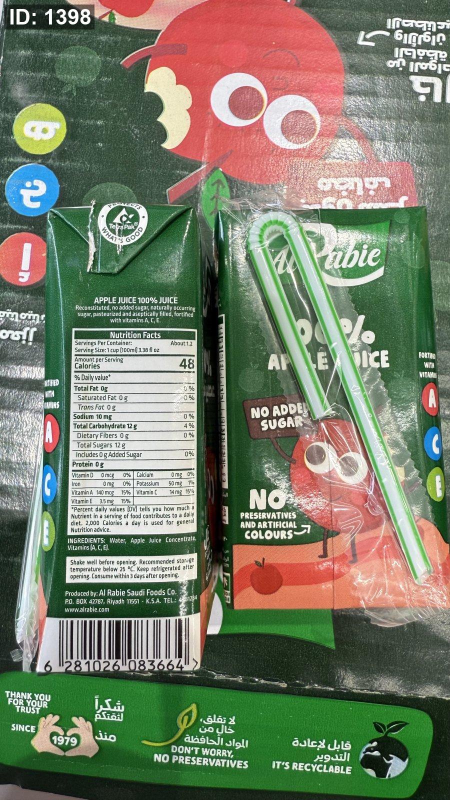 2 علبة الربيع عصير تفاح بدون سكر مضاف وزن العلبة 120مل