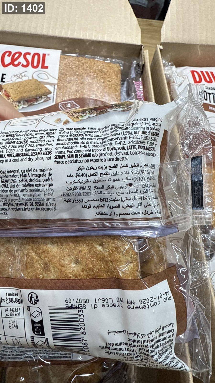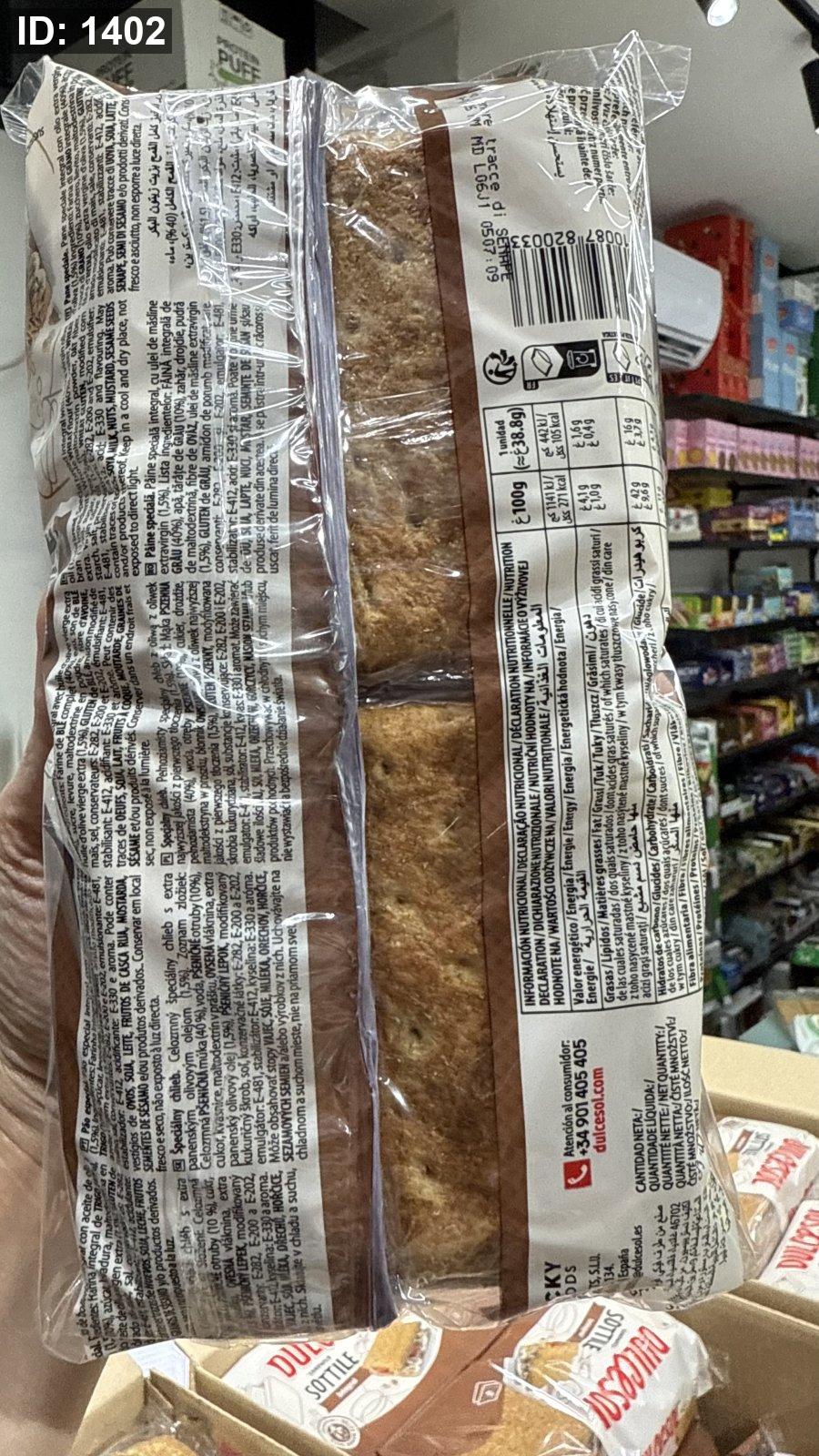 خبز اسباني خاص عالي الجودة✨ العلبة فيها 8 اكياس ✨ عالي الالياف✨ دقيق قمح كامل ،نخالة قمح ، ألياف الشوفان، زيت زيتون بكر ممتاز
