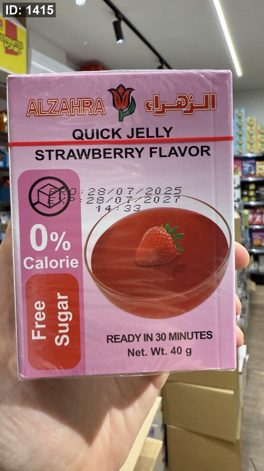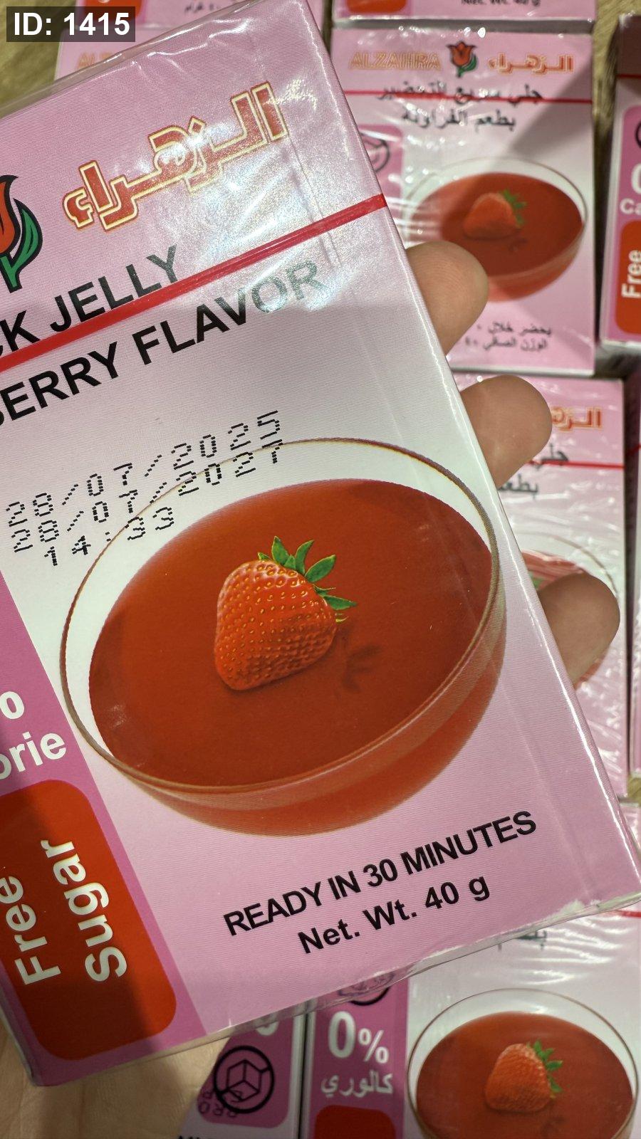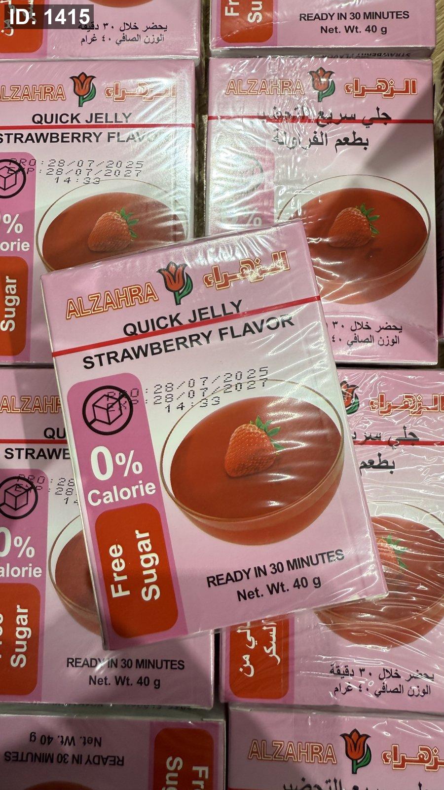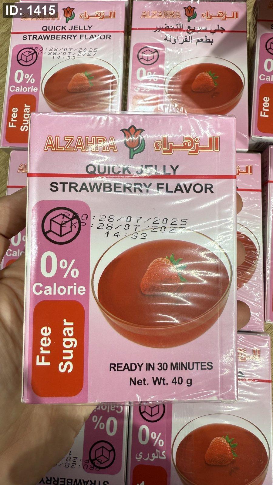 جيلي الزهراء بطعم الفراولة سريع التحضير خالي من السكر وخالي من السعرات الحرارية وزنها 40 غرام