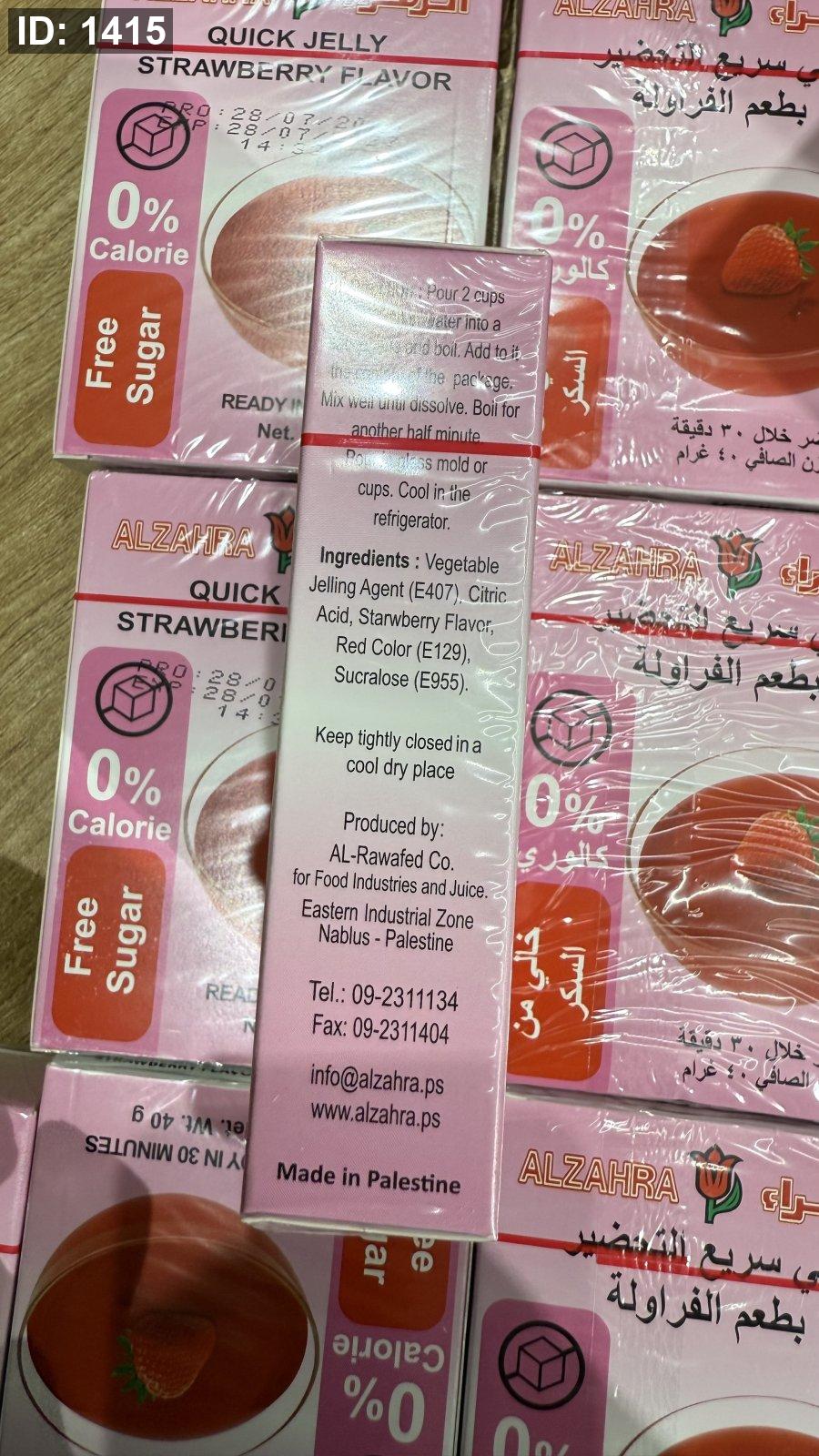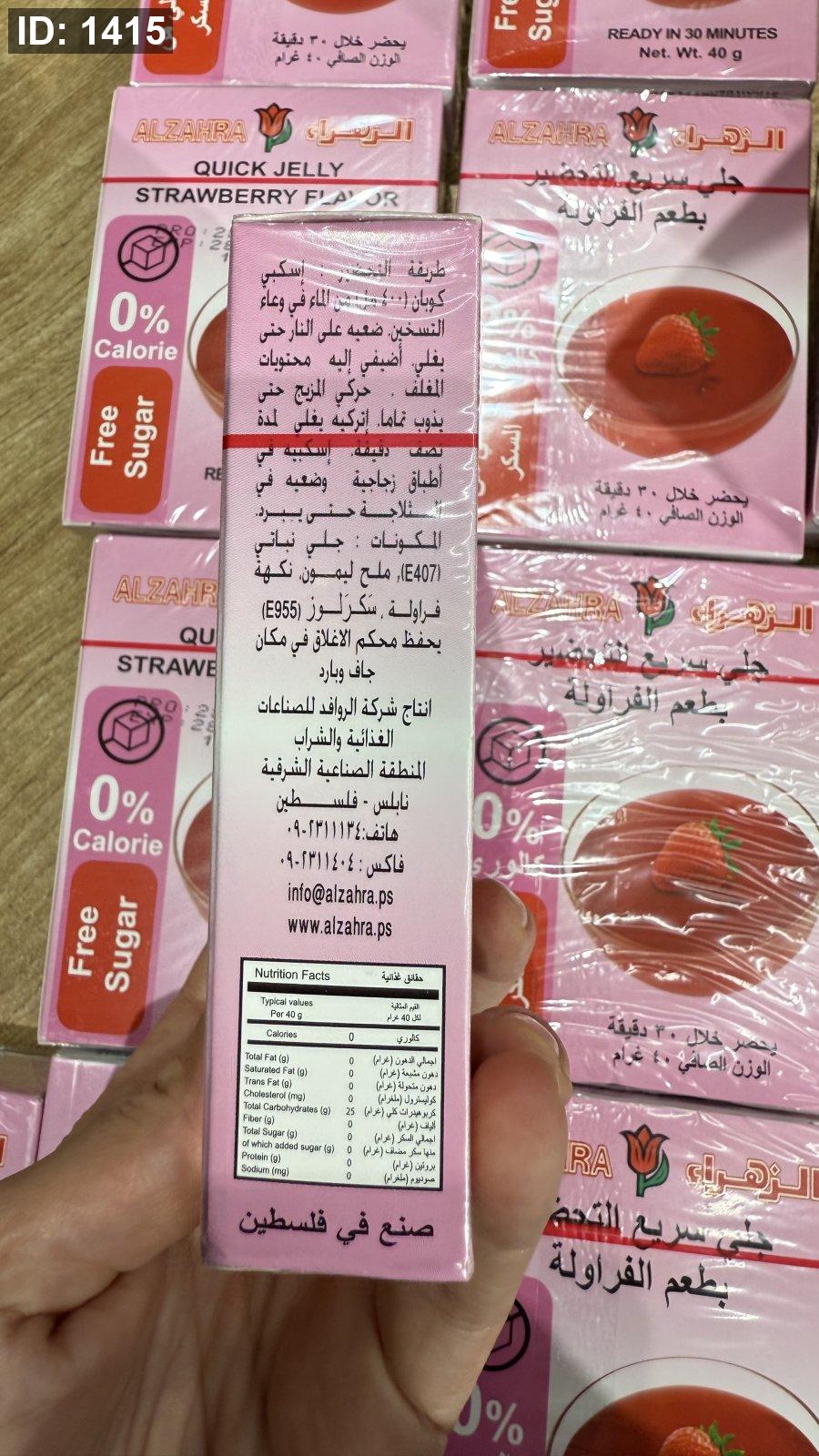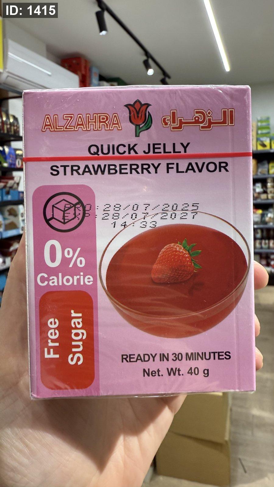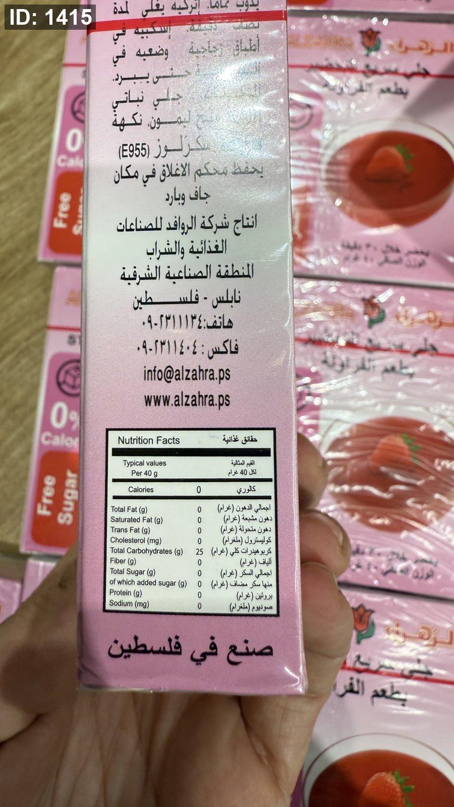 جيلي الزهراء بطعم الفراولة سريع التحضير خالي من السكر وخالي من السعرات الحرارية وزنها 40 غرام