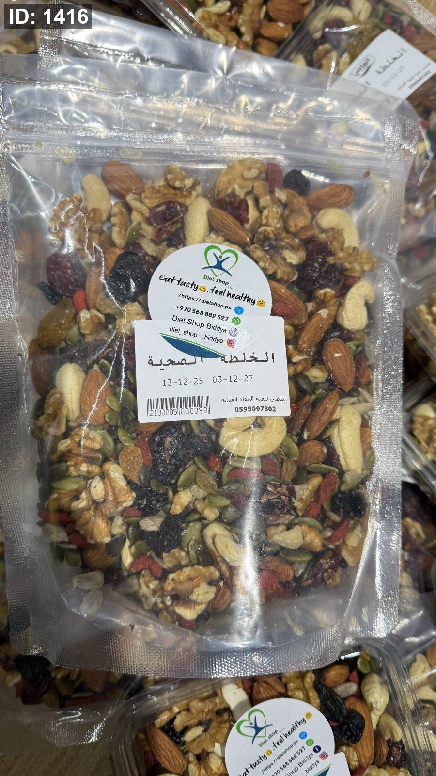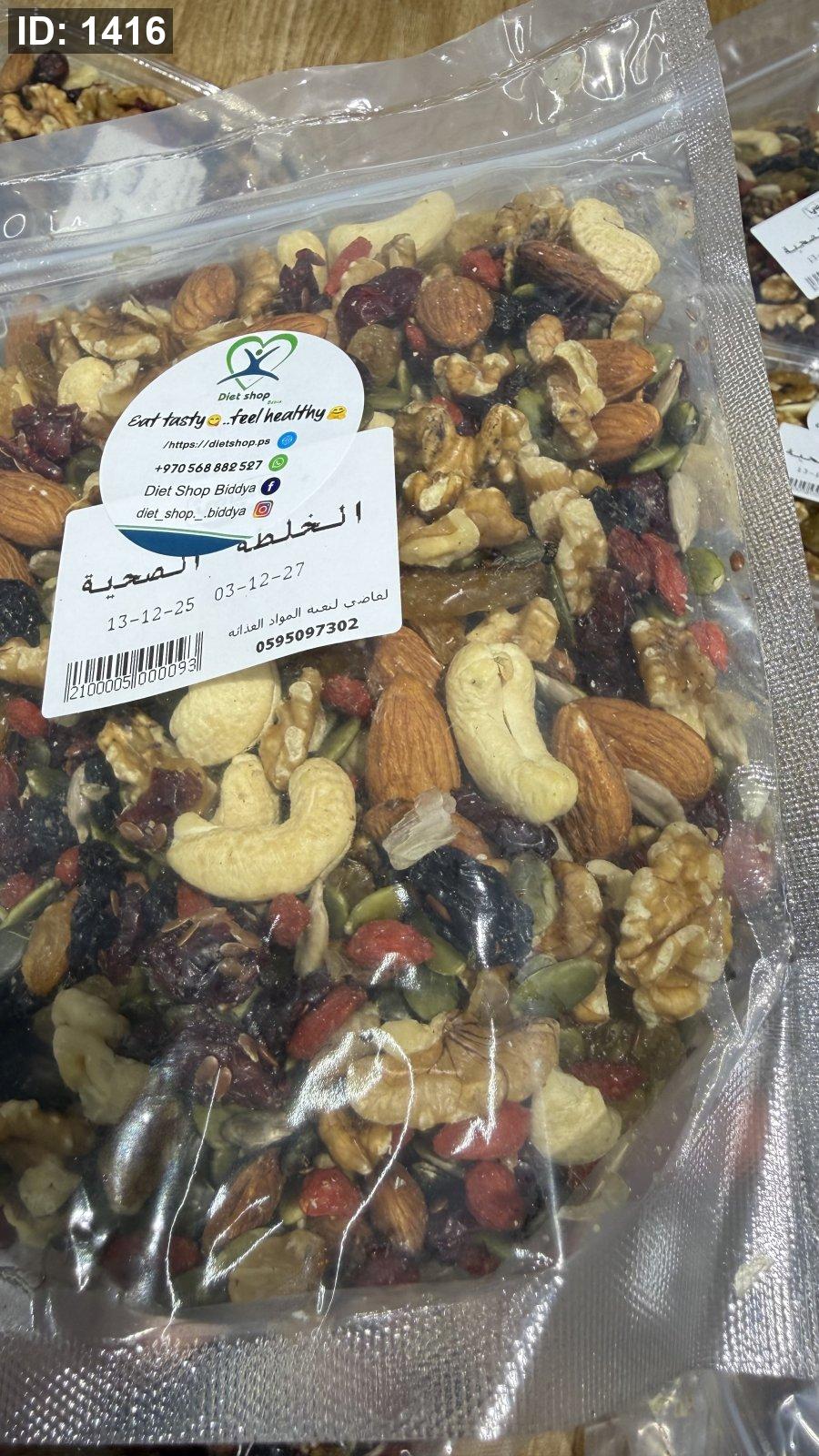 خلطة الطاقة والنشاط والذكاء مزيج من المكسرات النية الغنية بالفيتامينات والمعادن خالية من السكر المضاف وزنه 500 غرام