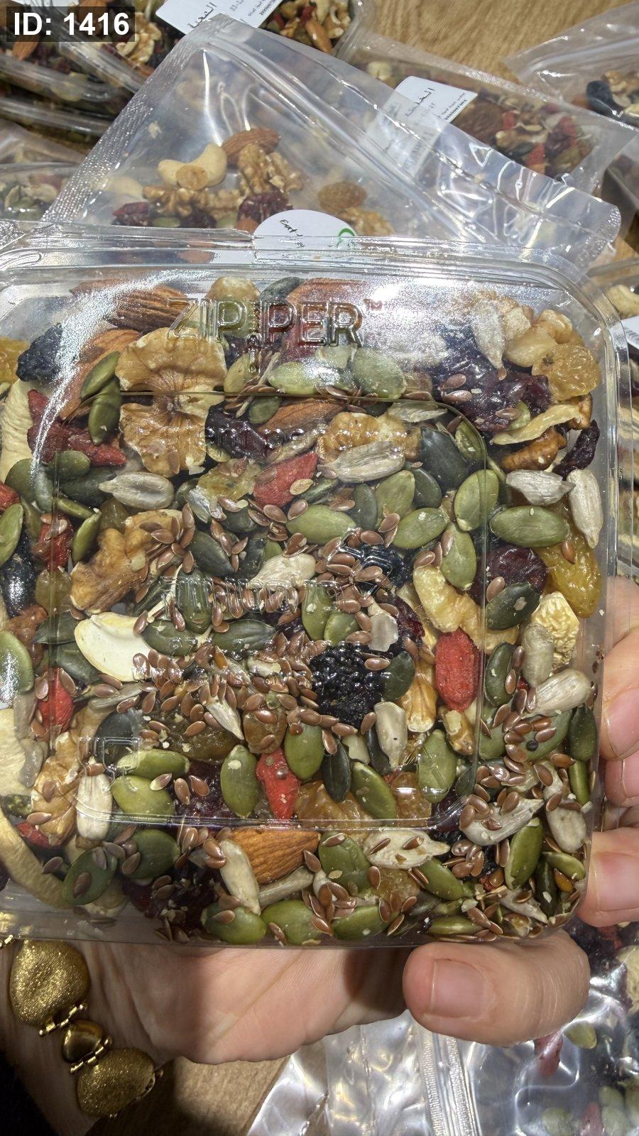 🥜 لوز، جوز، بندق، كاجو، بذور دوار الشمس، وشوية زبيب... كل مكوّن مدروس ليعطيك دفعة نشاط وطاقة وذكاء ويحسّن المزاج ✨ بدون إضافات، بدون تحميص... بس نية وطبيعية 100٪