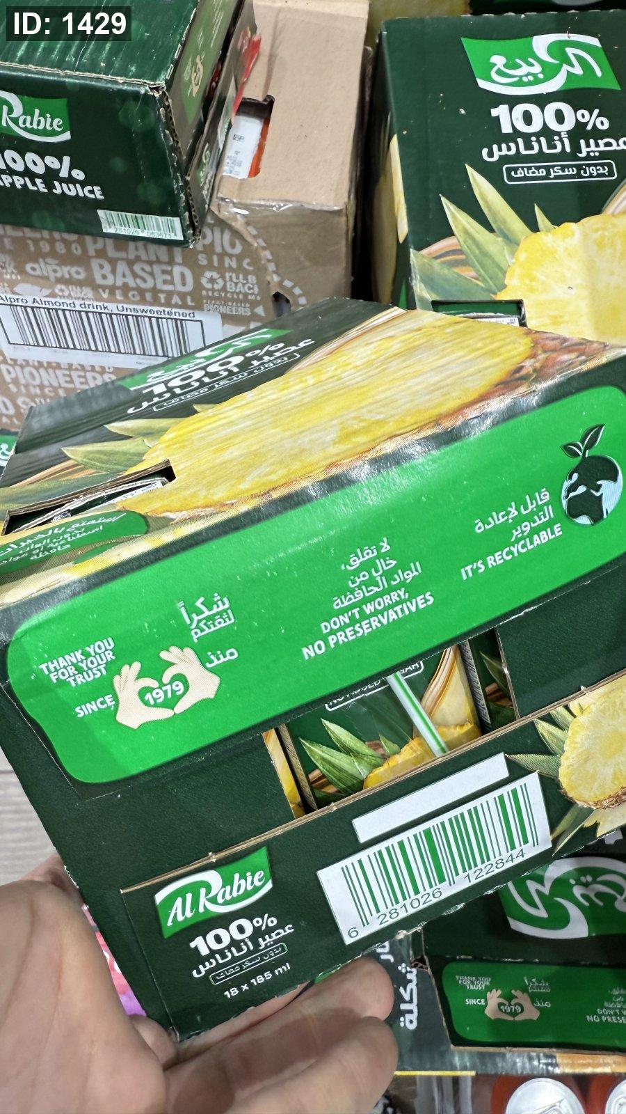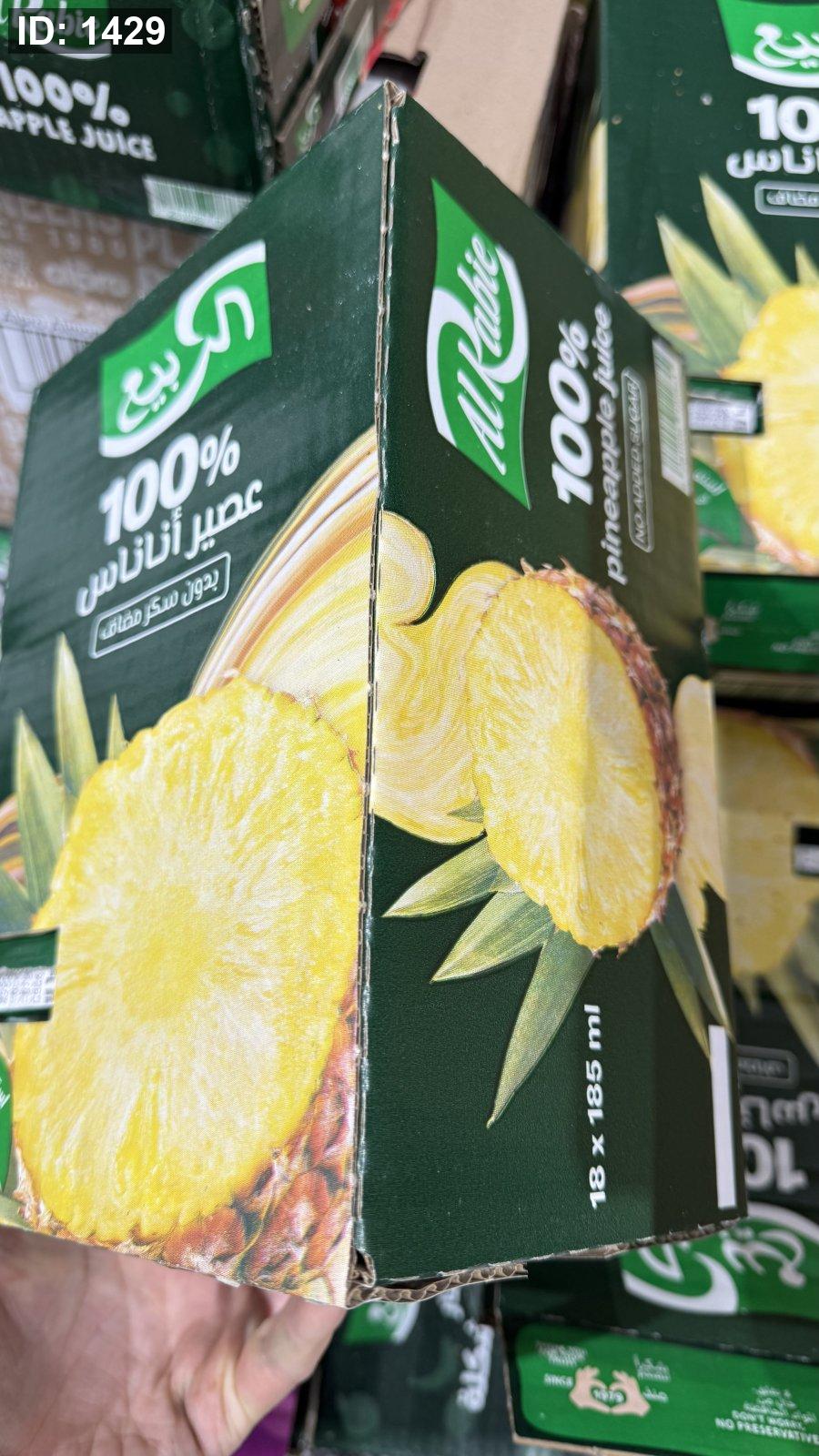 بوكس الربيع عصير اناناس بدون سكر مضاف وزنها 180مل فيه 18 علبة