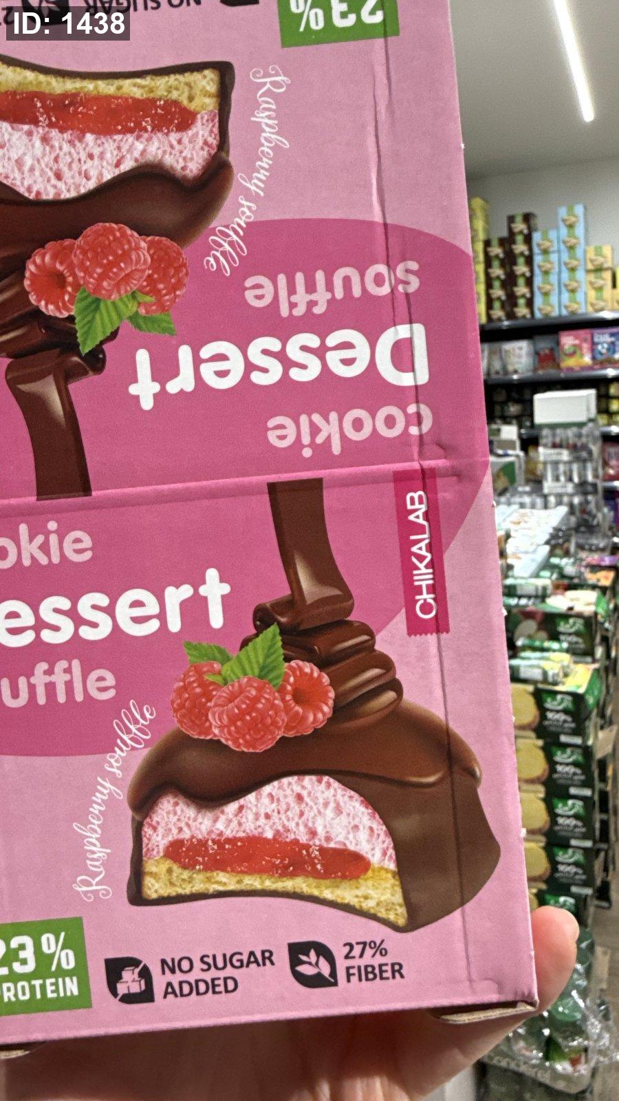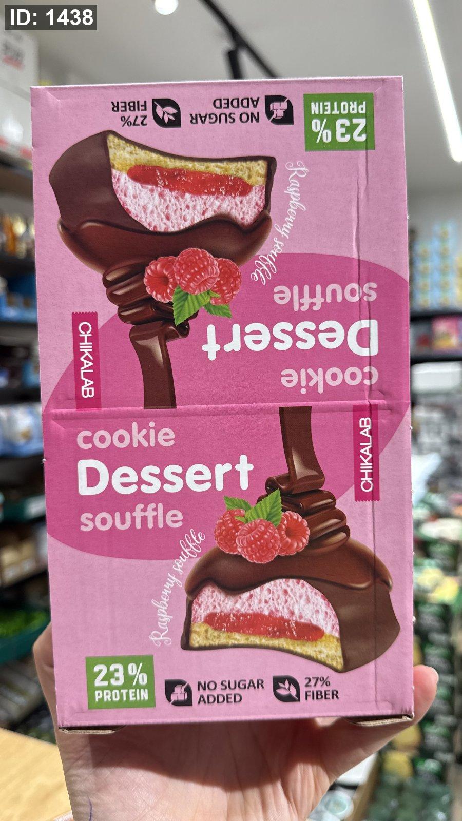 بوكس كوكيز مغطى بالشوكولاتة مع سوفلي وحشوة التوت 23% بروتين 27% ألياف بدون سكر وزنه 55غم فيه 8 حبات