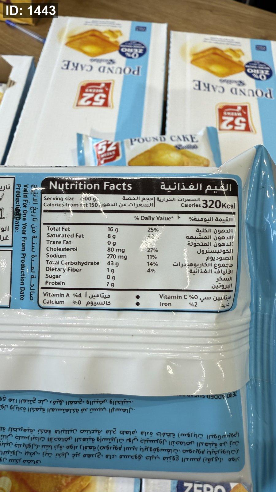 باوند كيك زيرو خالي من السكر وزنها 42 غرام