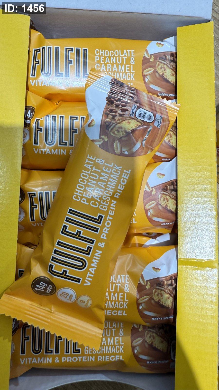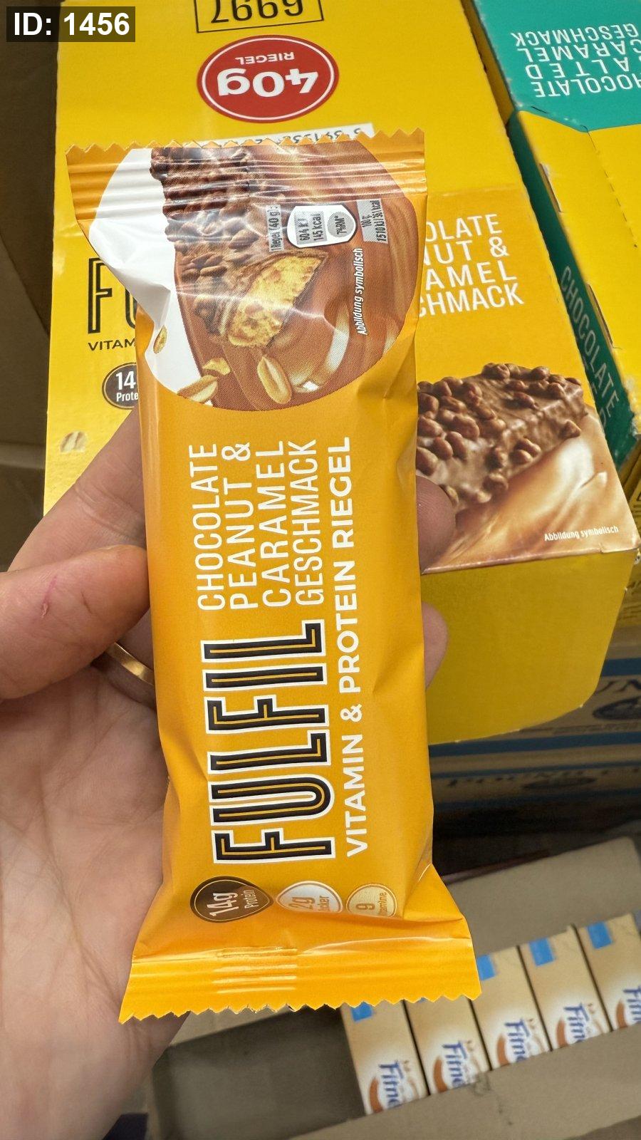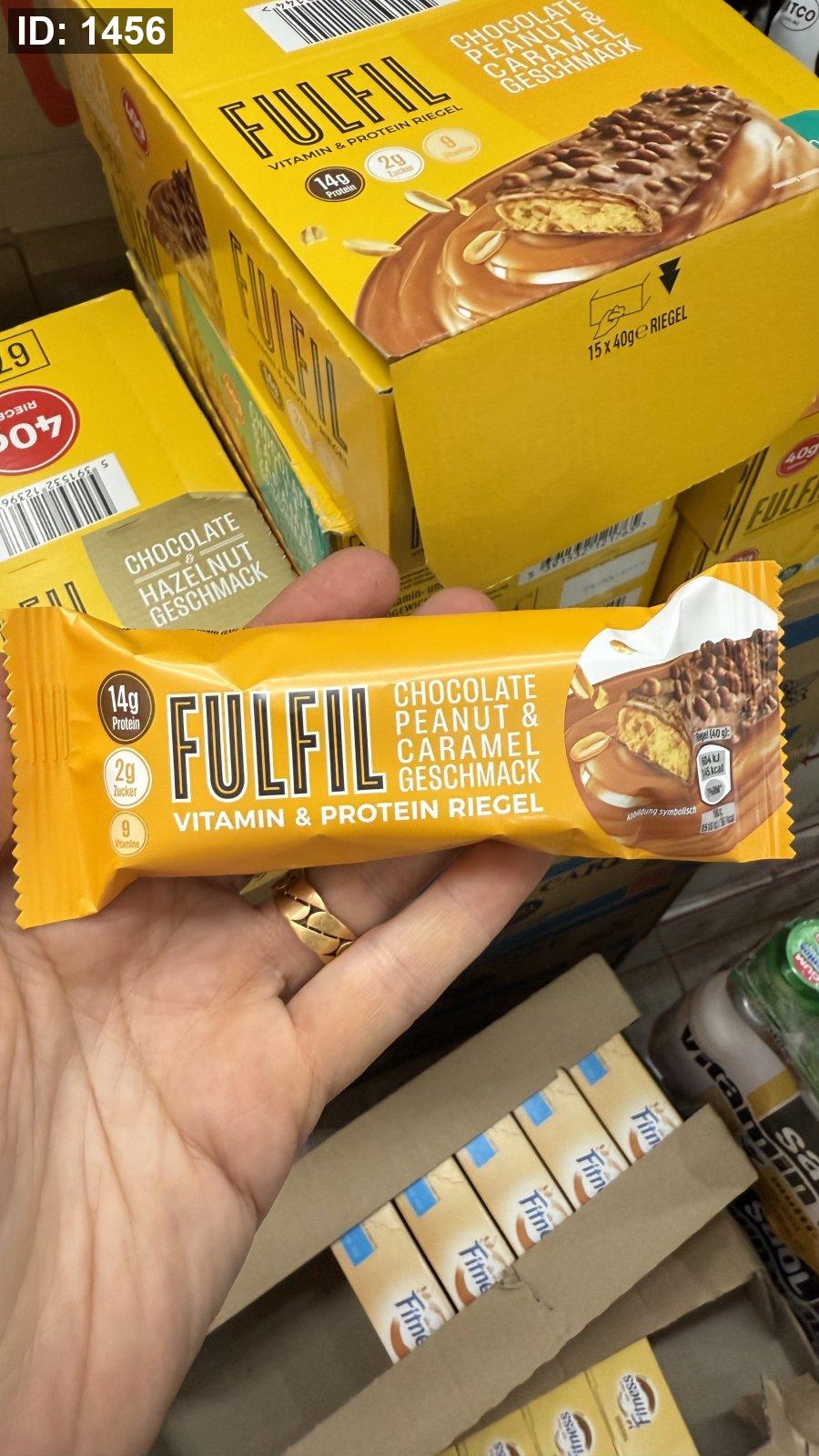 لوح بروتين وفيتامين بنكهة الشوكولاتة والفول السوداني والكراميل من ماركة Fulfil عالي البروتين والفيتامينات وبدون سكر وزنه 40 غرام