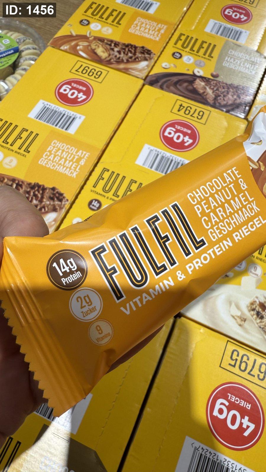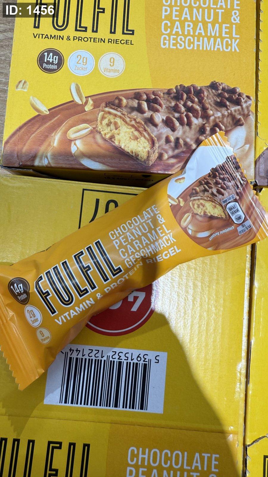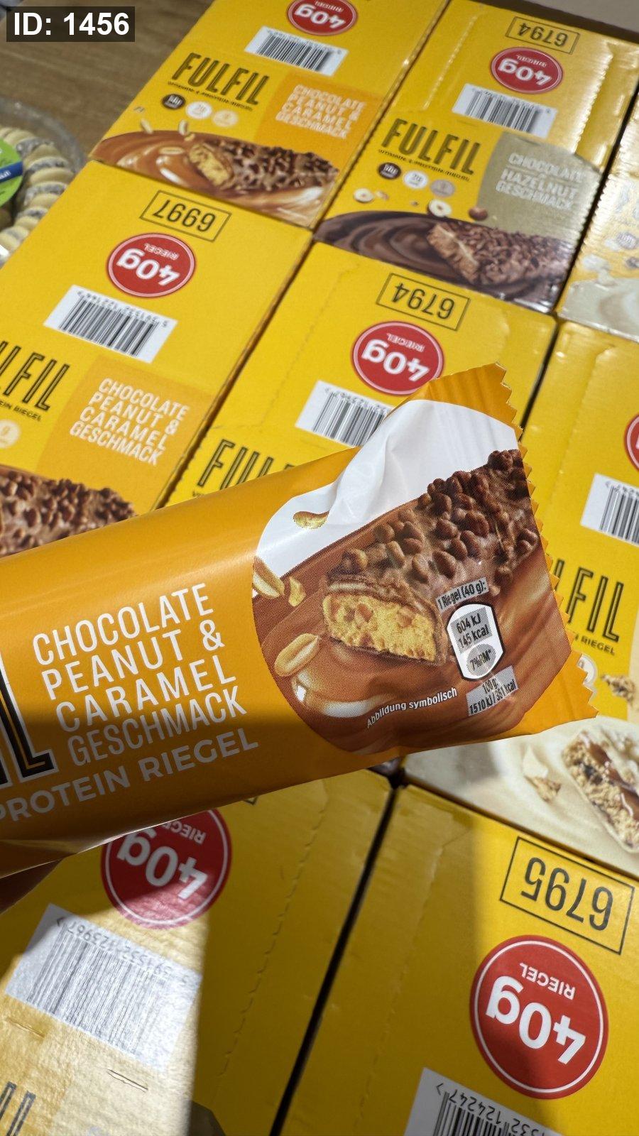 لوح بروتين وفيتامين بنكهة الشوكولاتة والفول السوداني والكراميل من ماركة Fulfil عالي البروتين والفيتامينات وبدون سكر وزنه 40 غرام