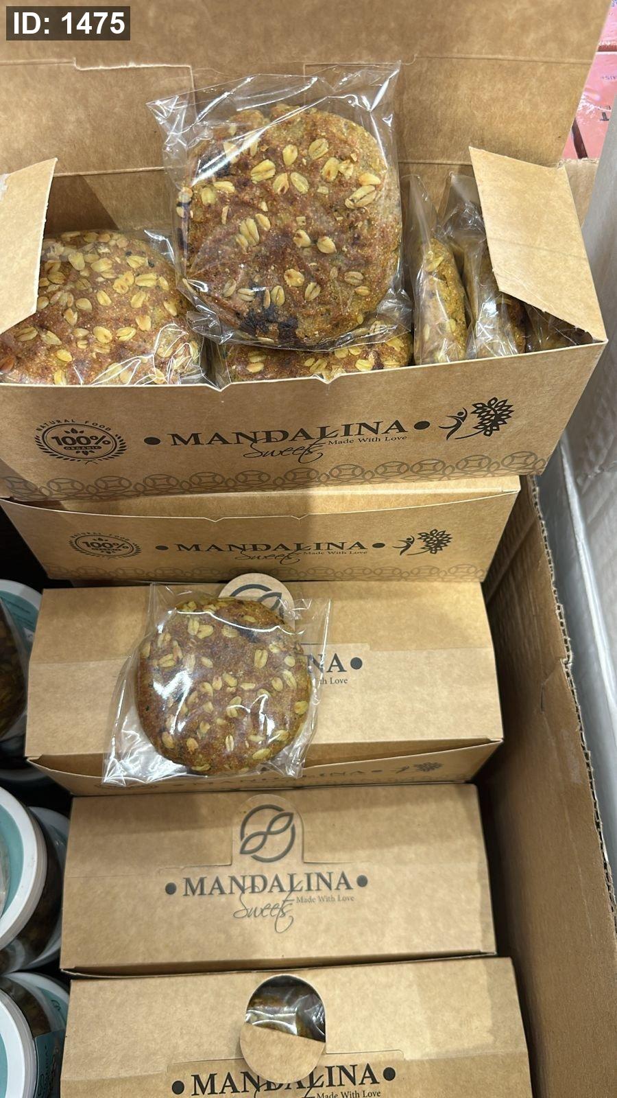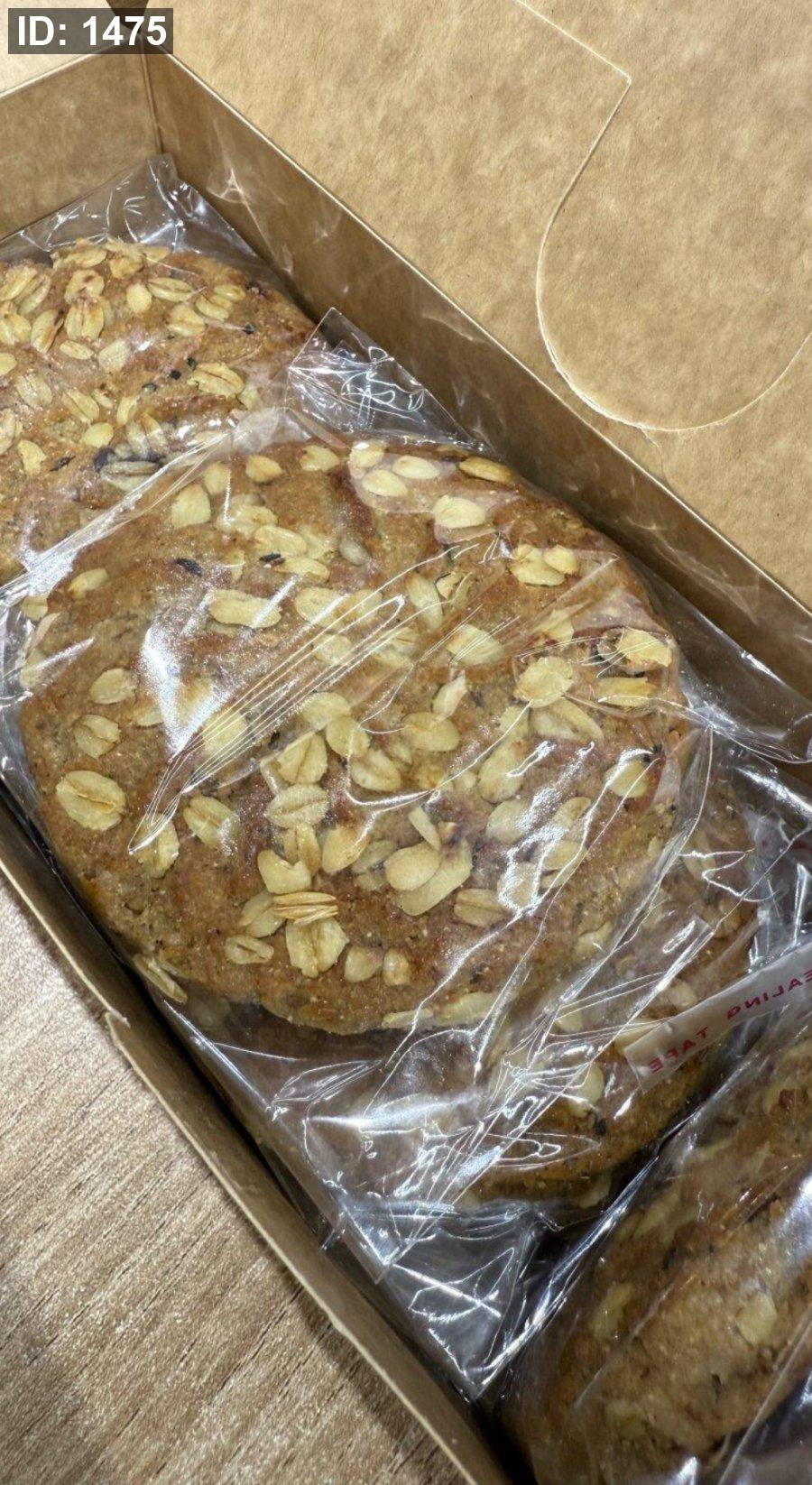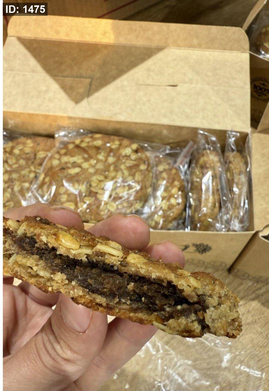 علبة بوكس من بسكويت الشوفان محشي تمر خالي من السكر وزنها 50 غرام فيها 12 حبة