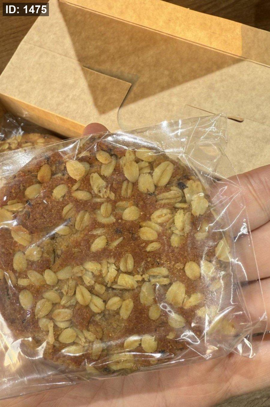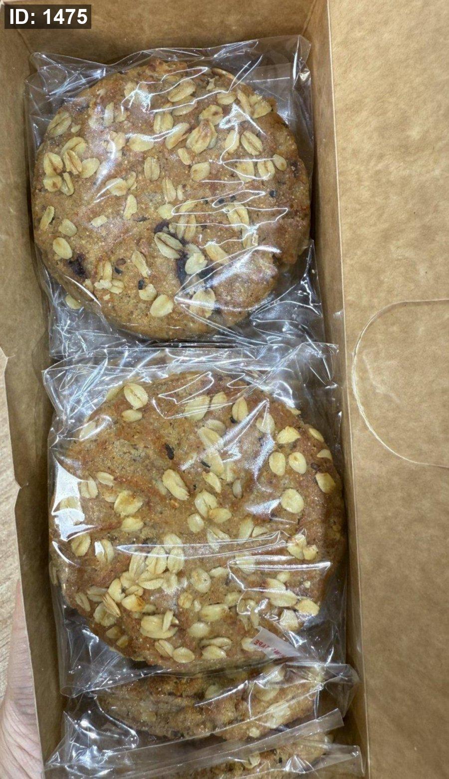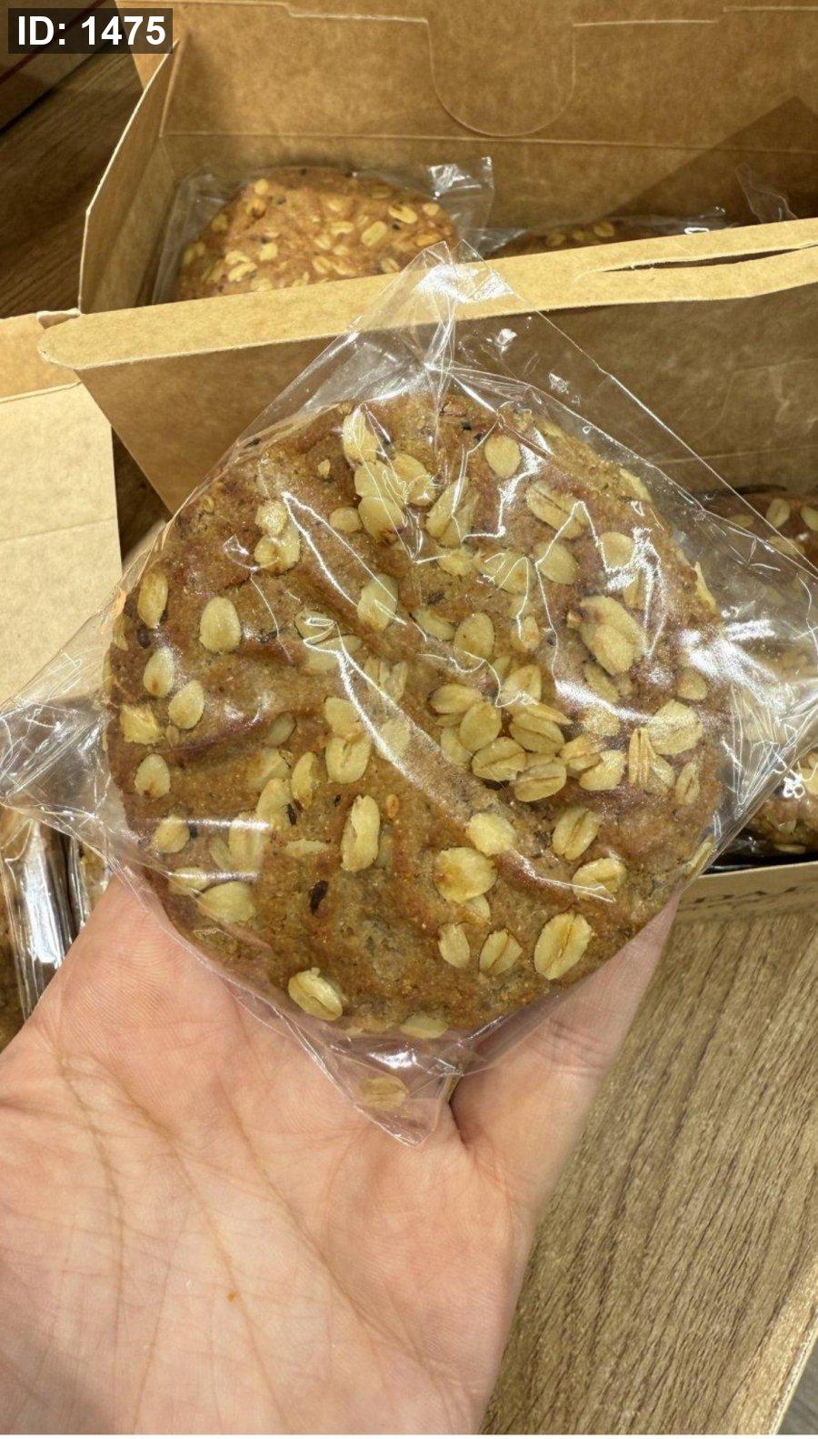 علبة بوكس من بسكويت الشوفان محشي تمر خالي من السكر وزنها 50 غرام فيها 12 حبة