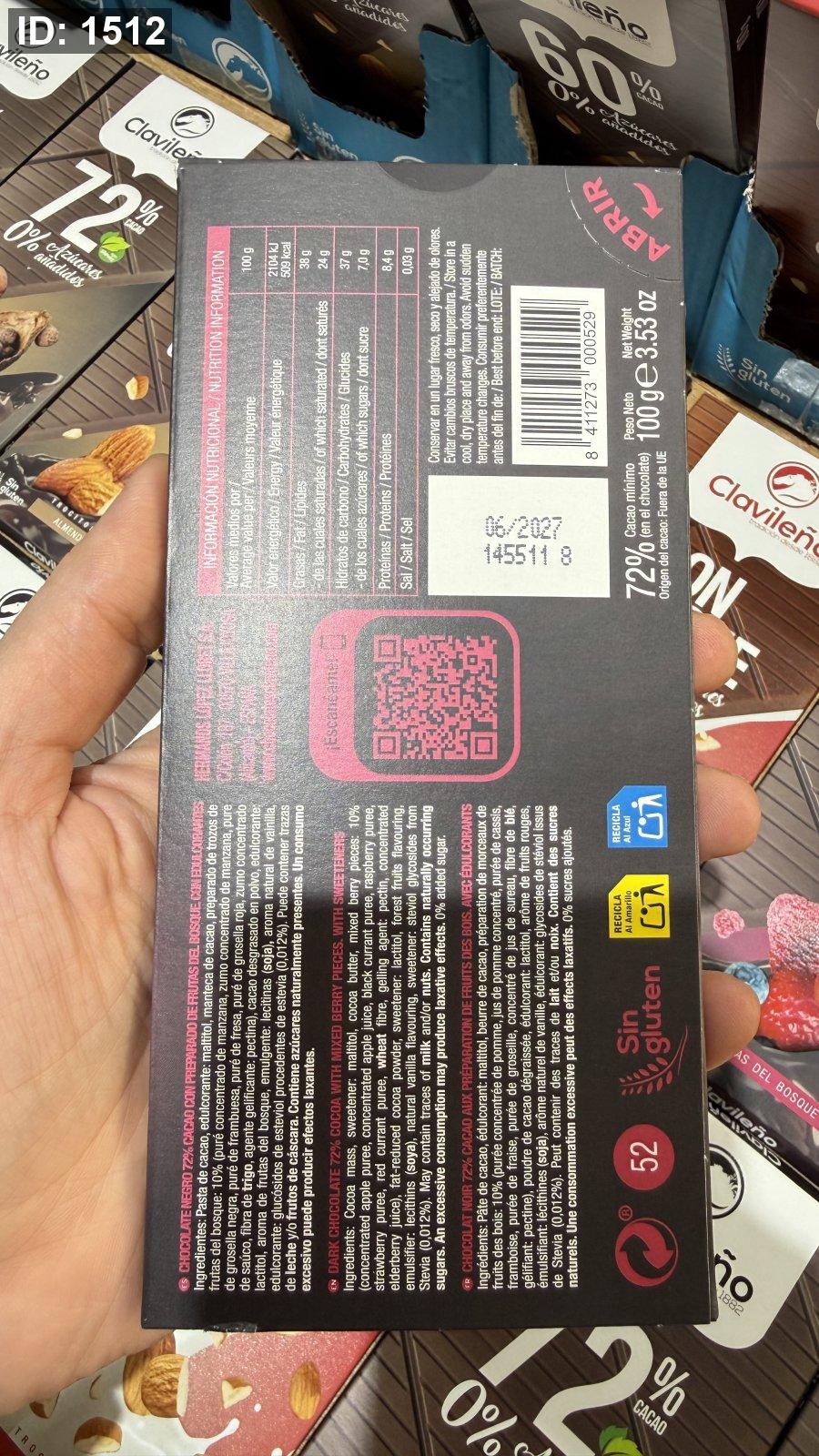 لوح شوكولاته اسباني مع التوتيات 72٪كاكاو وخالي من السكر والجلوتين وزنه 100 غرام 🍫
