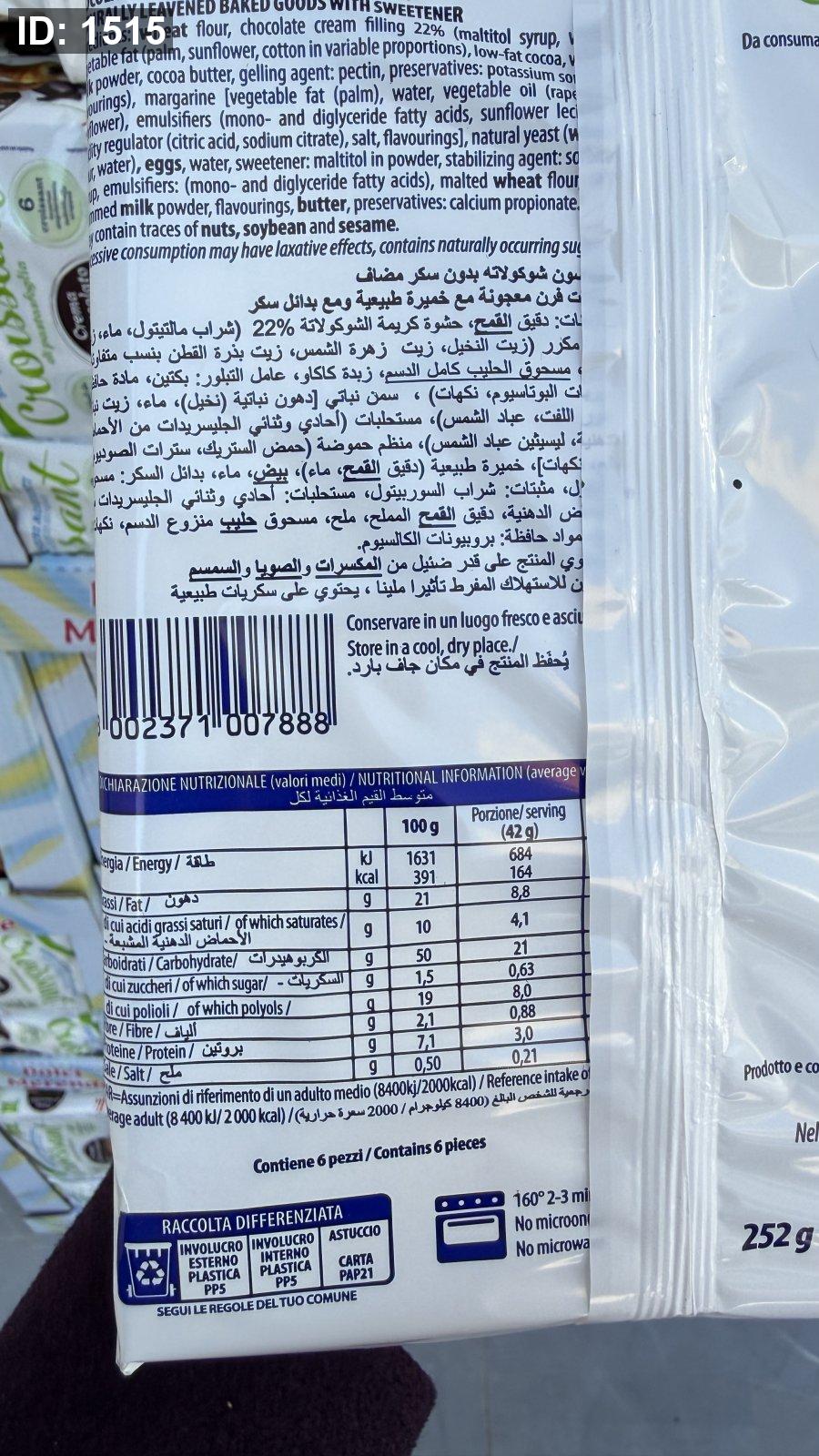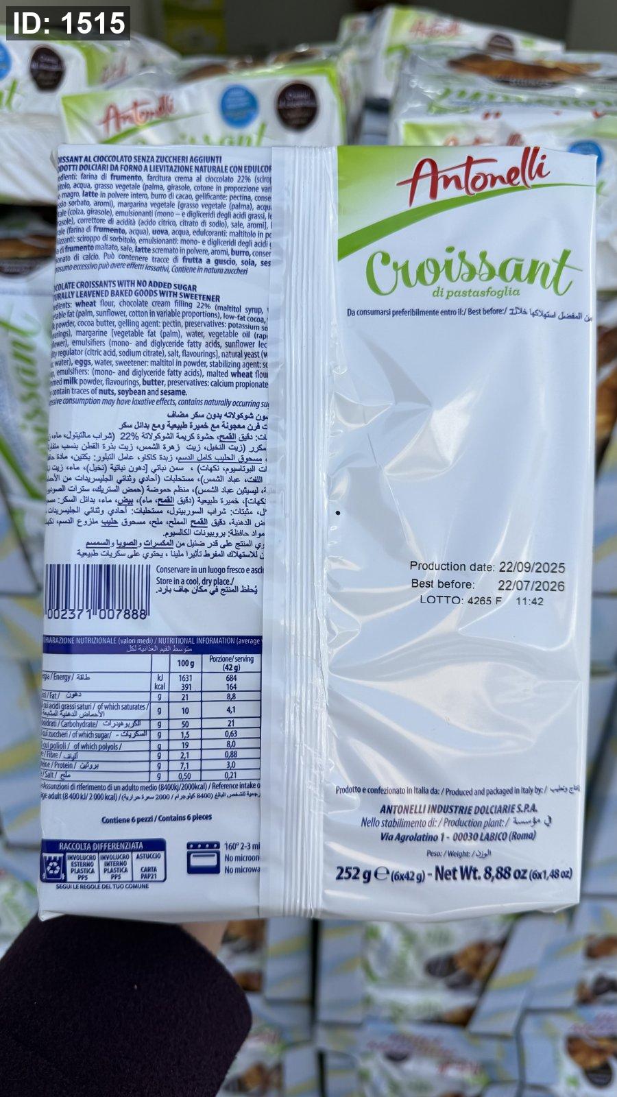 4 علب من الكرواسون ايطالي محشي شوكولاته خالي من السكر علبة كل علبة فيها 6 حبات