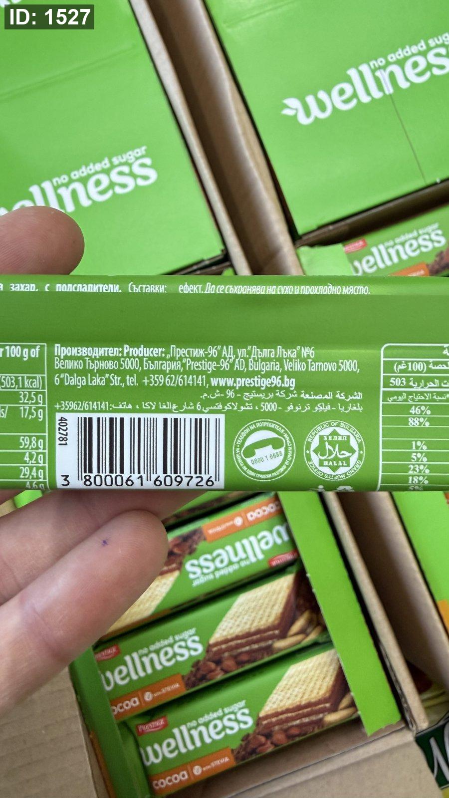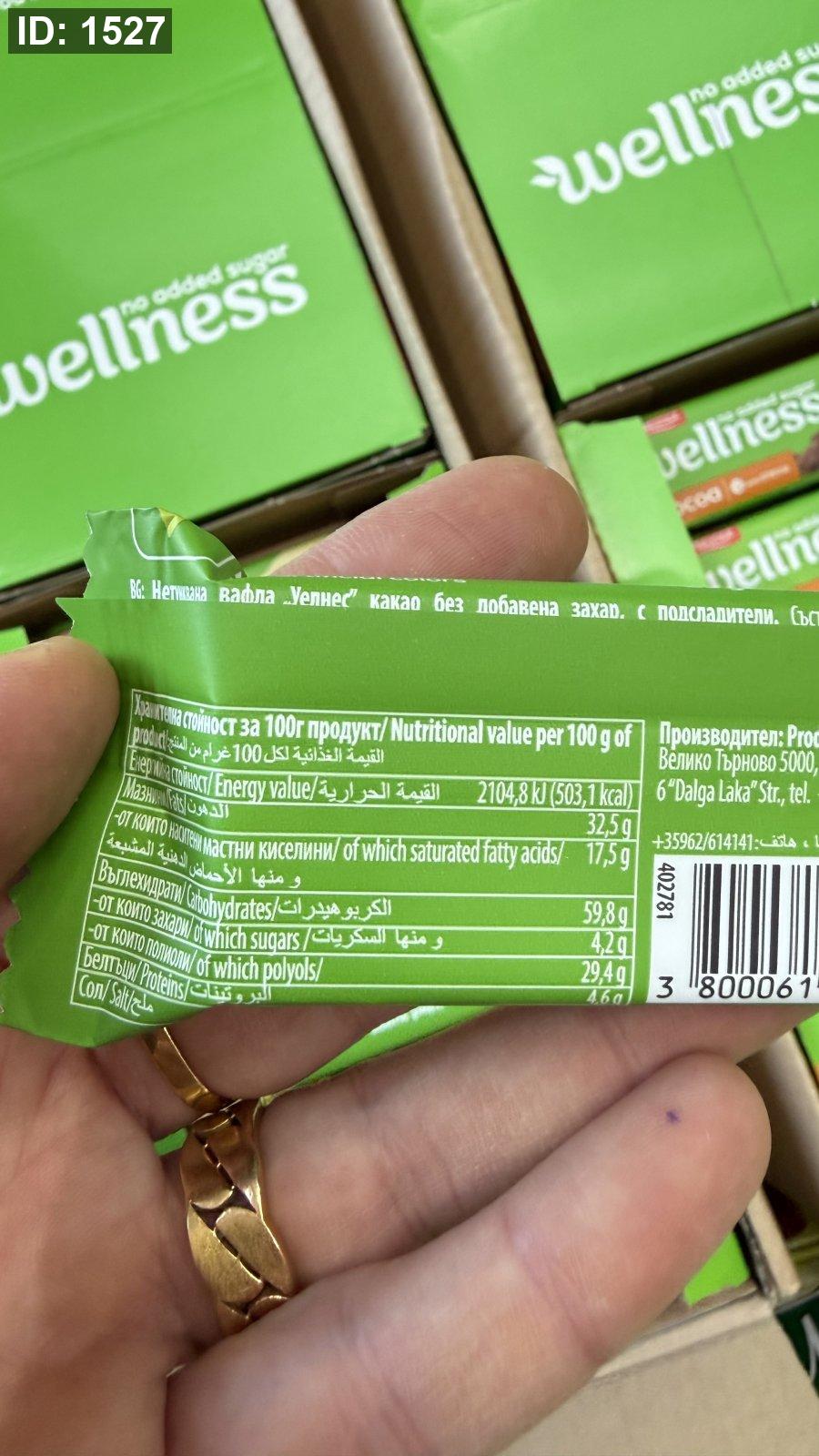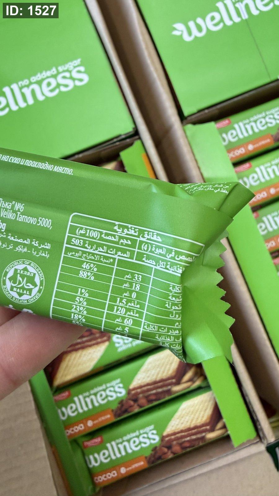 1حبة من ويفر (Wellness) بالكاكاو محشي شوكولاته بدون سكر 25غم