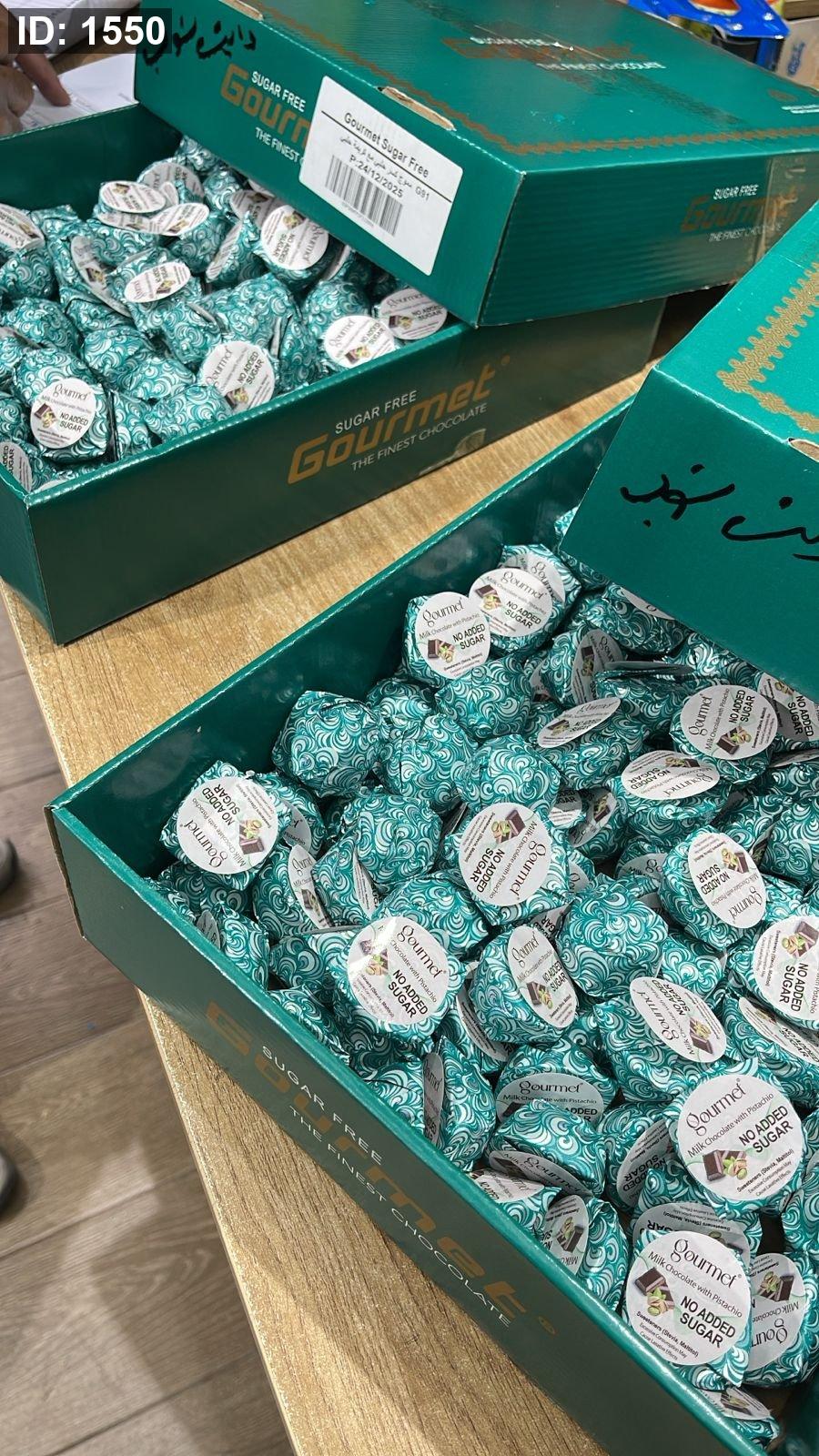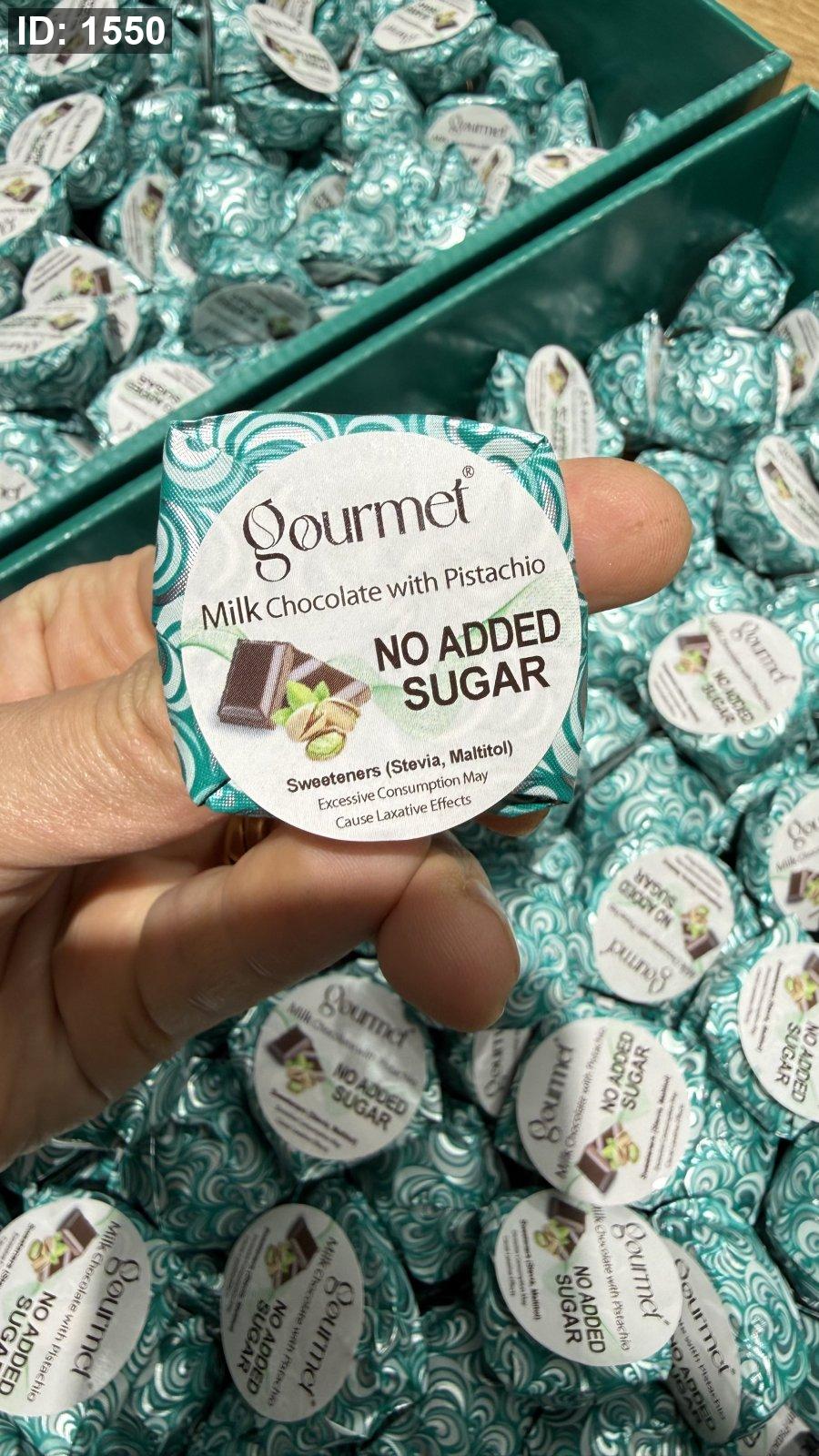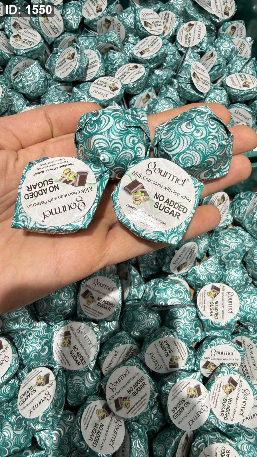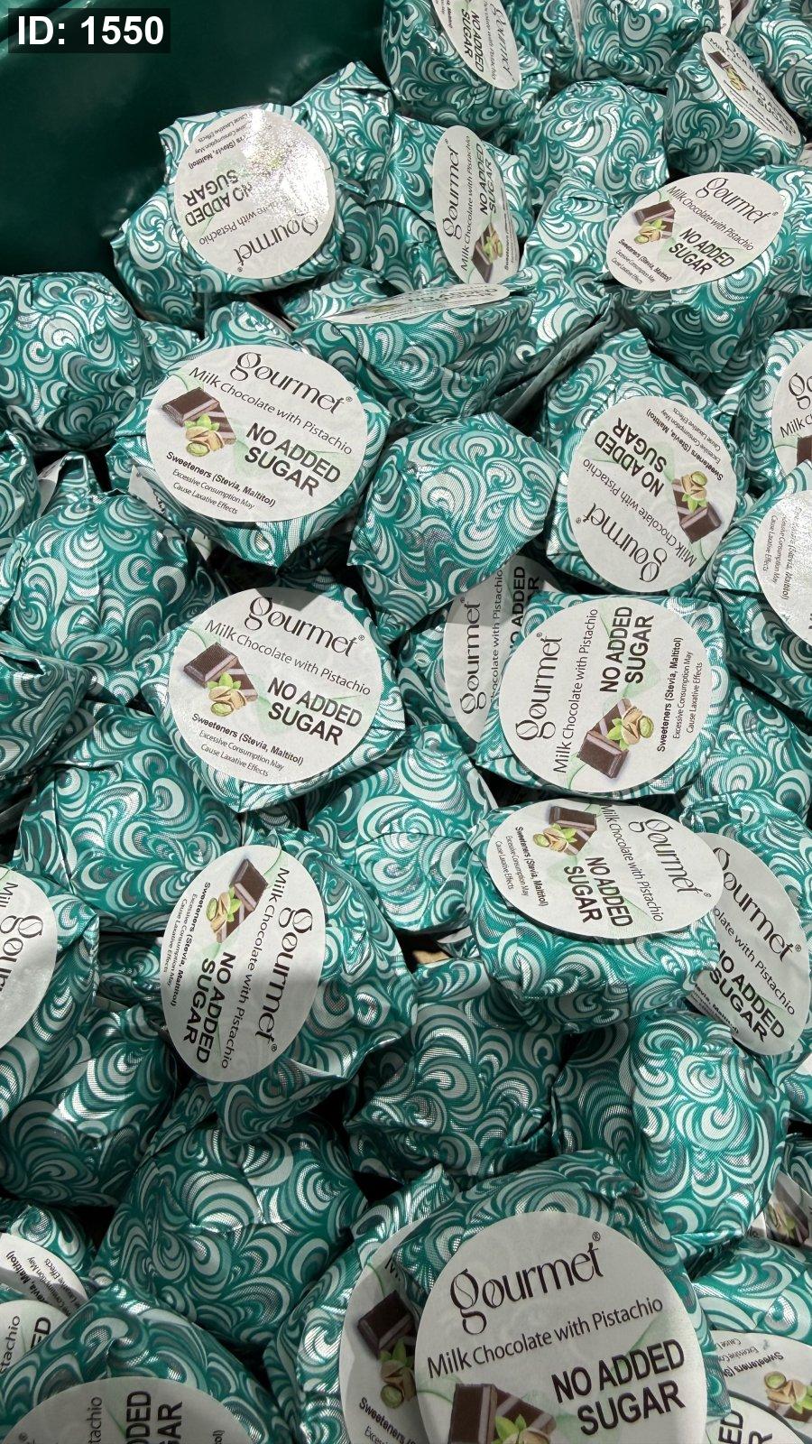 شوكولاته بلجيكية بالحليب وحشوة البستاشيو الفستق الحلبي بدون سكر