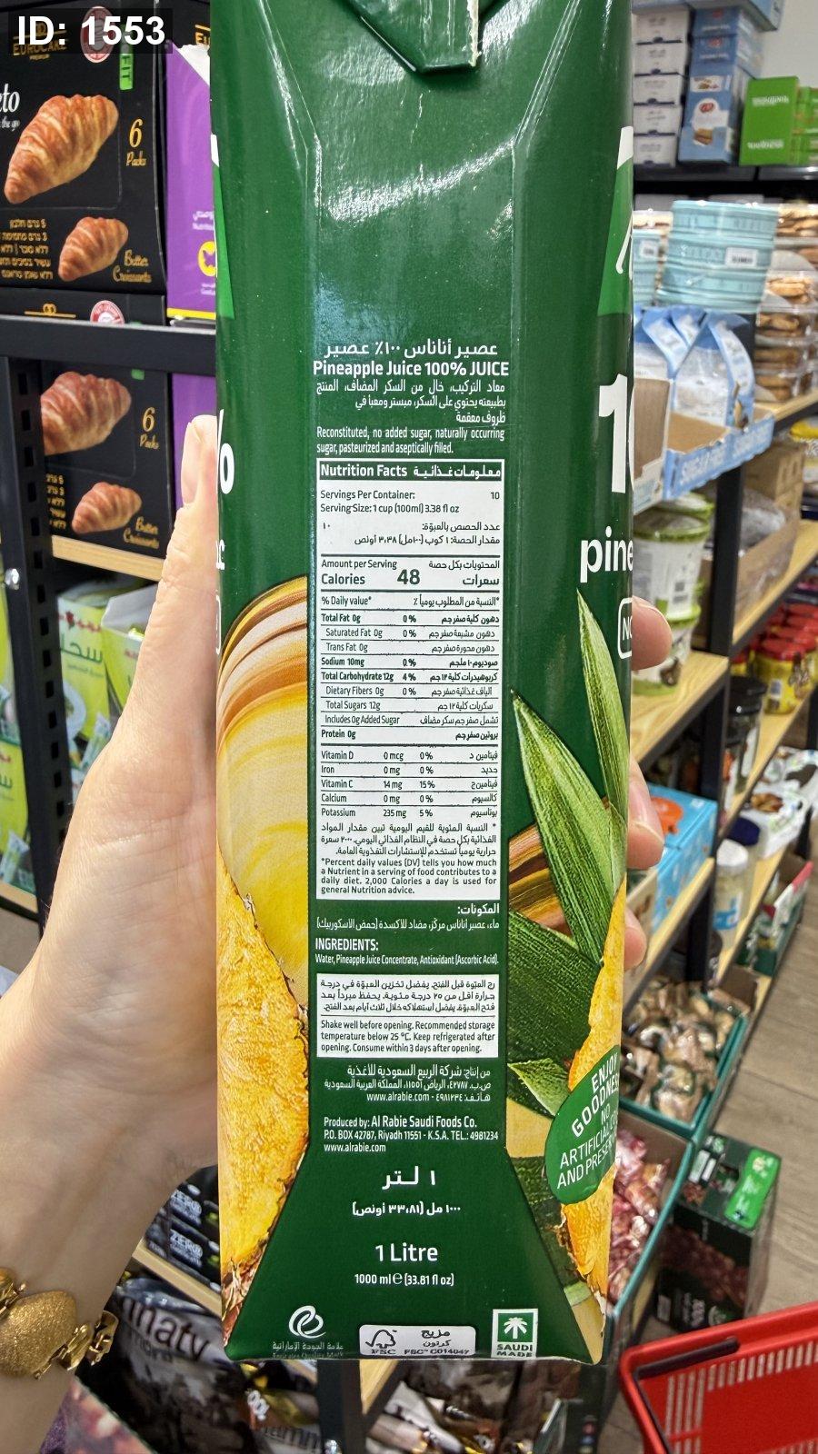 علبة الربيع عصير اناناس بدون سكر مضاف وزنها 1لتر