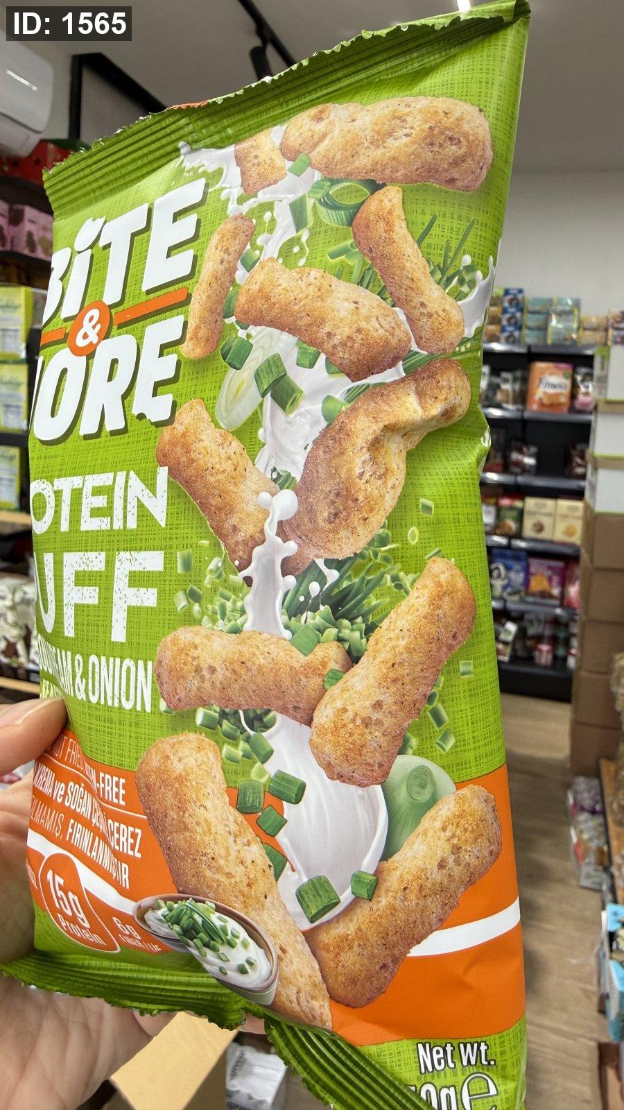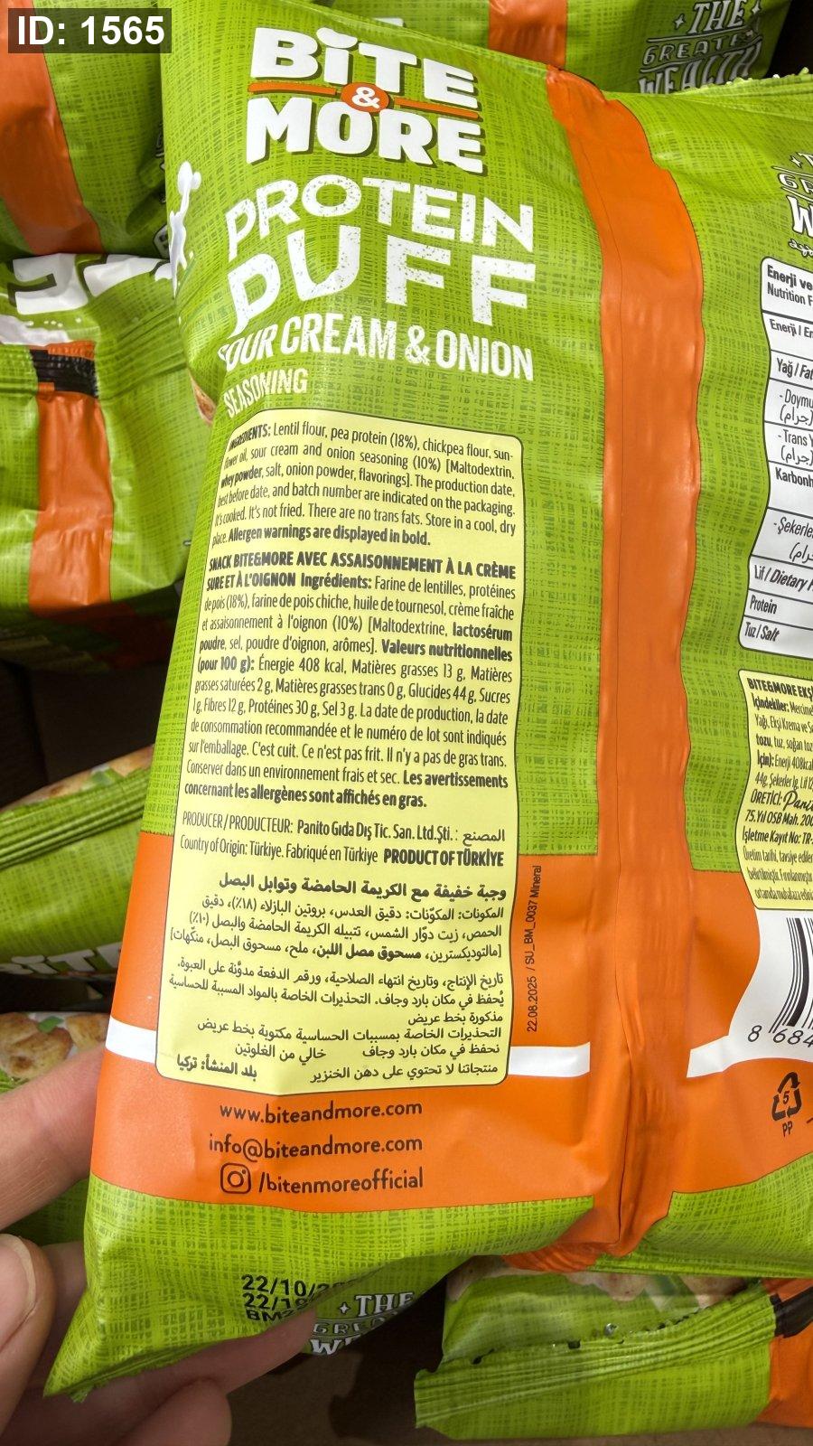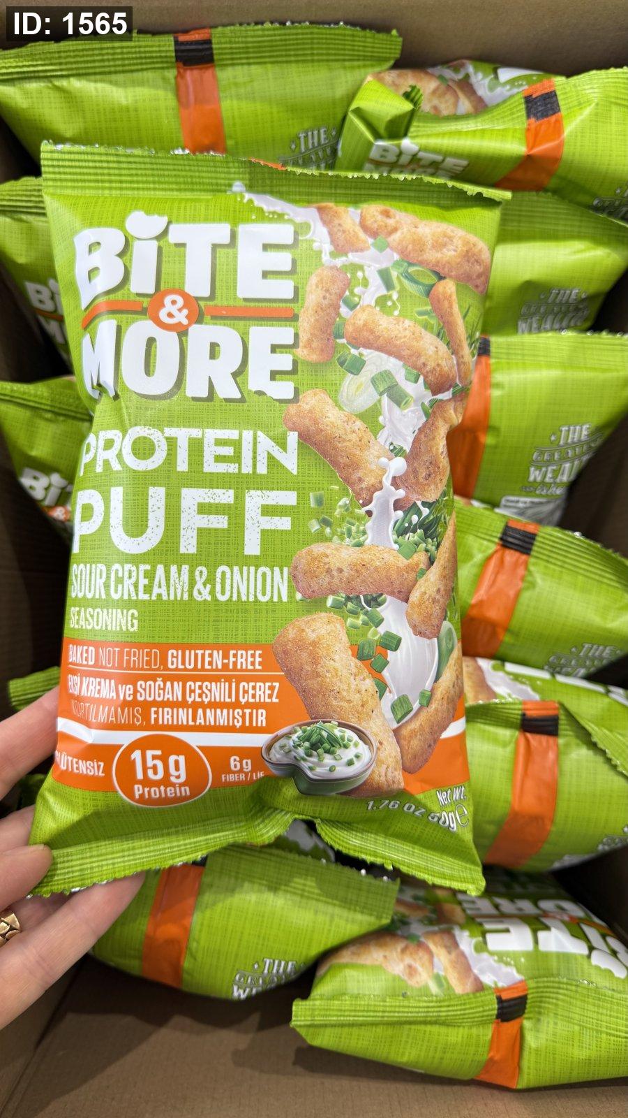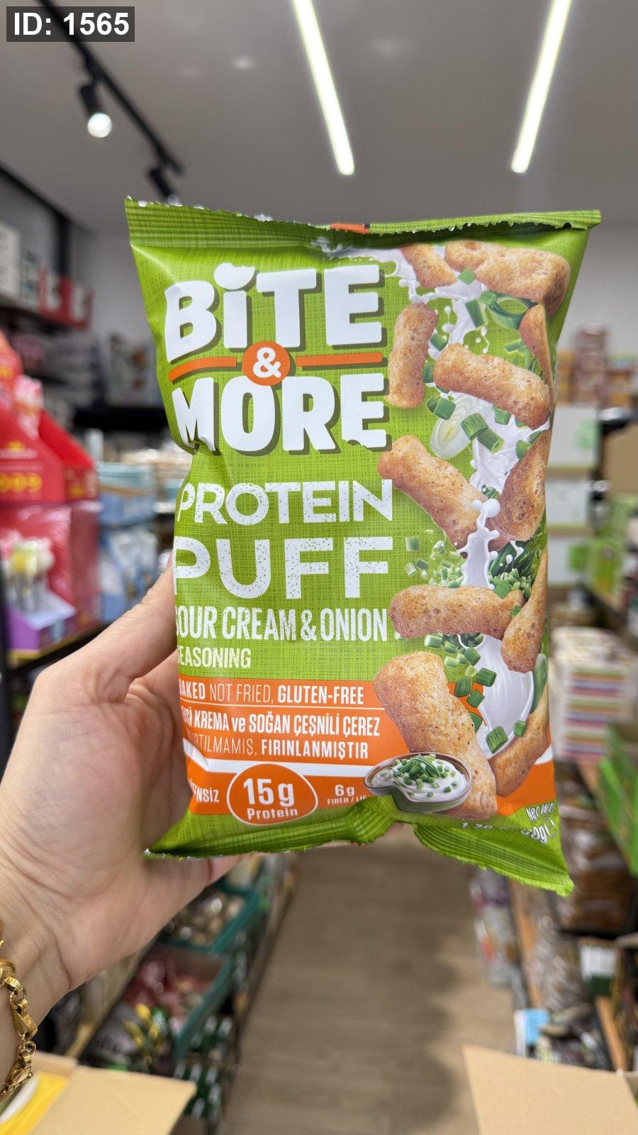 بمبا "Bite & More Protein Puff" بنكهة الكريمة الحامضة والبصل.