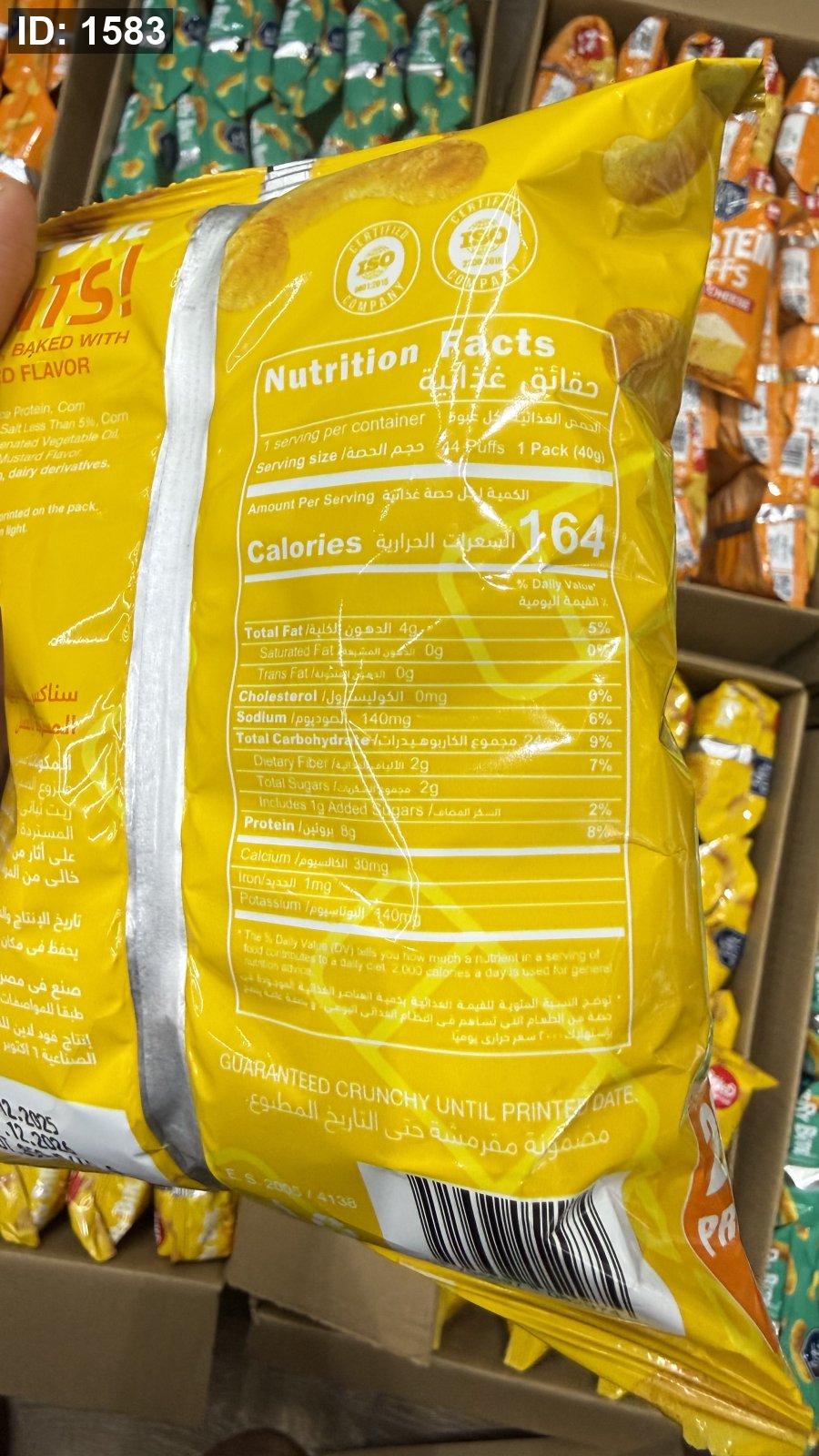 المواصفات: مخبوزة وليست مقلية، خالية من السكر المضاف، وتحتوي على 20% بروتين.
