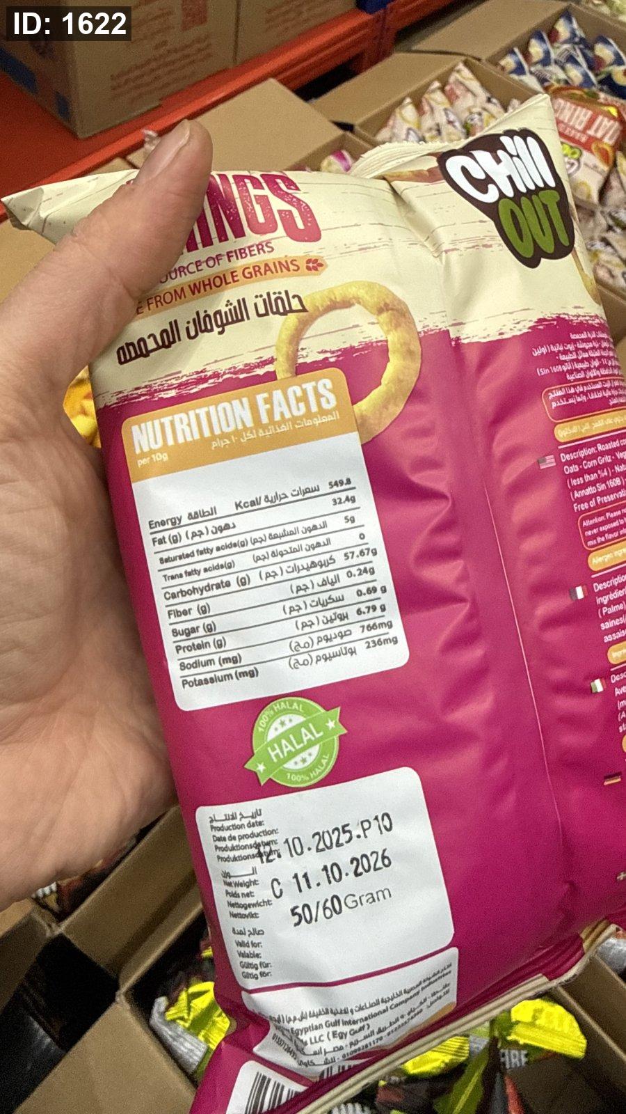 شيبس حلقات الشوفان المخبوزة بنكهة الجبنة المتبلة من "تشيل آوت" (Chill Out) وزنه 60 غرام