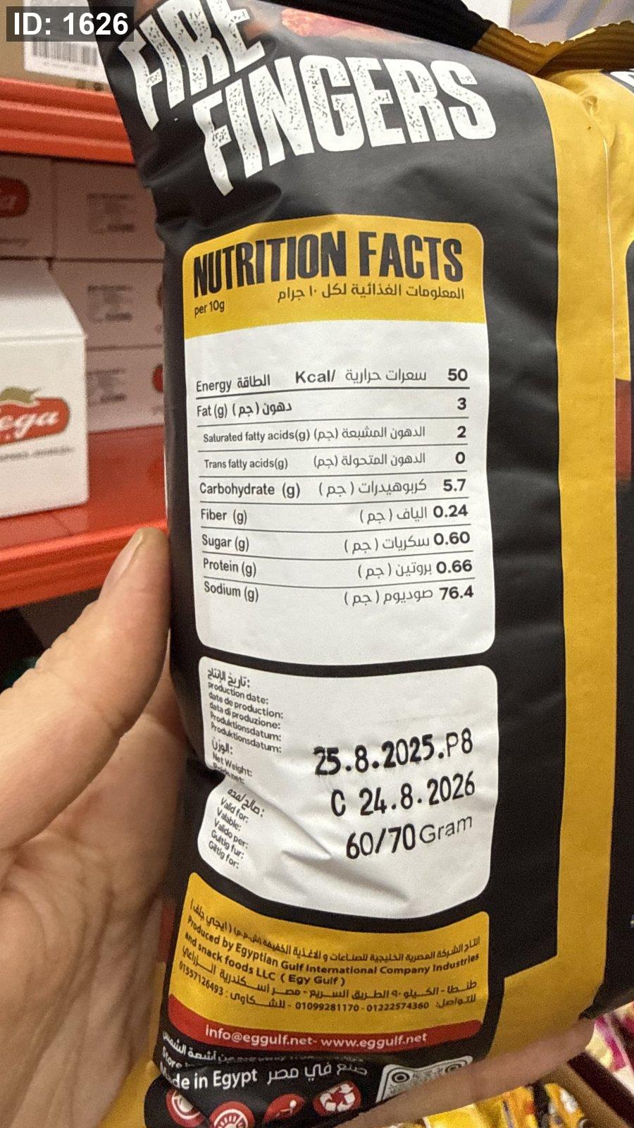 شيبس مقرمشات "فاير فينجرز" (Fire Fingers) من شيل آوت (Chill Out) بنكهة العسل الحار وزنه 60 غرام