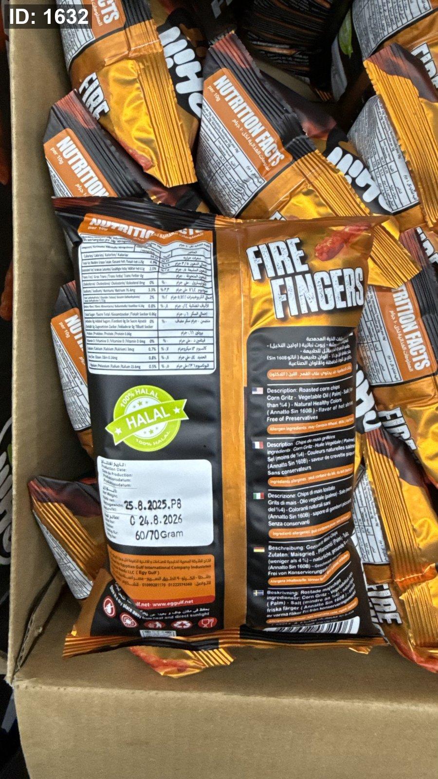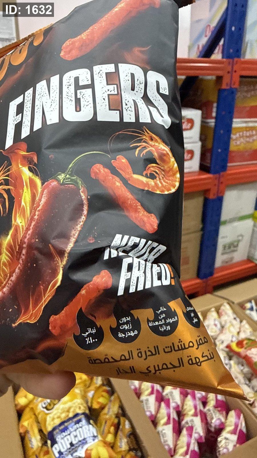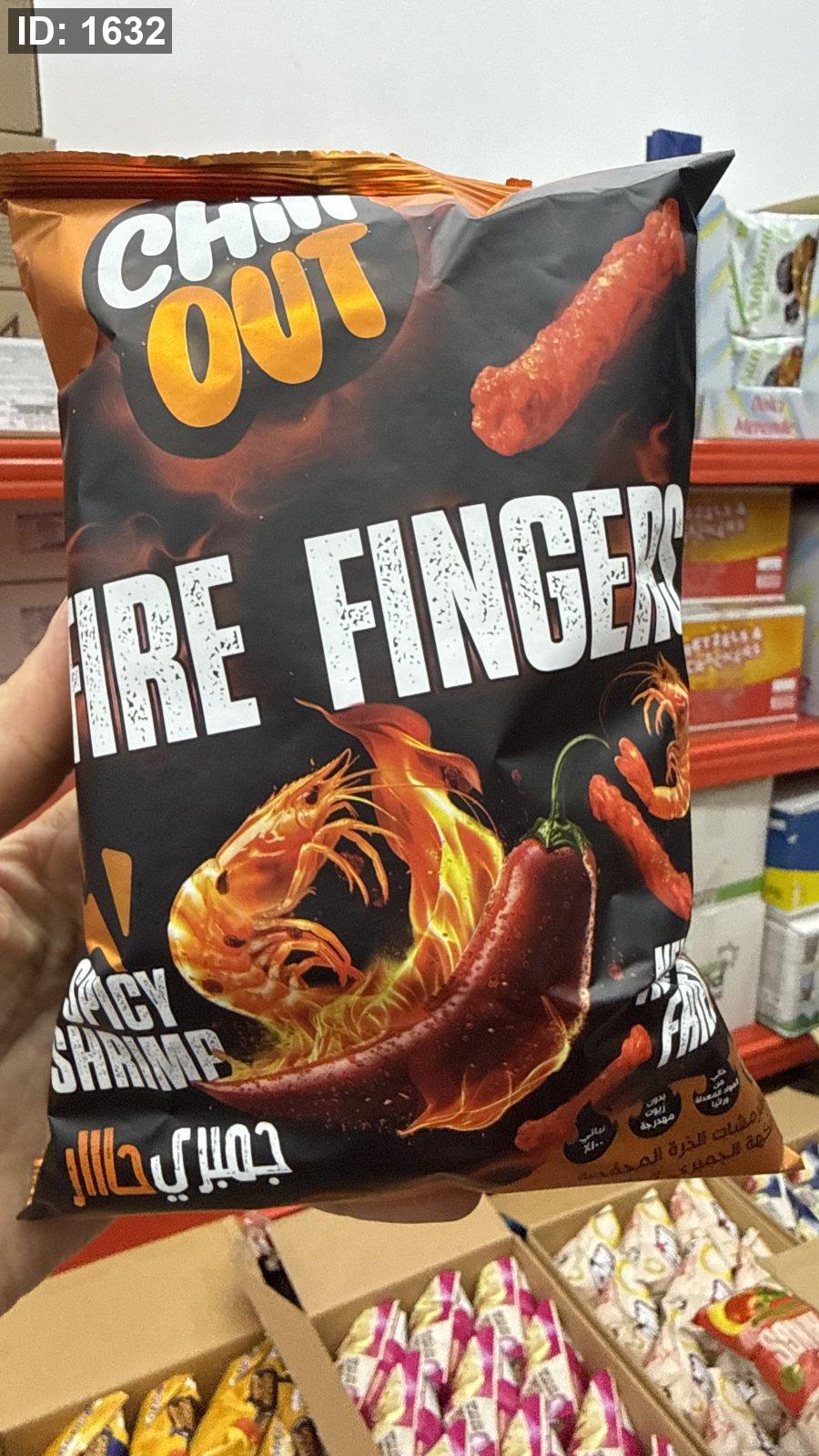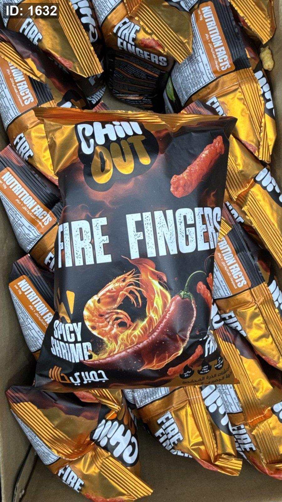 شيبس مقرمشات "فاير فينجرز" (Fire Fingers) من شيل آوت (Chill Out) بنكهة جمبري حار وزنه 60 غرام