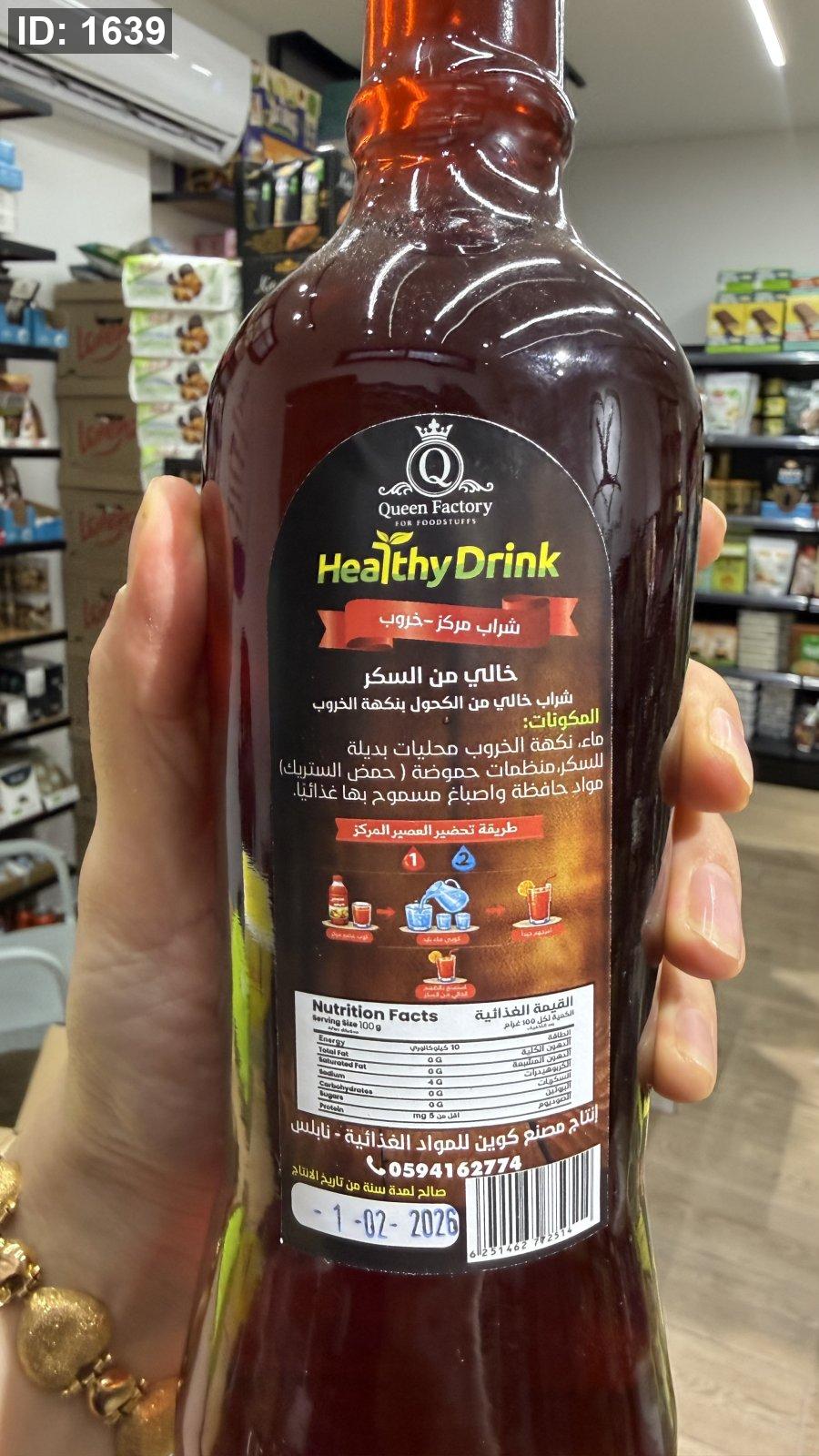 شراب مركز بطعم الخروب خالي من السكر وخالي من السعرات الحرارية وزنها 1 لتر