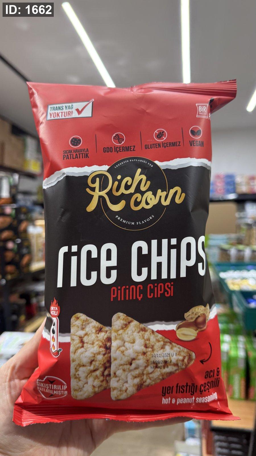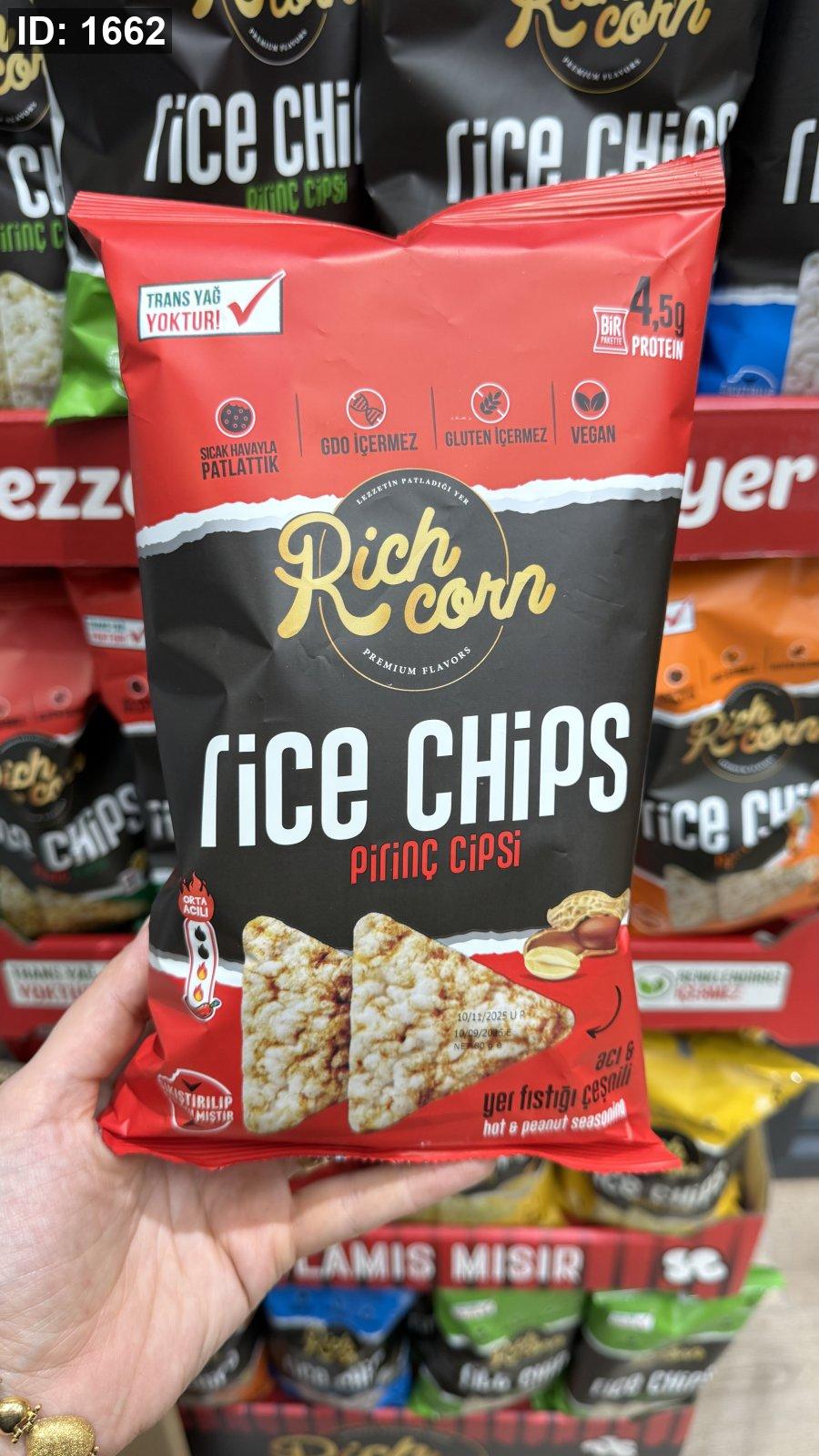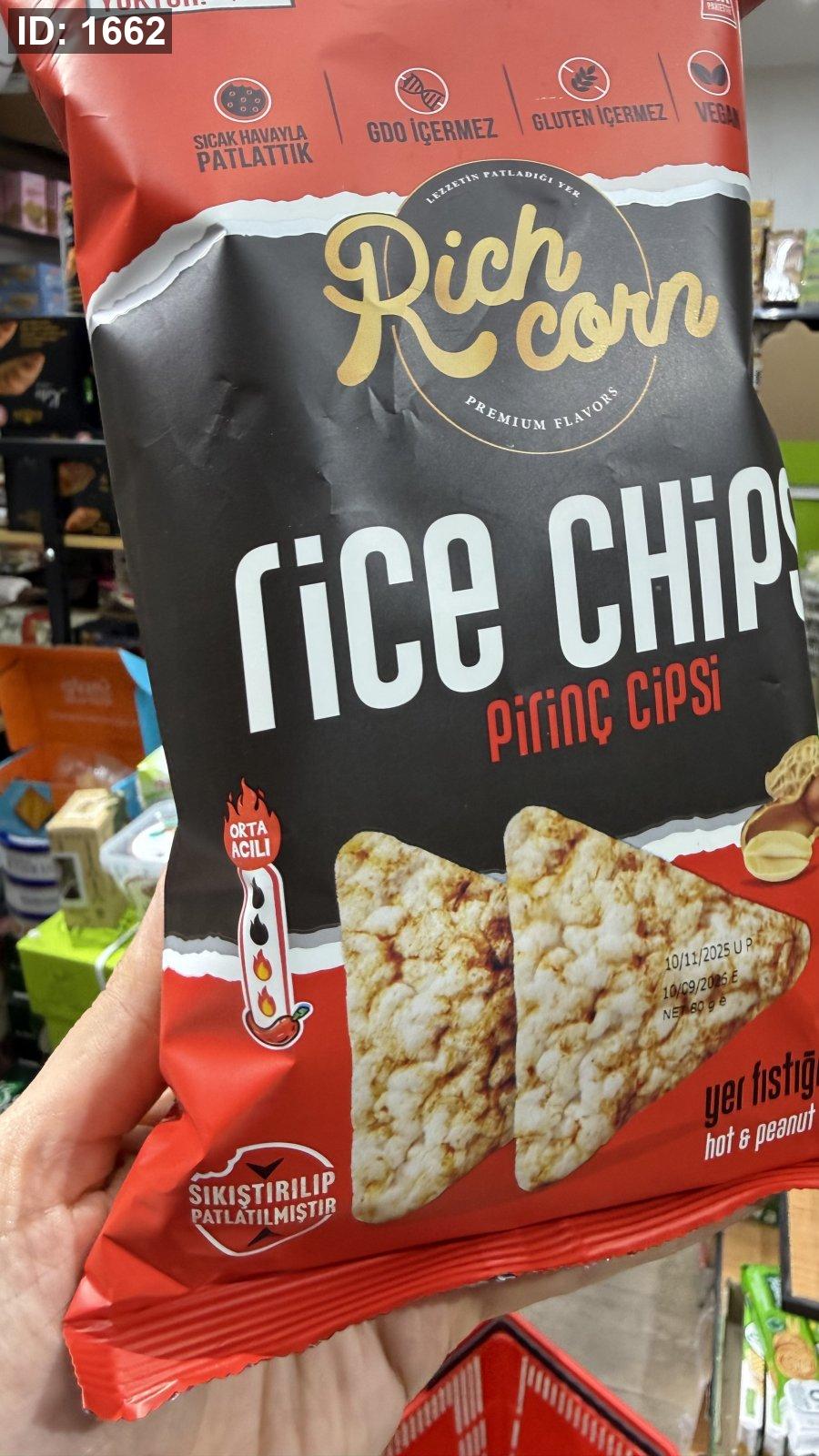 أضف لمسة حارة ومميزة إلى تجربة تناولك للوجبات الخفيفة مع رقائق أرز ريتشكورن بنكهة الفول السوداني الحارة.