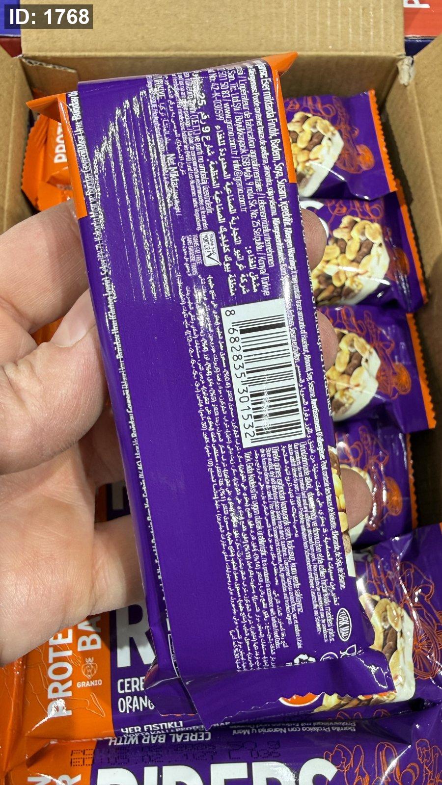 عالي البروتين فيه 10 غرام بروتين ✨فيه رقائق الحبوب، الفول السوداني، ونكهة البرتقال✨