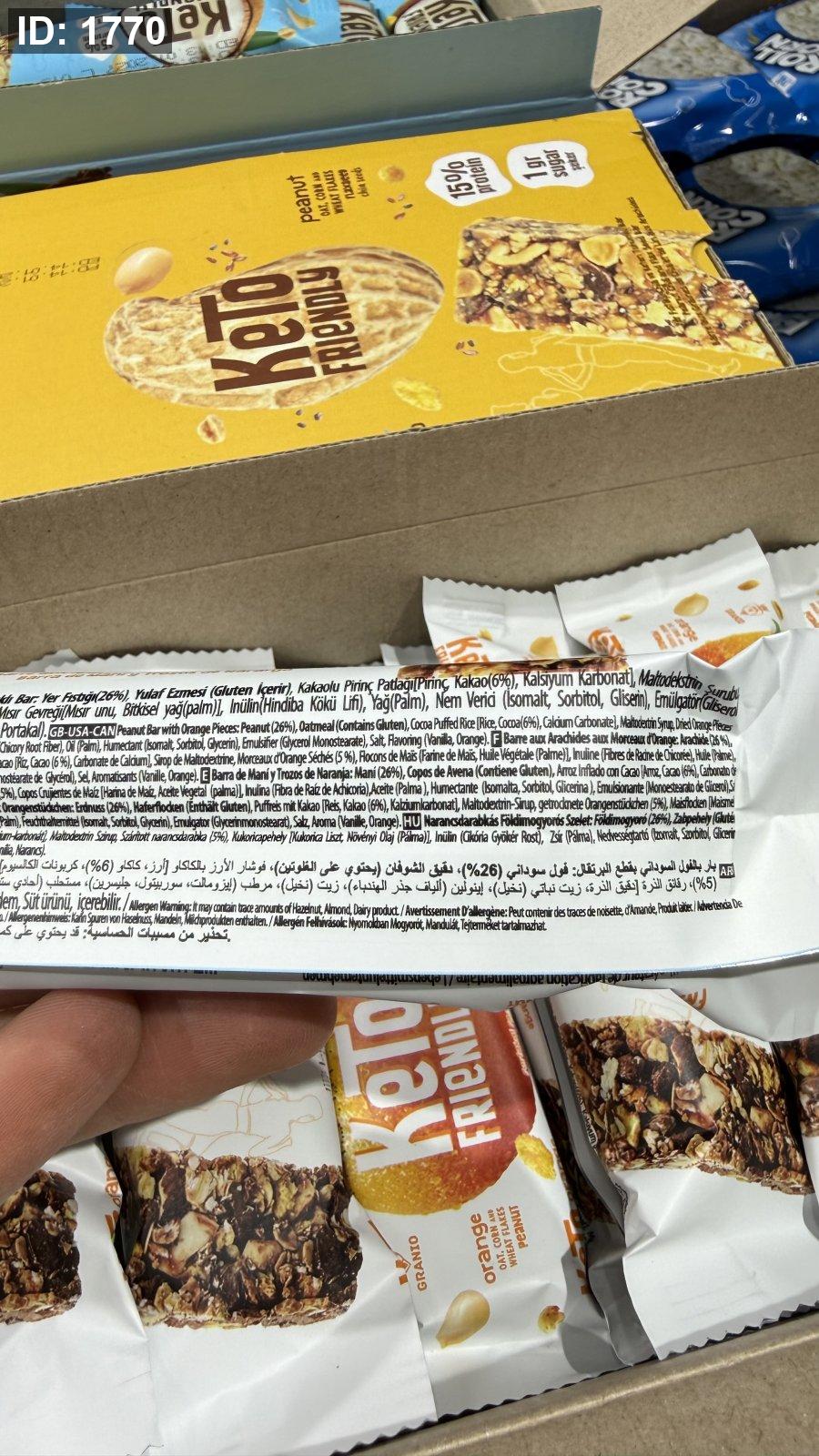 عالي البروتين فيه 15% بروتين ✨ بدون سكر ✨ منخفض الكربوهيدرات ✨ يحتوي على الفول السوداني وقطع البرتقال، مع نسبة عالية من المكسرات تصل إلى 60%