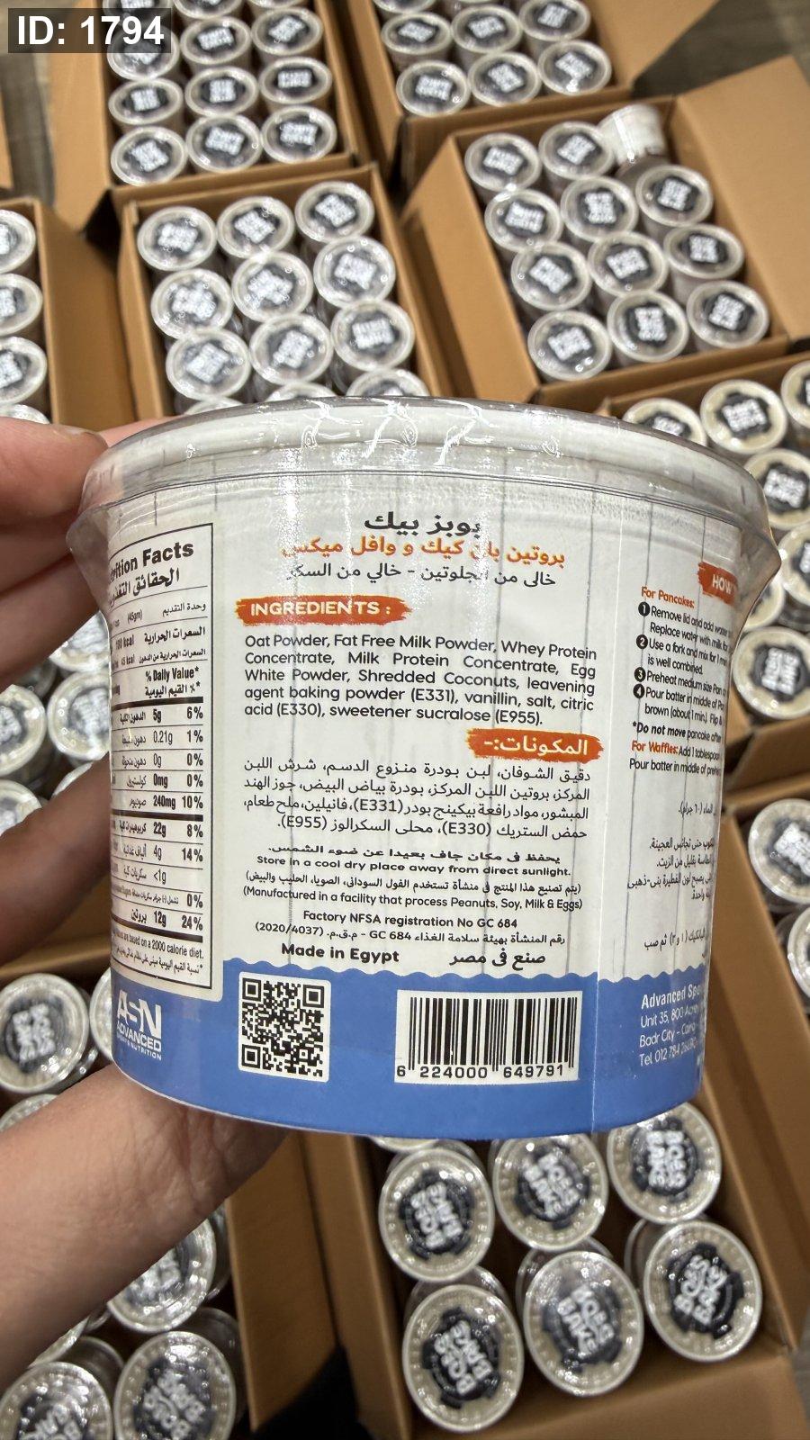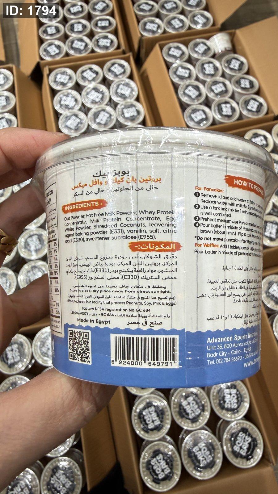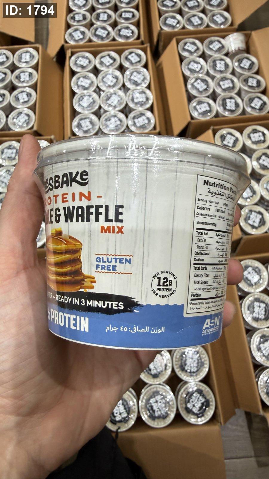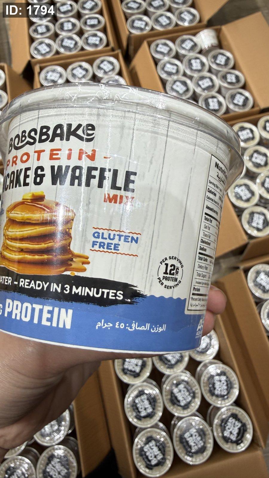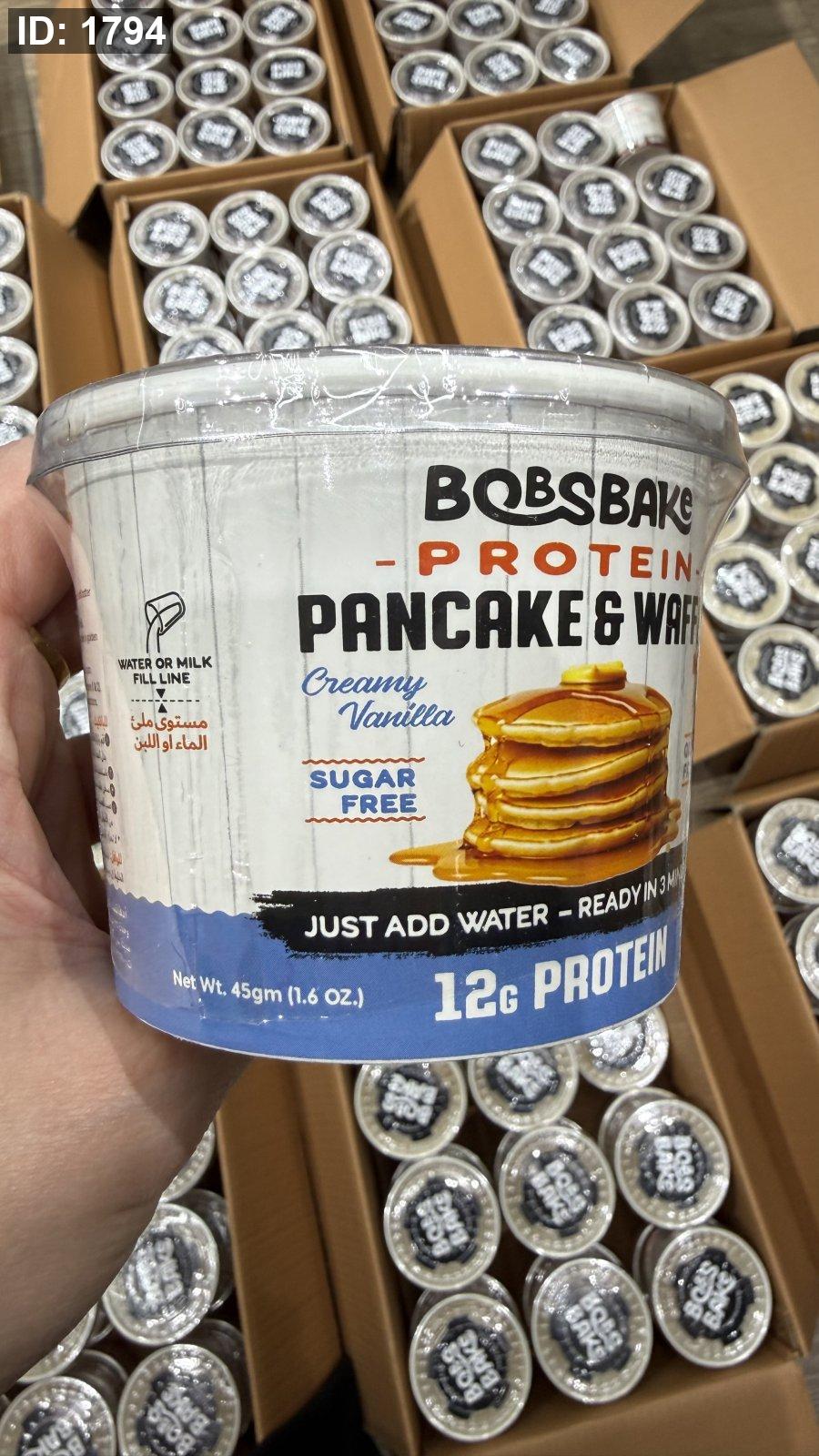 بروتين بان كيك ووافل بوبز بيك يضاف إليه الماء فقط وخالي من السكر وخالي من الجلوتين بنكهة الفانيليا الكريمية مكون من 12 جم بروتين و180 سعر حراري