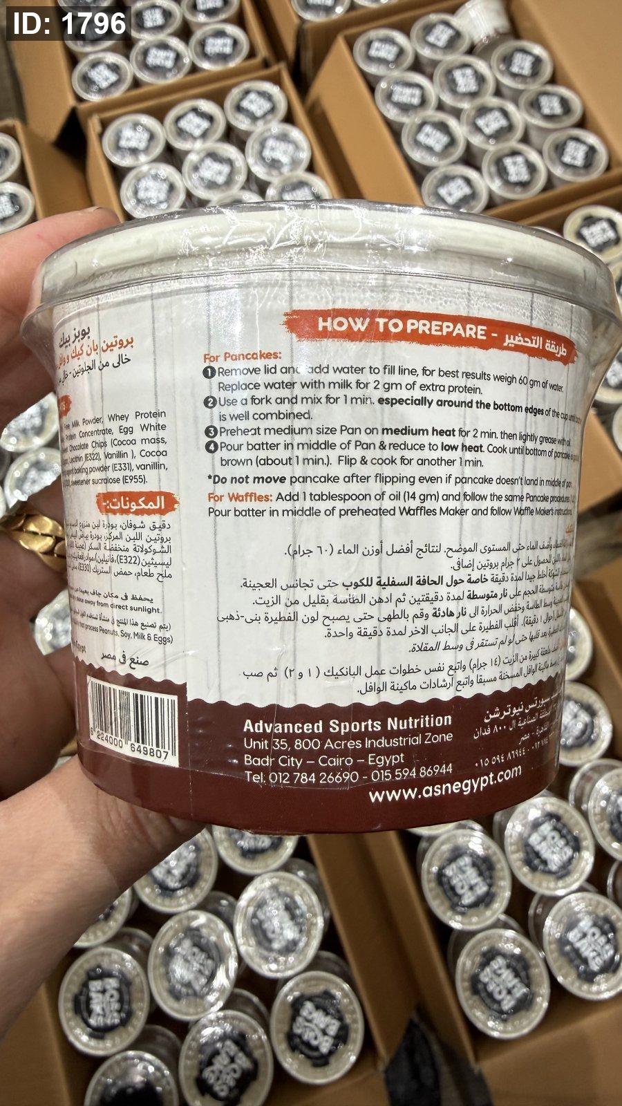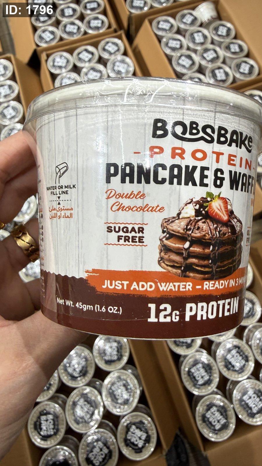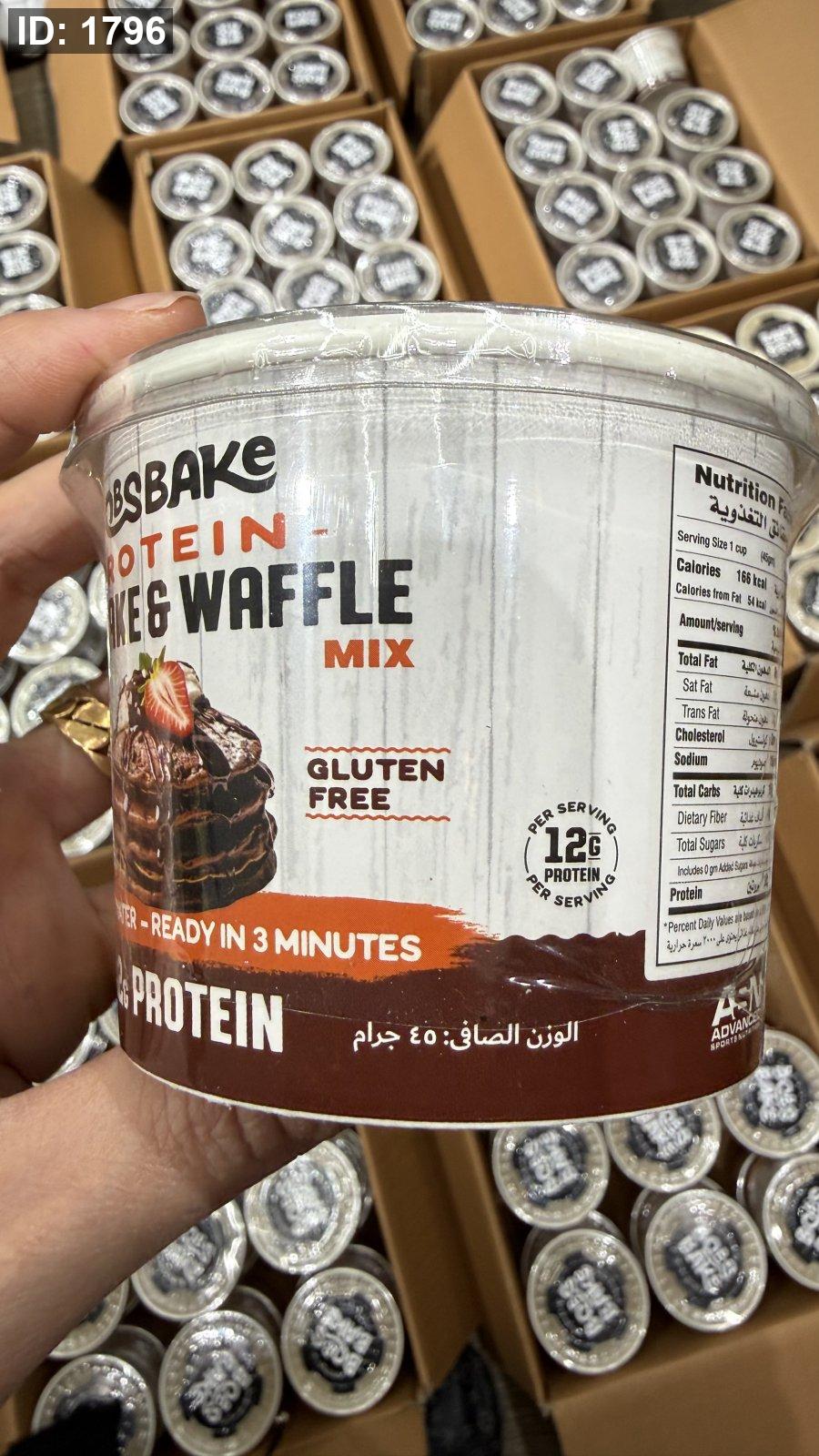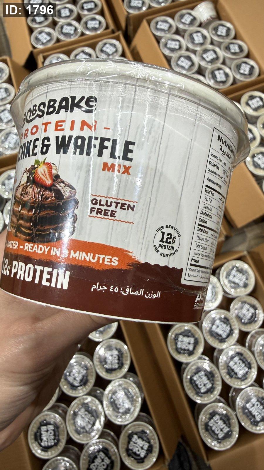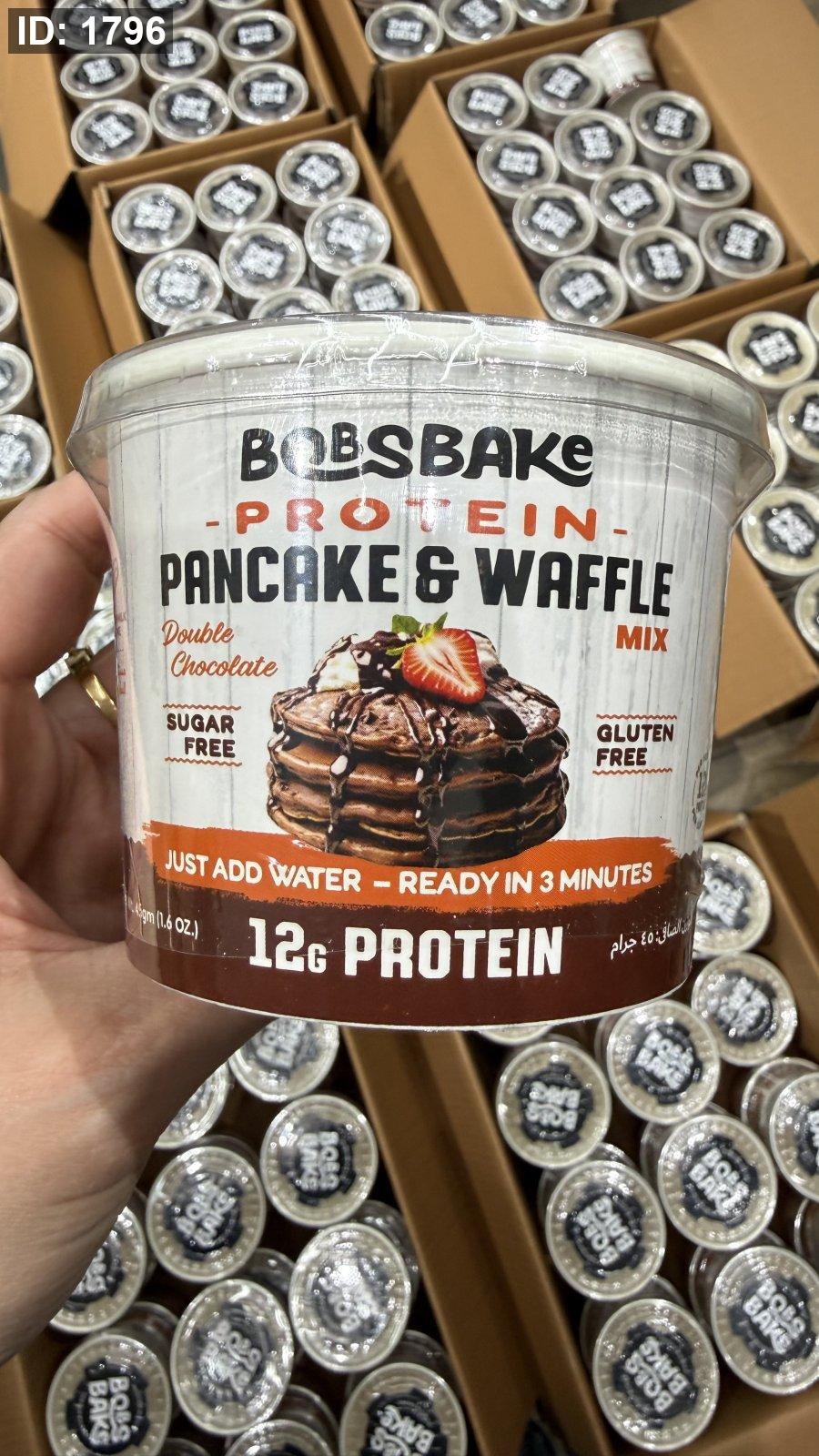 بروتين بان كيك ووافل بوبز بيك يضاف إليه الماء فقط وخالي من السكر وخالي من الجلوتين بنكهة الفانيليا الكريمية مكون من 12 جم بروتين و 166 سعر حراري