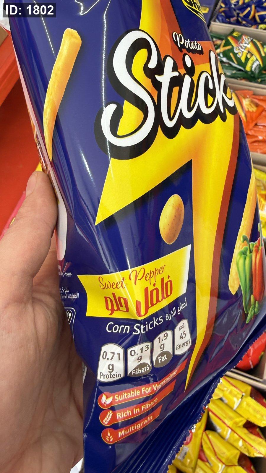 شيبس ستيكس طعم فلفل حلو ، مقرمشة، ولذيذة ✨ مخبوز بالفرن مش مقلي ✨ غني بالالياف ✨ نباتي ✨ الحصة الواحدة فيها 45 سعر حراري فقط ✨عيدان الذرة والبطاطا وجبة خفيفة مثالية