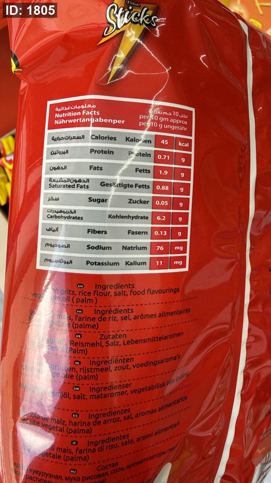 شيبس ستيكس عيدان الذرة والبطاطا بطعم الطماطم وزنه 70 غرام