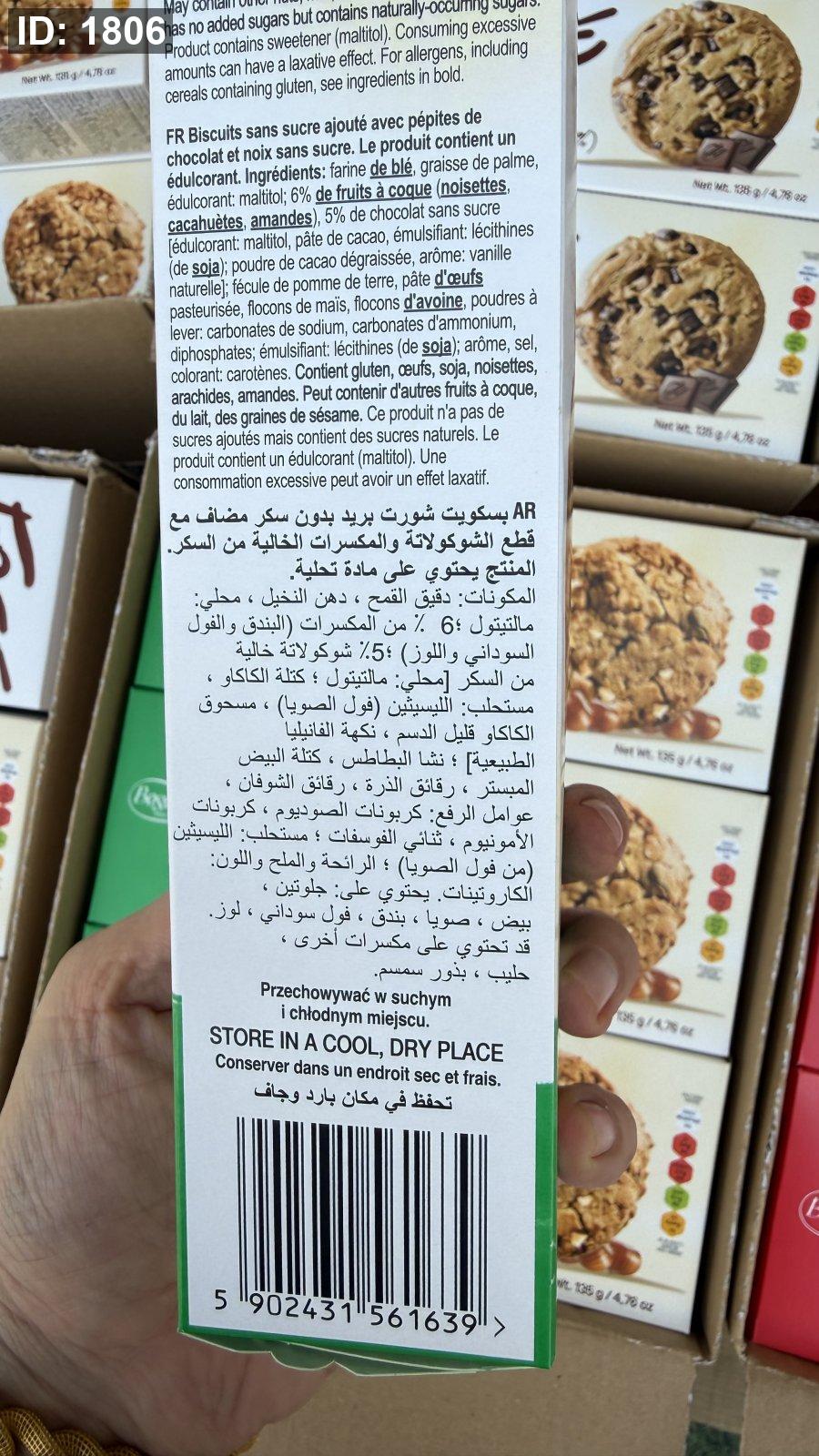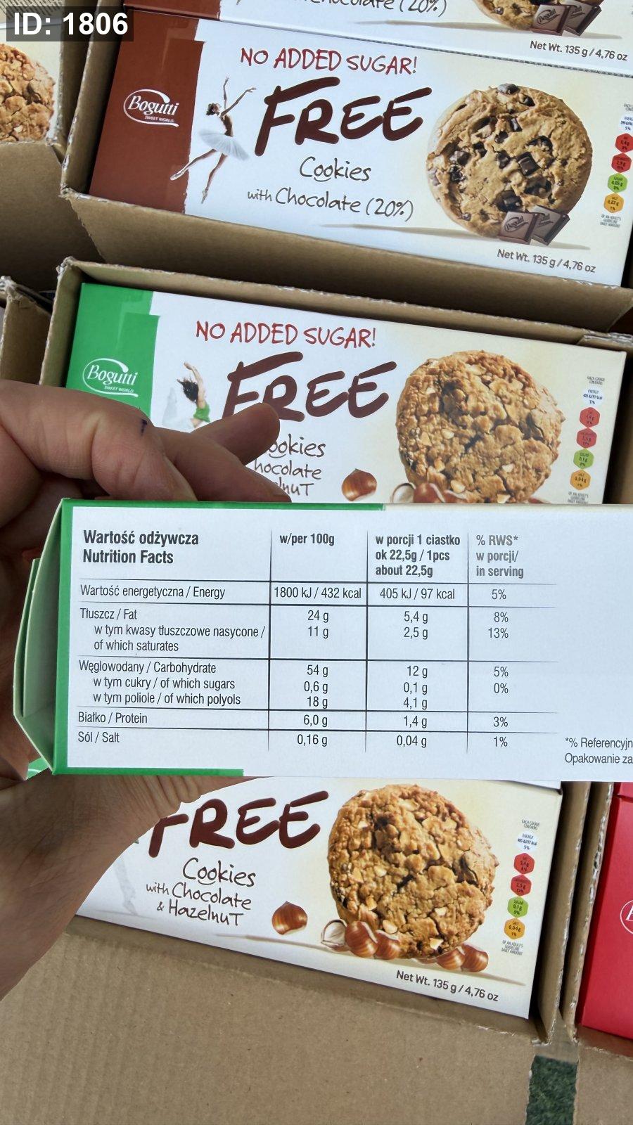 كوكيز بولندي مع حبيبات الشوكولاتة والبندق خالي من السكر وزنها 135 غرام
