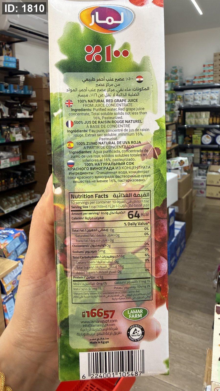 عصير العنب الاحمر طبيعي 100% خالي من السكر وزنه 1 لتر