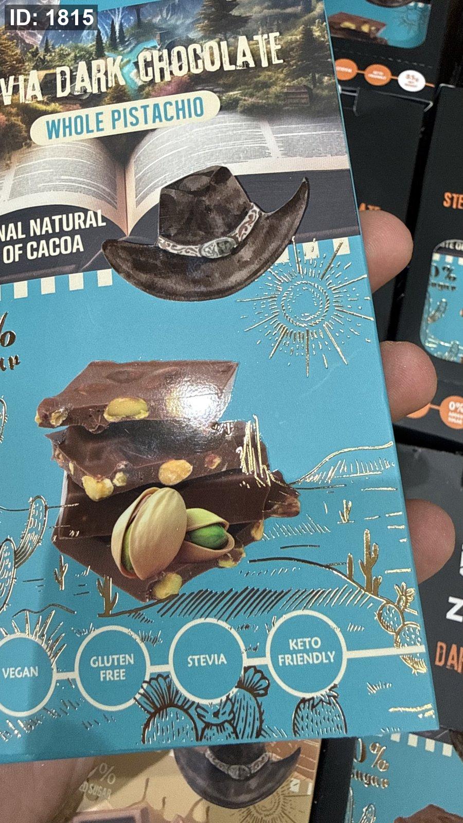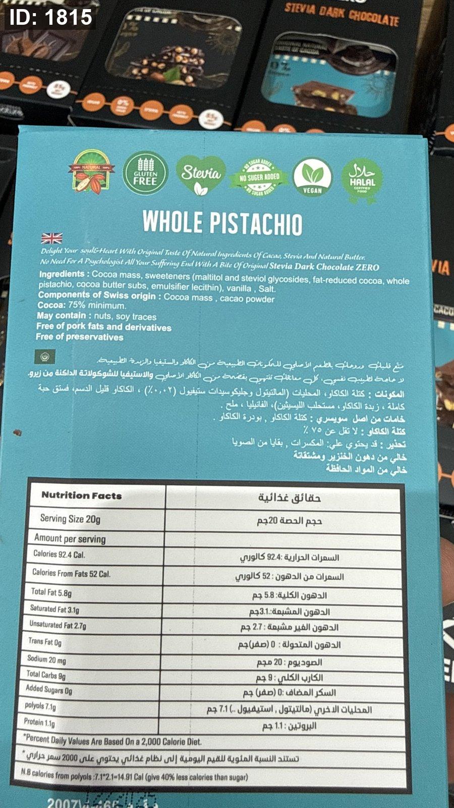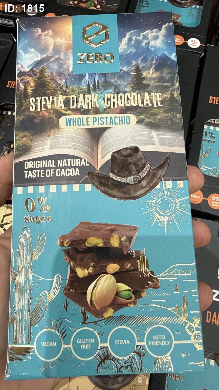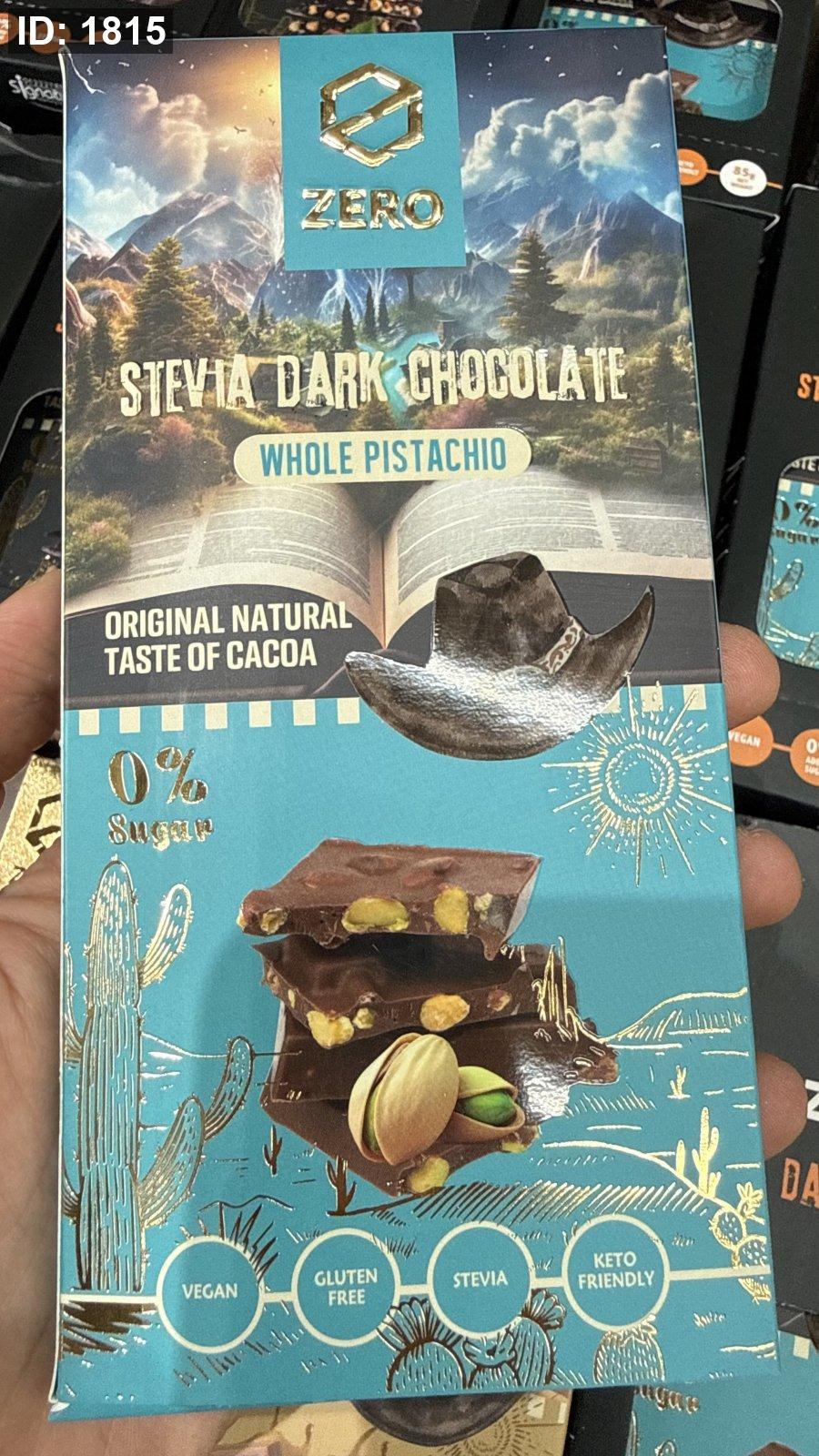 لوح شوكولاتة زيرو zero دارك والفستق الحلبي بستاشيو خالية من السكر والجلوتين وزنها 85 غرام