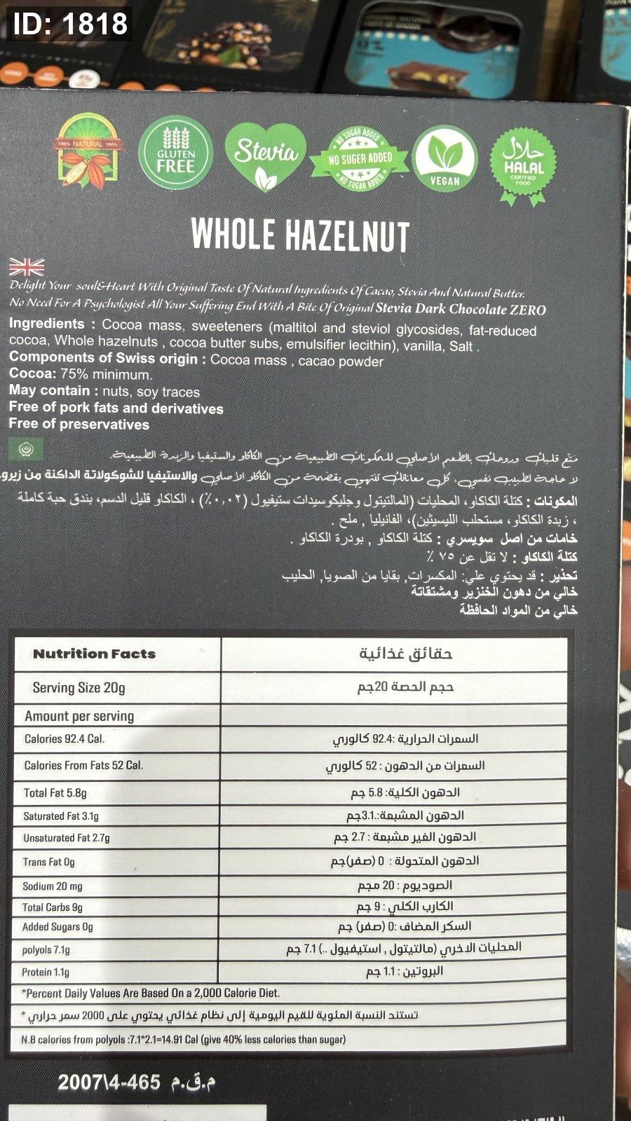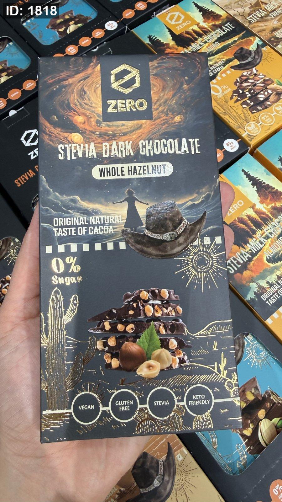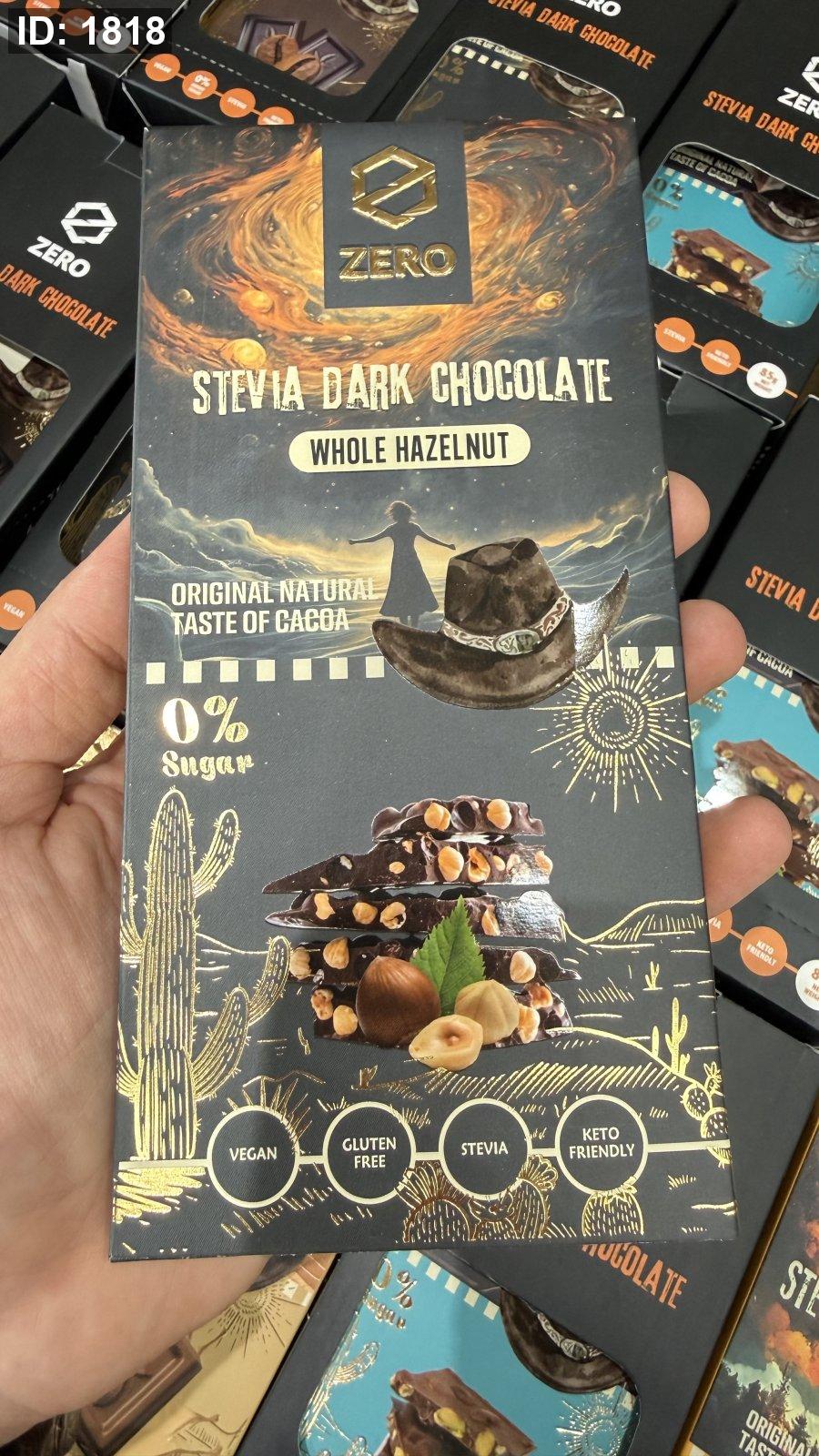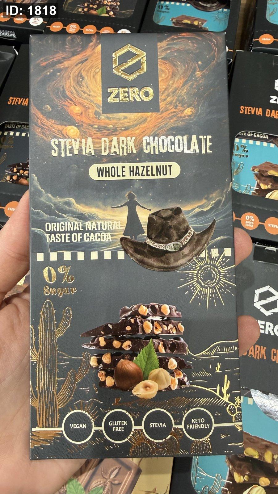لوح شوكولاتة زيرو zero دارك والبندق خالية من السكر والجلوتين وزنها 85 غرام