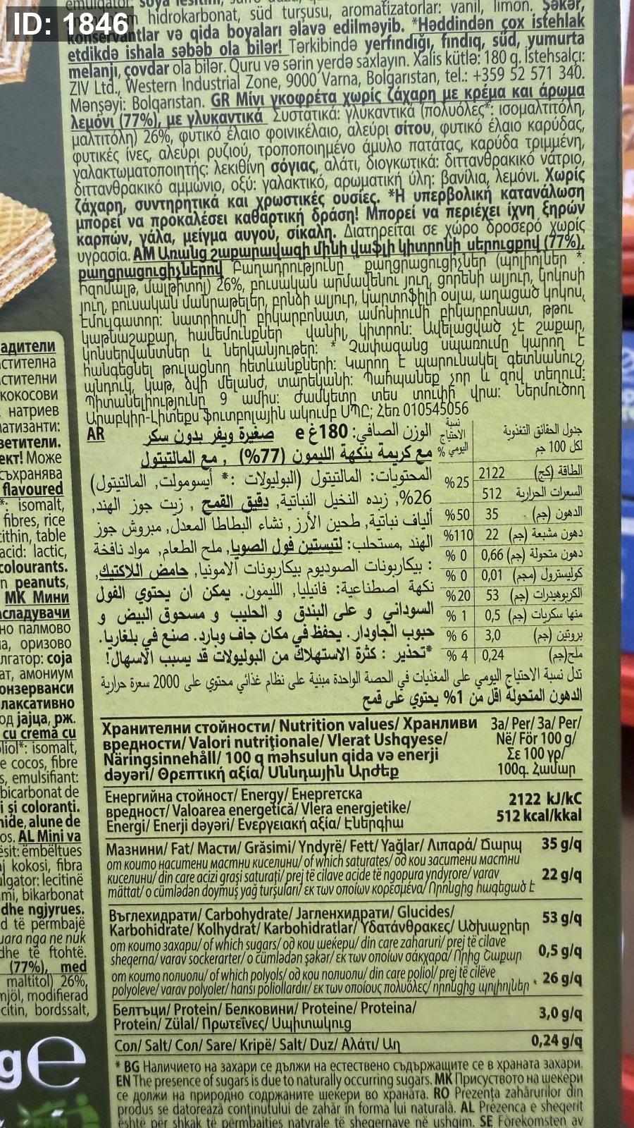 ويفر قطع صغيرة محشي بطعم الليمون خالي من السكر وزن العلبة 180 غرام