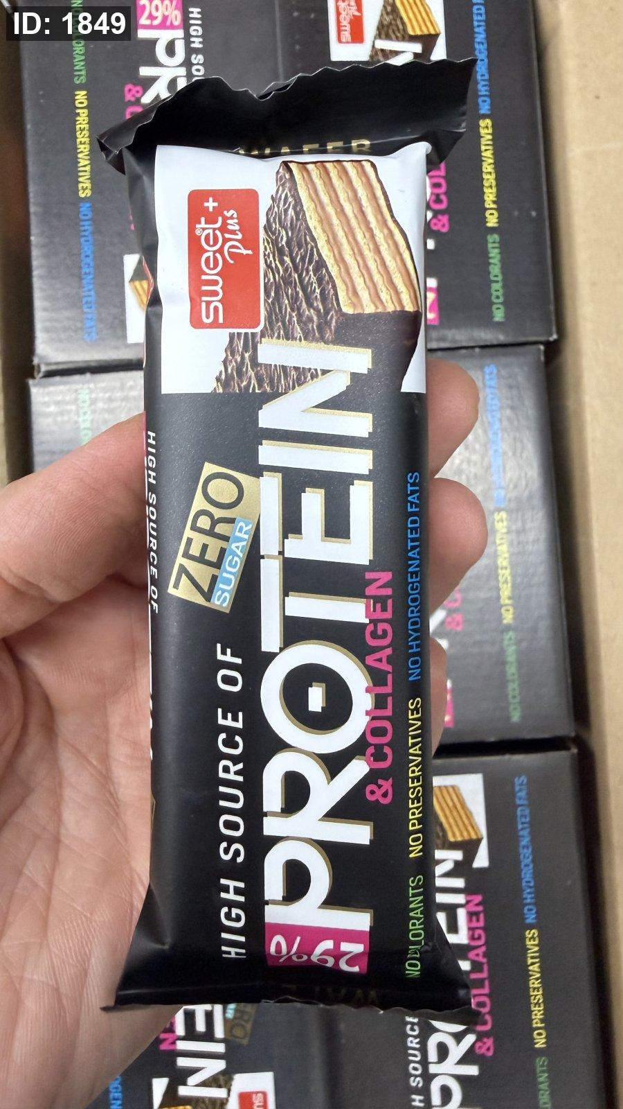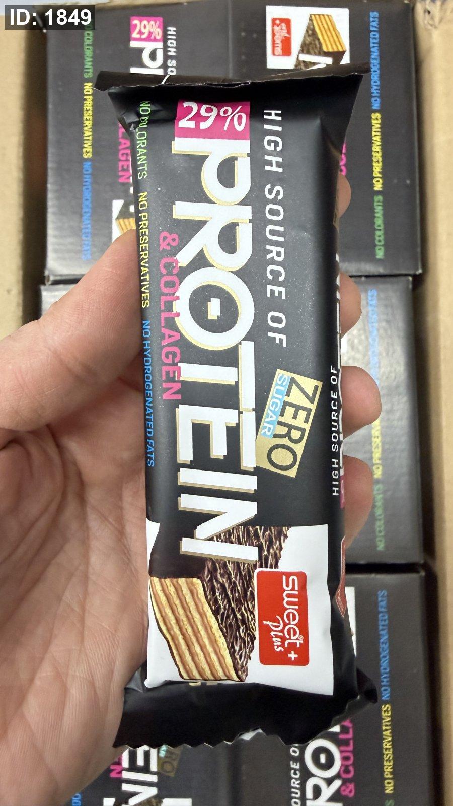 ويفر بروتين sweet plus بالشوكولاتة 29 ٪؜ بروتين مدعم بالكولاجين وخالي من السكر وزنه 40 غرام