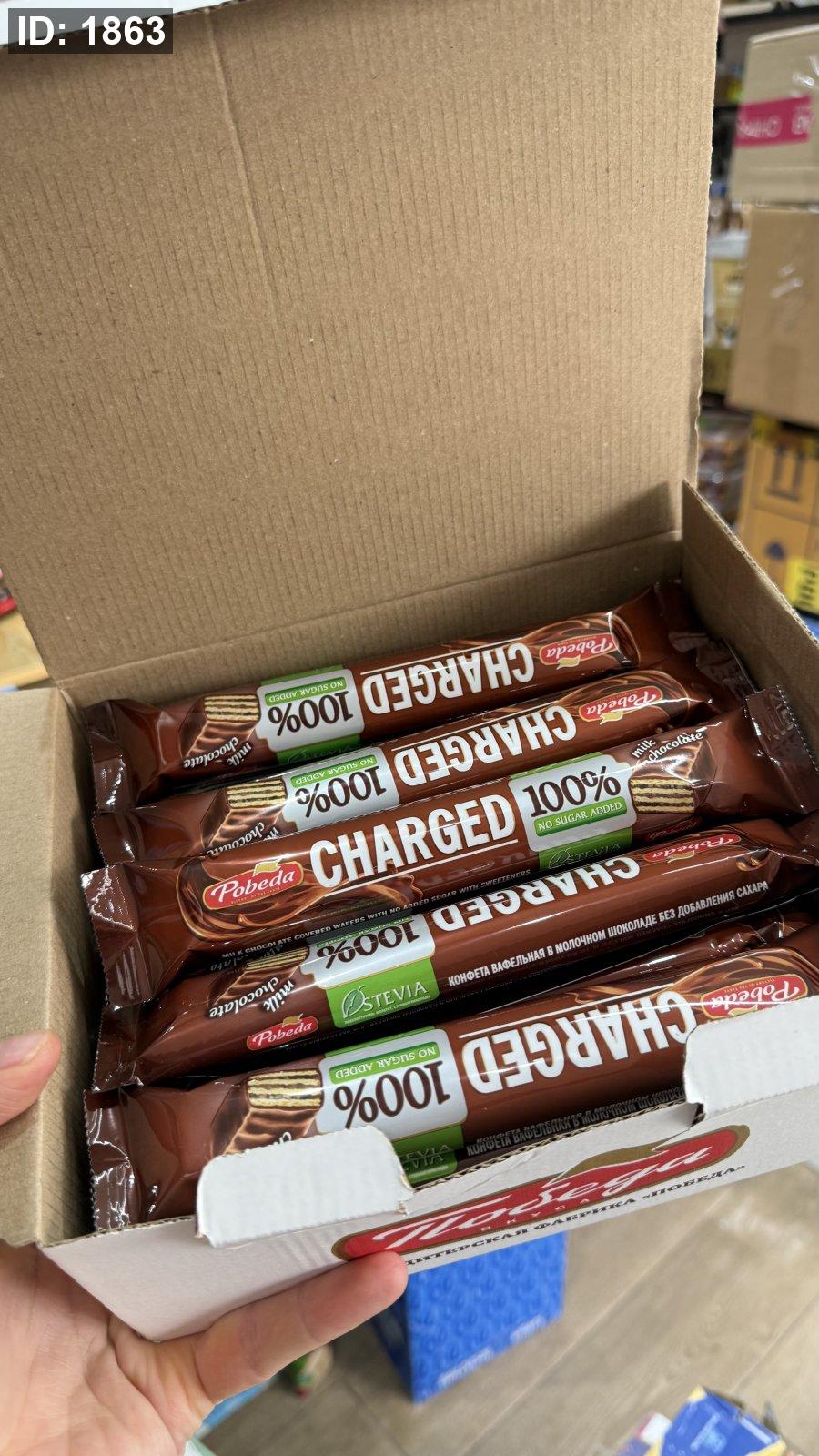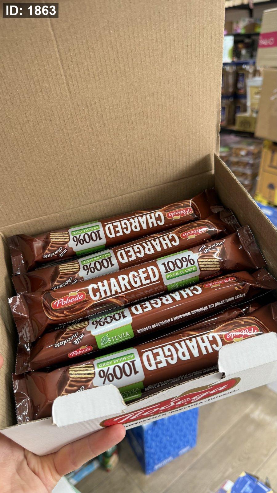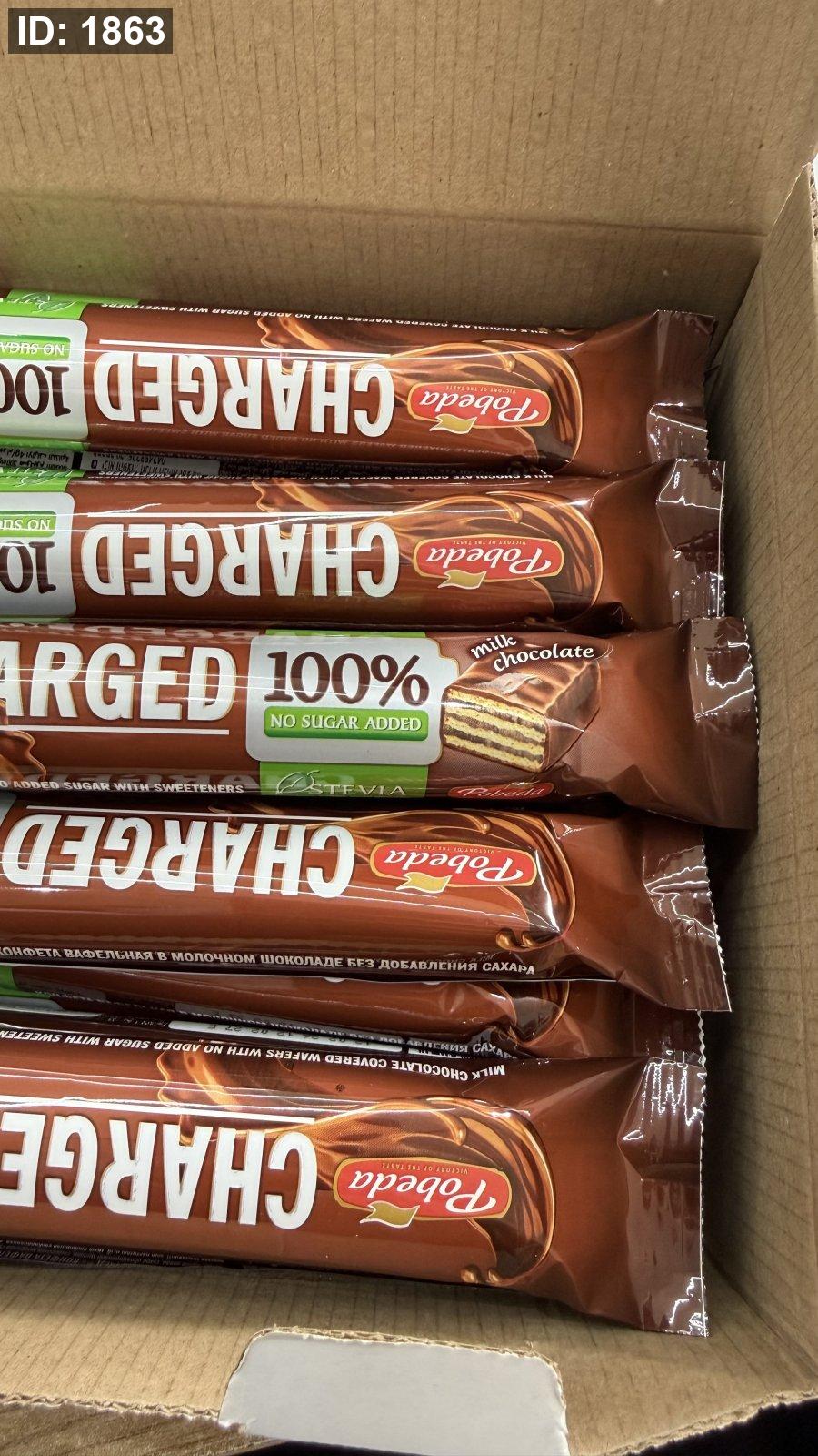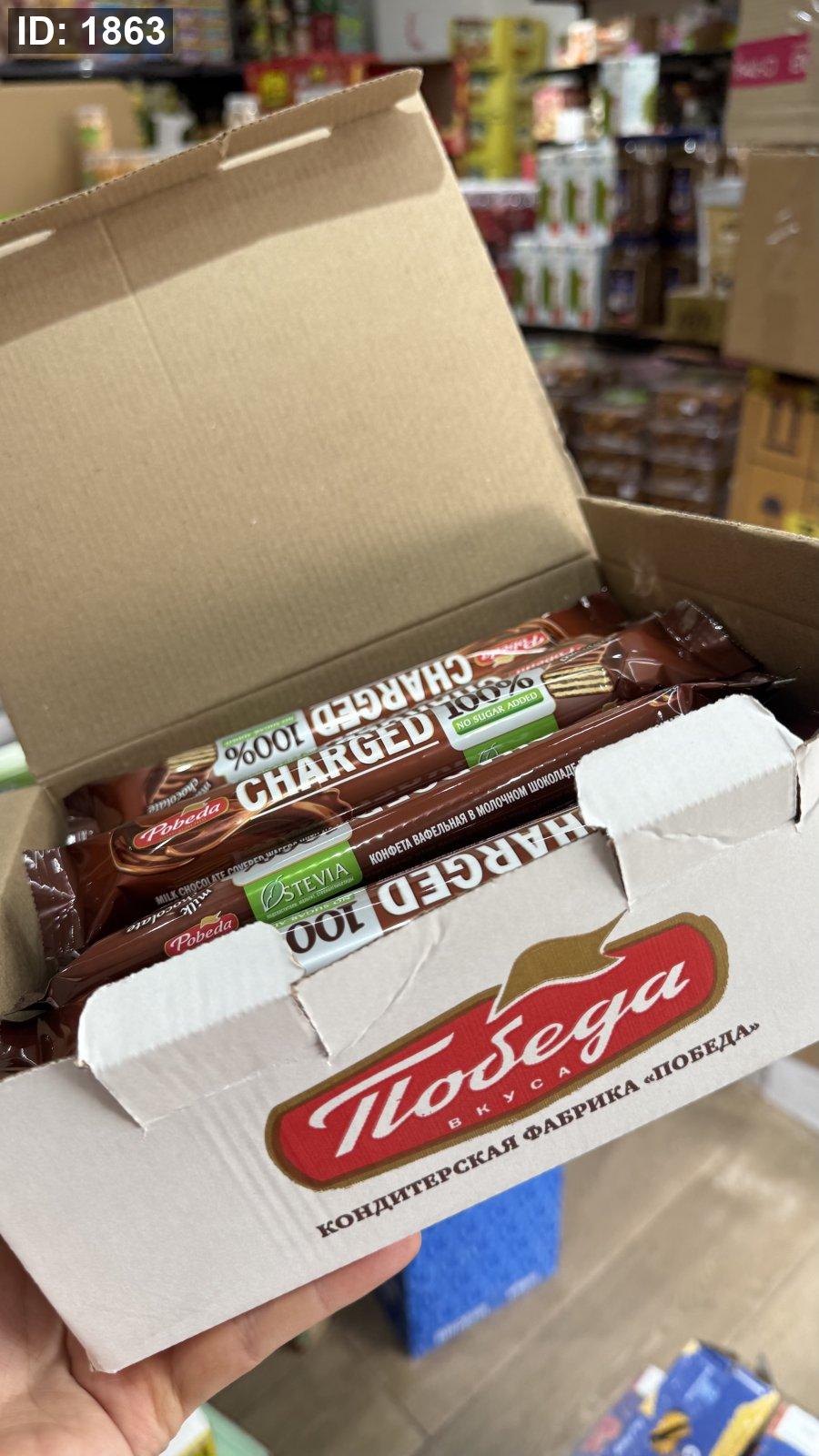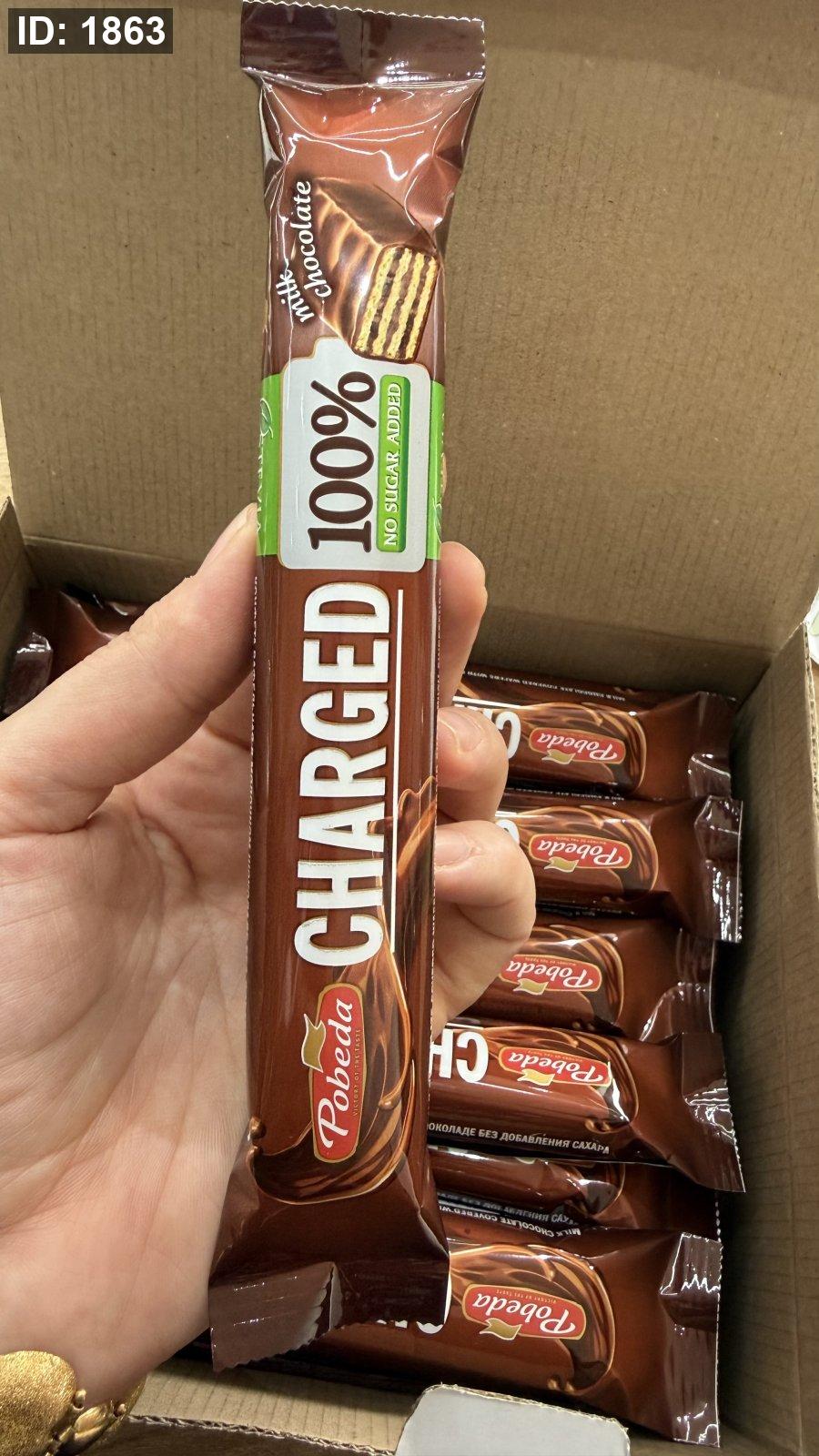 استمتع بمذاق الشوكولاتة بالحليب بدون سكر مضاف مع ويفر Pobeda Charged بالشوكولاتة بالحليب.